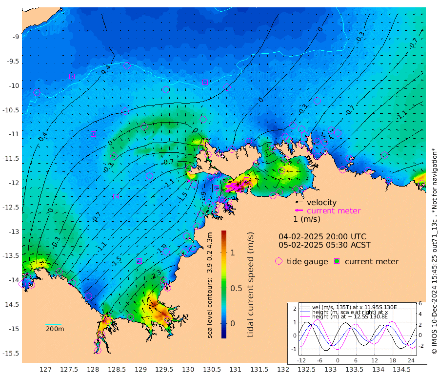 168cm/s -101T +4cm/s rms + 6cm/s 51T. Darwin_C1 52m 121cm/s -91T +4cm/s rms + 7cm/s -161T. Darwin_CW1 22m 86cm/s -106T +4cm/s rms + 8cm/s 61T. Darwin_CW2 34m 89cm/s -137T +3cm/s rms + 9cm/s 98T. Darwin_CW3 22m 147cm/s -91T +5cm/s rms + 7cm/s 88T. Darwin_C3 56m 98cm/s -116T +2cm/s rms + 9cm/s -126T. Darwin_CTbW 22m 9cm/s 175T +9cm/s rms + 2cm/s -110T. NWSLYN 196m 10cm/s -139T +1cm/s rms + 1cm/s -47T. DARBGF 30m 9cm/s 84T +7cm/s rms + 2cm/s -137T. ITFTIS 464m 10cm/s 94T +9cm/s rms + 1cm/s 74T. ITFMHB 146m 15cm/s 78T +4cm/s rms + 1cm/s -134T. ITFJBG 61m 21cm/s 104T +6cm/s rms + 4cm/s 121T. ITFFTB 108m 10cm/s -171T +4cm/s rms + 3cm/s 80T. NRSDAR 19m 13cm Carronade Island 13cm Guy Point 17cm Napier Broome Bay -89cm Lesueur Island -184cm Reveley Island -93cm Rocky Island -273cm Cape Domett -247cm Lacrosse Island -300cm Adolphus Island -240cm Pender Point -236cm Wyndham -23cm The Boxers -34cm Unnamed Shoal 42cm Loxton Shoal -291cm Pelican Island -5cm Calder Shoal 24cm Evans Shoal -344cm Quoin Island -263cm Port Keats -256cm Jones Point -301cm Catfish Island -179cm Cape Scott Offshore -180cm Cape Ford -195cm Anson Bay 8cm Goodrich Bank -182cm Peron Island North -172cm Point Jenny -168cm Native Point -185cm Fish Reef -197cm Tapa Bay -75cm Point Fawcett (Offshore) -216cm Burge Point -173cm Munkunuwa -147cm Beagle A -218cm Parsons Bank -211cm Fenton Patches 15cm Lynedoch Bank -222cm Hancox Shoal Area -225cm Nightcliff -241cm Darwin -210cm Charles Point Patches -201cm Glyde Point -195cm Chambers Bay -196cm Point Stuart -187cm Cape Hotham -182cm Christine Reef -212cm West Alligator Head -209cm East Field Island -169cm Two Hills Bay -100cm Newby Shoal -156cm Camp Point -189cm Medina Inlet South -58cm South Barlow Point -28cm St. Asaph Bay 6cm Cape Van Dieman -2cm Snake Bay -7cm Cache Point 59cm Echo Shoal -31cm Point Jahleel (Off) -88cm Cape Don -40cm Port Essington -44cm Smith Point - West -43cm NW Peacock Island -18cm North Of Jones Shoal -9cm Peacock Island -68cm Point David -49cm D'urville Point -33cm Money Shoal -73cm Copeland Island -99cm Cape Cockburn -65cm One Tree Point -97cm Hogmany Shoal -70cm New Year Island - West -78cm Grant Island -98cm Aurari Bay -127cm Cuthbert Point -100cm North Goulburn Island -127cm Paxie Shoal -160cm Entrance Island -185cm Yabooma Island