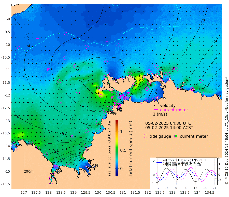 5cm/s -114T +4cm/s rms + 6cm/s 51T. Darwin_C1 52m 13cm/s 84T +4cm/s rms + 7cm/s -161T. Darwin_CW1 22m 20cm/s -111T +4cm/s rms + 8cm/s 61T. Darwin_CW2 34m 18cm/s 23T +3cm/s rms + 9cm/s 98T. Darwin_CW3 22m 4cm/s -134T +5cm/s rms + 7cm/s 88T. Darwin_C3 56m 3cm/s -143T +2cm/s rms + 9cm/s -126T. Darwin_CTbW 22m 6cm/s -16T +9cm/s rms + 2cm/s -110T. NWSLYN 196m 47cm/s -86T +1cm/s rms + 1cm/s -47T. DARBGF 30m 8cm/s -119T +7cm/s rms + 2cm/s -137T. ITFTIS 464m 8cm/s -63T +9cm/s rms + 1cm/s 74T. ITFMHB 146m 32cm/s -34T +4cm/s rms + 1cm/s -134T. ITFJBG 61m 32cm/s -55T +6cm/s rms + 4cm/s 121T. ITFFTB 108m 52cm/s -56T +4cm/s rms + 3cm/s 80T. NRSDAR 19m 81cm Carronade Island 90cm Guy Point 79cm Napier Broome Bay 68cm Lesueur Island 73cm Reveley Island 16cm Rocky Island 121cm Cape Domett 114cm Lacrosse Island 171cm Adolphus Island 218cm Pender Point 259cm Wyndham -34cm The Boxers -60cm Unnamed Shoal -42cm Loxton Shoal 111cm Pelican Island -48cm Calder Shoal -44cm Evans Shoal 220cm Quoin Island 47cm Port Keats 44cm Jones Point 274cm Catfish Island -2cm Cape Scott Offshore -69cm Cape Ford -14cm Anson Bay -57cm Goodrich Bank -23cm Peron Island North -23cm Point Jenny -29cm Native Point -29cm Fish Reef -22cm Tapa Bay -56cm Point Fawcett (Offshore) -16cm Burge Point -50cm Munkunuwa -34cm Beagle A -20cm Parsons Bank -12cm Fenton Patches -48cm Lynedoch Bank 6cm Hancox Shoal Area 1cm Nightcliff -9cm Darwin -23cm Charles Point Patches 48cm Glyde Point 127cm Chambers Bay 139cm Point Stuart 70cm Cape Hotham 121cm Christine Reef 160cm West Alligator Head 193cm East Field Island 88cm Two Hills Bay -30cm Newby Shoal 83cm Camp Point -36cm Medina Inlet South -73cm South Barlow Point -64cm St. Asaph Bay -62cm Cape Van Dieman -68cm Snake Bay -47cm Cache Point -23cm Echo Shoal -34cm Point Jahleel (Off) 0cm Cape Don -35cm Port Essington -33cm Smith Point - West -30cm NW Peacock Island -37cm North Of Jones Shoal -12cm Peacock Island -15cm Point David -32cm D'urville Point -24cm Money Shoal -9cm Copeland Island -10cm Cape Cockburn -16cm One Tree Point 4cm Hogmany Shoal -11cm New Year Island - West -9cm Grant Island 11cm Aurari Bay 36cm Cuthbert Point 8cm North Goulburn Island 50cm Paxie Shoal 68cm Entrance Island 108cm Yabooma Island