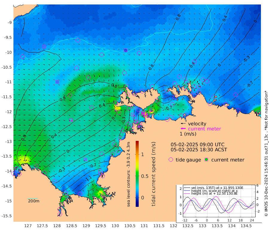 66cm/s -101T +4cm/s rms + 6cm/s 51T. Darwin_C1 52m 41cm/s -91T +4cm/s rms + 7cm/s -161T. Darwin_CW1 22m 34cm/s -108T +4cm/s rms + 8cm/s 61T. Darwin_CW2 34m 43cm/s -134T +3cm/s rms + 9cm/s 98T. Darwin_CW3 22m 67cm/s -91T +5cm/s rms + 7cm/s 88T. Darwin_C3 56m 37cm/s -116T +2cm/s rms + 9cm/s -126T. Darwin_CTbW 22m 5cm/s 134T +9cm/s rms + 2cm/s -110T. NWSLYN 196m 26cm/s 101T +1cm/s rms + 1cm/s -47T. DARBGF 30m 11cm/s 62T +7cm/s rms + 2cm/s -137T. ITFTIS 464m 13cm/s 100T +9cm/s rms + 1cm/s 74T. ITFMHB 146m 20cm/s 114T +4cm/s rms + 1cm/s -134T. ITFJBG 61m 29cm/s 108T +6cm/s rms + 4cm/s 121T. ITFFTB 108m 32cm/s 134T +4cm/s rms + 3cm/s 80T. NRSDAR 19m 61cm Carronade Island 59cm Guy Point 58cm Napier Broome Bay 26cm Lesueur Island -65cm Reveley Island -30cm Rocky Island -123cm Cape Domett -99cm Lacrosse Island -142cm Adolphus Island -158cm Pender Point -159cm Wyndham 74cm The Boxers 62cm Unnamed Shoal 104cm Loxton Shoal -132cm Pelican Island 90cm Calder Shoal 89cm Evans Shoal -203cm Quoin Island -89cm Port Keats -96cm Jones Point -201cm Catfish Island -31cm Cape Scott Offshore 34cm Cape Ford -39cm Anson Bay 85cm Goodrich Bank -20cm Peron Island North -15cm Point Jenny -12cm Native Point -19cm Fish Reef -31cm Tapa Bay 51cm Point Fawcett (Offshore) -41cm Burge Point -29cm Munkunuwa 17cm Beagle A -57cm Parsons Bank -29cm Fenton Patches 81cm Lynedoch Bank -61cm Hancox Shoal Area -53cm Nightcliff -61cm Darwin -30cm Charles Point Patches -69cm Glyde Point -104cm Chambers Bay -118cm Point Stuart -76cm Cape Hotham -93cm Christine Reef -136cm West Alligator Head -142cm East Field Island -80cm Two Hills Bay 54cm Newby Shoal -66cm Camp Point -26cm Medina Inlet South 59cm South Barlow Point 75cm St. Asaph Bay 85cm Cape Van Dieman 82cm Snake Bay 79cm Cache Point 112cm Echo Shoal 55cm Point Jahleel (Off) 3cm Cape Don 44cm Port Essington 45cm Smith Point - West 43cm NW Peacock Island 61cm North Of Jones Shoal 19cm Peacock Island 7cm Point David 39cm D'urville Point 42cm Money Shoal 2cm Copeland Island 5cm Cape Cockburn 14cm One Tree Point -4cm Hogmany Shoal 15cm New Year Island - West 5cm Grant Island -19cm Aurari Bay -48cm Cuthbert Point -19cm North Goulburn Island -66cm Paxie Shoal -89cm Entrance Island -128cm Yabooma Island