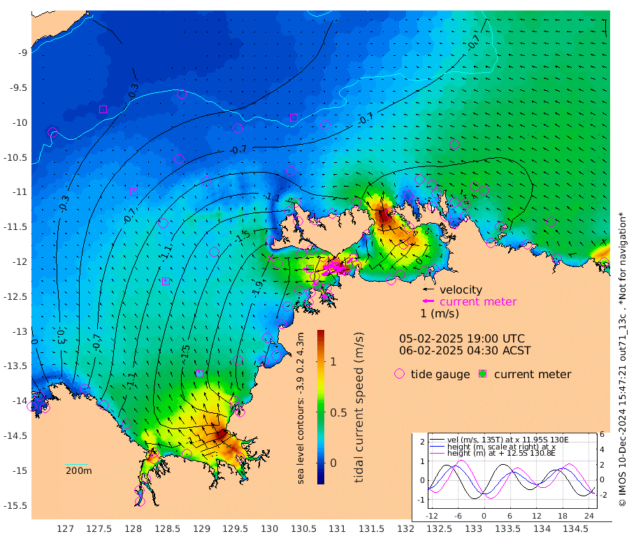 182cm/s -102T +4cm/s rms + 6cm/s 51T. Darwin_C1 52m 117cm/s -90T +4cm/s rms + 7cm/s -161T. Darwin_CW1 22m 107cm/s -106T +4cm/s rms + 8cm/s 61T. Darwin_CW2 34m 72cm/s -130T +3cm/s rms + 9cm/s 98T. Darwin_CW3 22m 149cm/s -91T +5cm/s rms + 7cm/s 88T. Darwin_C3 56m 108cm/s -115T +2cm/s rms + 9cm/s -126T. Darwin_CTbW 22m 5cm/s -83T +9cm/s rms + 2cm/s -110T. NWSLYN 196m 60cm/s -93T +1cm/s rms + 1cm/s -47T. DARBGF 30m 1cm/s 128T +7cm/s rms + 2cm/s -137T. ITFTIS 464m 13cm/s 2T +9cm/s rms + 1cm/s 74T. ITFMHB 146m 29cm/s -13T +4cm/s rms + 1cm/s -134T. ITFJBG 61m 21cm/s -32T +6cm/s rms + 4cm/s 121T. ITFFTB 108m 50cm/s -66T +4cm/s rms + 3cm/s 80T. NRSDAR 19m 32cm Carronade Island 31cm Guy Point 36cm Napier Broome Bay -59cm Lesueur Island -124cm Reveley Island -64cm Rocky Island -161cm Cape Domett -148cm Lacrosse Island -140cm Adolphus Island -39cm Pender Point -6cm Wyndham -83cm The Boxers -90cm Unnamed Shoal -36cm Loxton Shoal -188cm Pelican Island -83cm Calder Shoal -56cm Evans Shoal -136cm Quoin Island -214cm Port Keats -202cm Jones Point -81cm Catfish Island -196cm Cape Scott Offshore -264cm Cape Ford -217cm Anson Bay -71cm Goodrich Bank -215cm Peron Island North -209cm Point Jenny -207cm Native Point -220cm Fish Reef -224cm Tapa Bay -158cm Point Fawcett (Offshore) -230cm Burge Point -218cm Munkunuwa -192cm Beagle A -230cm Parsons Bank -220cm Fenton Patches -52cm Lynedoch Bank -217cm Hancox Shoal Area -227cm Nightcliff -241cm Darwin -236cm Charles Point Patches -153cm Glyde Point -83cm Chambers Bay -66cm Point Stuart -122cm Cape Hotham -79cm Christine Reef -62cm West Alligator Head -27cm East Field Island -91cm Two Hills Bay -151cm Newby Shoal -80cm Camp Point -225cm Medina Inlet South -143cm South Barlow Point -117cm St. Asaph Bay -77cm Cape Van Dieman -84cm Snake Bay -81cm Cache Point -8cm Echo Shoal -85cm Point Jahleel (Off) -105cm Cape Don -93cm Port Essington -98cm Smith Point - West -90cm NW Peacock Island -82cm North Of Jones Shoal -30cm Peacock Island -88cm Point David -97cm D'urville Point -75cm Money Shoal -87cm Copeland Island -120cm Cape Cockburn -91cm One Tree Point -107cm Hogmany Shoal -87cm New Year Island - West -93cm Grant Island -87cm Aurari Bay -94cm Cuthbert Point -98cm North Goulburn Island -80cm Paxie Shoal -87cm Entrance Island -76cm Yabooma Island