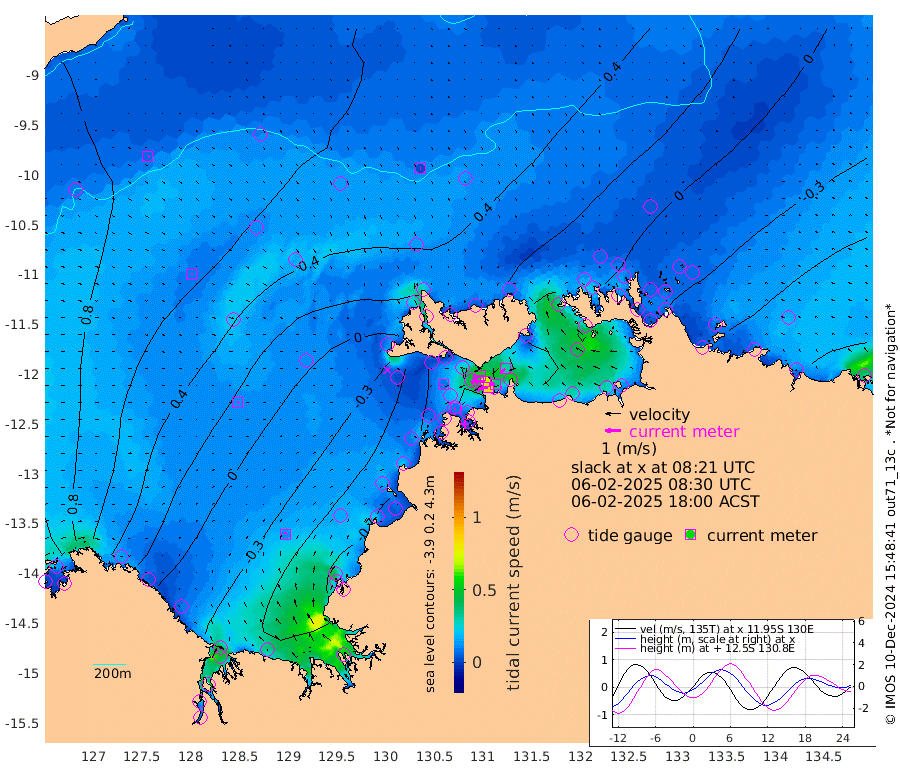 84cm/s -101T +4cm/s rms + 6cm/s 51T. Darwin_C1 52m 35cm/s -88T +4cm/s rms + 7cm/s -161T. Darwin_CW1 22m 50cm/s -107T +4cm/s rms + 8cm/s 61T. Darwin_CW2 34m 31cm/s -127T +3cm/s rms + 9cm/s 98T. Darwin_CW3 22m 69cm/s -92T +5cm/s rms + 7cm/s 88T. Darwin_C3 56m 53cm/s -115T +2cm/s rms + 9cm/s -126T. Darwin_CTbW 22m 3cm/s 105T +9cm/s rms + 2cm/s -110T. NWSLYN 196m 10cm/s -102T +1cm/s rms + 1cm/s -47T. DARBGF 30m 8cm/s 48T +7cm/s rms + 2cm/s -137T. ITFTIS 464m 9cm/s 61T +9cm/s rms + 1cm/s 74T. ITFMHB 146m 12cm/s 21T +4cm/s rms + 1cm/s -134T. ITFJBG 61m 12cm/s 59T +6cm/s rms + 4cm/s 121T. ITFFTB 108m 9cm/s -95T +4cm/s rms + 3cm/s 80T. NRSDAR 19m 110cm Carronade Island 114cm Guy Point 109cm Napier Broome Bay 65cm Lesueur Island -20cm Reveley Island -19cm Rocky Island -46cm Cape Domett -30cm Lacrosse Island -38cm Adolphus Island -13cm Pender Point 7cm Wyndham 52cm The Boxers 24cm Unnamed Shoal 80cm Loxton Shoal -68cm Pelican Island 59cm Calder Shoal 59cm Evans Shoal -66cm Quoin Island -59cm Port Keats -70cm Jones Point -55cm Catfish Island -37cm Cape Scott Offshore -9cm Cape Ford -51cm Anson Bay 48cm Goodrich Bank -43cm Peron Island North -35cm Point Jenny -34cm Native Point -44cm Fish Reef -48cm Tapa Bay 10cm Point Fawcett (Offshore) -53cm Burge Point -61cm Munkunuwa -10cm Beagle A -73cm Parsons Bank -42cm Fenton Patches 50cm Lynedoch Bank -63cm Hancox Shoal Area -57cm Nightcliff -69cm Darwin -46cm Charles Point Patches -45cm Glyde Point -34cm Chambers Bay -42cm Point Stuart -41cm Cape Hotham -26cm Christine Reef -47cm West Alligator Head -32cm East Field Island -35cm Two Hills Bay 31cm Newby Shoal -18cm Camp Point -51cm Medina Inlet South 11cm South Barlow Point 32cm St. Asaph Bay 43cm Cape Van Dieman 38cm Snake Bay 44cm Cache Point 98cm Echo Shoal 28cm Point Jahleel (Off) -5cm Cape Don 15cm Port Essington 14cm Smith Point - West 15cm NW Peacock Island 31cm North Of Jones Shoal 8cm Peacock Island -11cm Point David 8cm D'urville Point 21cm Money Shoal -14cm Copeland Island -15cm Cape Cockburn -5cm One Tree Point -15cm Hogmany Shoal -1cm New Year Island - West -10cm Grant Island -26cm Aurari Bay -40cm Cuthbert Point -25cm North Goulburn Island -42cm Paxie Shoal -60cm Entrance Island -75cm Yabooma Island