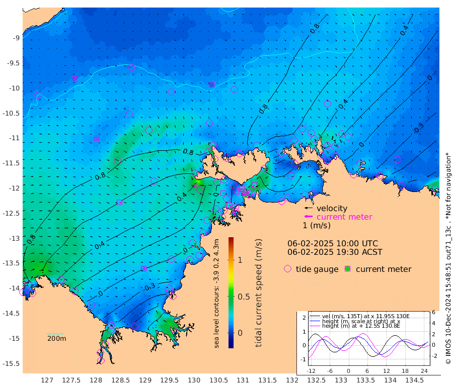 44cm/s -102T +4cm/s rms + 6cm/s 51T. Darwin_C1 52m 23cm/s -88T +4cm/s rms + 7cm/s -161T. Darwin_CW1 22m 17cm/s -111T +4cm/s rms + 8cm/s 61T. Darwin_CW2 34m 29cm/s -132T +3cm/s rms + 9cm/s 98T. Darwin_CW3 22m 32cm/s -91T +5cm/s rms + 7cm/s 88T. Darwin_C3 56m 26cm/s -115T +2cm/s rms + 9cm/s -126T. Darwin_CTbW 22m 6cm/s 123T +9cm/s rms + 2cm/s -110T. NWSLYN 196m 23cm/s 97T +1cm/s rms + 1cm/s -47T. DARBGF 30m 10cm/s 48T +7cm/s rms + 2cm/s -137T. ITFTIS 464m 11cm/s 79T +9cm/s rms + 1cm/s 74T. ITFMHB 146m 13cm/s 111T +4cm/s rms + 1cm/s -134T. ITFJBG 61m 21cm/s 100T +6cm/s rms + 4cm/s 121T. ITFFTB 108m 26cm/s 132T +4cm/s rms + 3cm/s 80T. NRSDAR 19m 58cm Carronade Island 58cm Guy Point 58cm Napier Broome Bay 45cm Lesueur Island -23cm Reveley Island -10cm Rocky Island -58cm Cape Domett -44cm Lacrosse Island -69cm Adolphus Island -90cm Pender Point -94cm Wyndham 81cm The Boxers 69cm Unnamed Shoal 102cm Loxton Shoal -67cm Pelican Island 93cm Calder Shoal 88cm Evans Shoal -115cm Quoin Island -29cm Port Keats -41cm Jones Point -142cm Catfish Island 6cm Cape Scott Offshore 68cm Cape Ford 3cm Anson Bay 86cm Goodrich Bank 16cm Peron Island North 17cm Point Jenny 20cm Native Point 15cm Fish Reef 9cm Tapa Bay 64cm Point Fawcett (Offshore) 3cm Burge Point 7cm Munkunuwa 41cm Beagle A -11cm Parsons Bank 9cm Fenton Patches 82cm Lynedoch Bank -15cm Hancox Shoal Area -7cm Nightcliff -8cm Darwin 18cm Charles Point Patches -28cm Glyde Point -64cm Chambers Bay -80cm Point Stuart -39cm Cape Hotham -56cm Christine Reef -95cm West Alligator Head -102cm East Field Island -46cm Two Hills Bay 72cm Newby Shoal -31cm Camp Point 14cm Medina Inlet South 72cm South Barlow Point 81cm St. Asaph Bay 85cm Cape Van Dieman 86cm Snake Bay 81cm Cache Point 104cm Echo Shoal 62cm Point Jahleel (Off) 22cm Cape Don 54cm Port Essington 54cm Smith Point - West 52cm NW Peacock Island 68cm North Of Jones Shoal 22cm Peacock Island 24cm Point David 49cm D'urville Point 53cm Money Shoal 18cm Copeland Island 27cm Cape Cockburn 30cm One Tree Point 18cm Hogmany Shoal 31cm New Year Island - West 24cm Grant Island 0cm Aurari Bay -21cm Cuthbert Point 4cm North Goulburn Island -33cm Paxie Shoal -53cm Entrance Island -86cm Yabooma Island