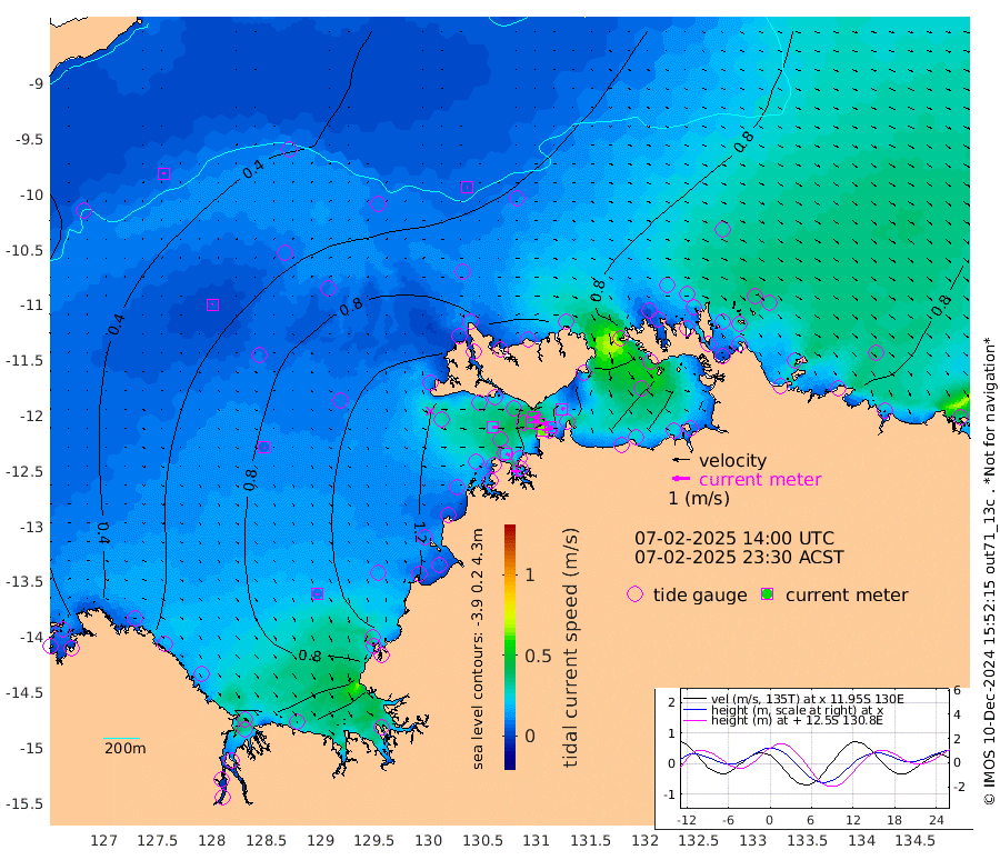 64cm/s 78T +4cm/s rms + 6cm/s 51T. Darwin_C1 52m 15cm/s 87T +4cm/s rms + 7cm/s -161T. Darwin_CW1 22m 38cm/s 76T +4cm/s rms + 8cm/s 61T. Darwin_CW2 34m 21cm/s 50T +3cm/s rms + 9cm/s 98T. Darwin_CW3 22m 54cm/s 89T +5cm/s rms + 7cm/s 88T. Darwin_C3 56m 43cm/s 63T +2cm/s rms + 9cm/s -126T. Darwin_CTbW 22m 3cm/s 110T +9cm/s rms + 2cm/s -110T. NWSLYN 196m 27cm/s 88T +1cm/s rms + 1cm/s -47T. DARBGF 30m 5cm/s -2T +7cm/s rms + 2cm/s -137T. ITFTIS 464m 4cm/s 20T +9cm/s rms + 1cm/s 74T. ITFMHB 146m 9cm/s 162T +4cm/s rms + 1cm/s -134T. ITFJBG 61m 6cm/s 122T +6cm/s rms + 4cm/s 121T. ITFFTB 108m 23cm/s 115T +4cm/s rms + 3cm/s 80T. NRSDAR 19m -13cm Carronade Island -19cm Guy Point -9cm Napier Broome Bay 31cm Lesueur Island 42cm Reveley Island 33cm Rocky Island 51cm Cape Domett 45cm Lacrosse Island 43cm Adolphus Island -5cm Pender Point -16cm Wyndham 58cm The Boxers 78cm Unnamed Shoal 35cm Loxton Shoal 62cm Pelican Island 53cm Calder Shoal 42cm Evans Shoal 36cm Quoin Island 78cm Port Keats 77cm Jones Point 38cm Catfish Island 80cm Cape Scott Offshore 97cm Cape Ford 92cm Anson Bay 55cm Goodrich Bank 98cm Peron Island North 85cm Point Jenny 86cm Native Point 96cm Fish Reef 92cm Tapa Bay 79cm Point Fawcett (Offshore) 94cm Burge Point 87cm Munkunuwa 83cm Beagle A 103cm Parsons Bank 90cm Fenton Patches 50cm Lynedoch Bank 91cm Hancox Shoal Area 89cm Nightcliff 108cm Darwin 108cm Charles Point Patches 70cm Glyde Point 32cm Chambers Bay 29cm Point Stuart 57cm Cape Hotham 27cm Christine Reef 23cm West Alligator Head 6cm East Field Island 49cm Two Hills Bay 82cm Newby Shoal 39cm Camp Point 99cm Medina Inlet South 82cm South Barlow Point 65cm St. Asaph Bay 59cm Cape Van Dieman 69cm Snake Bay 60cm Cache Point 18cm Echo Shoal 60cm Point Jahleel (Off) 69cm Cape Don 73cm Port Essington 73cm Smith Point - West 74cm NW Peacock Island 66cm North Of Jones Shoal 25cm Peacock Island 81cm Point David 79cm D'urville Point 70cm Money Shoal 79cm Copeland Island 107cm Cape Cockburn 82cm One Tree Point 96cm Hogmany Shoal 82cm New Year Island - West 85cm Grant Island 82cm Aurari Bay 87cm Cuthbert Point 87cm North Goulburn Island 74cm Paxie Shoal 80cm Entrance Island 71cm Yabooma Island