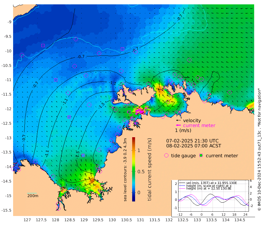 157cm/s -102T +4cm/s rms + 6cm/s 51T. Darwin_C1 52m 92cm/s -89T +4cm/s rms + 7cm/s -161T. Darwin_CW1 22m 77cm/s -105T +4cm/s rms + 8cm/s 61T. Darwin_CW2 34m 62cm/s -131T +3cm/s rms + 9cm/s 98T. Darwin_CW3 22m 112cm/s -91T +5cm/s rms + 7cm/s 88T. Darwin_C3 56m 99cm/s -115T +2cm/s rms + 9cm/s -126T. Darwin_CTbW 22m 6cm/s -71T +9cm/s rms + 2cm/s -110T. NWSLYN 196m 43cm/s -95T +1cm/s rms + 1cm/s -47T. DARBGF 30m 3cm/s -176T +7cm/s rms + 2cm/s -137T. ITFTIS 464m 9cm/s -10T +9cm/s rms + 1cm/s 74T. ITFMHB 146m 17cm/s -13T +4cm/s rms + 1cm/s -134T. ITFJBG 61m 15cm/s -42T +6cm/s rms + 4cm/s 121T. ITFFTB 108m 34cm/s -65T +4cm/s rms + 3cm/s 80T. NRSDAR 19m -47cm Carronade Island -47cm Guy Point -53cm Napier Broome Bay -101cm Lesueur Island -128cm Reveley Island -76cm Rocky Island -158cm Cape Domett -153cm Lacrosse Island -141cm Adolphus Island -86cm Pender Point -76cm Wyndham -98cm The Boxers -100cm Unnamed Shoal -55cm Loxton Shoal -168cm Pelican Island -92cm Calder Shoal -64cm Evans Shoal -148cm Quoin Island -180cm Port Keats -169cm Jones Point -171cm Catfish Island -172cm Cape Scott Offshore -197cm Cape Ford -184cm Anson Bay -71cm Goodrich Bank -182cm Peron Island North -178cm Point Jenny -175cm Native Point -185cm Fish Reef -184cm Tapa Bay -143cm Point Fawcett (Offshore) -189cm Burge Point -169cm Munkunuwa -165cm Beagle A -183cm Parsons Bank -181cm Fenton Patches -58cm Lynedoch Bank -176cm Hancox Shoal Area -187cm Nightcliff -194cm Darwin -192cm Charles Point Patches -142cm Glyde Point -103cm Chambers Bay -94cm Point Stuart -122cm Cape Hotham -100cm Christine Reef -96cm West Alligator Head -75cm East Field Island -107cm Two Hills Bay -152cm Newby Shoal -93cm Camp Point -183cm Medina Inlet South -121cm South Barlow Point -105cm St. Asaph Bay -75cm Cape Van Dieman -80cm Snake Bay -84cm Cache Point -39cm Echo Shoal -85cm Point Jahleel (Off) -106cm Cape Don -89cm Port Essington -93cm Smith Point - West -87cm NW Peacock Island -83cm North Of Jones Shoal -30cm Peacock Island -83cm Point David -91cm D'urville Point -76cm Money Shoal -81cm Copeland Island -117cm Cape Cockburn -89cm One Tree Point -106cm Hogmany Shoal -87cm New Year Island - West -90cm Grant Island -85cm Aurari Bay -95cm Cuthbert Point -94cm North Goulburn Island -88cm Paxie Shoal -88cm Entrance Island -79cm Yabooma Island