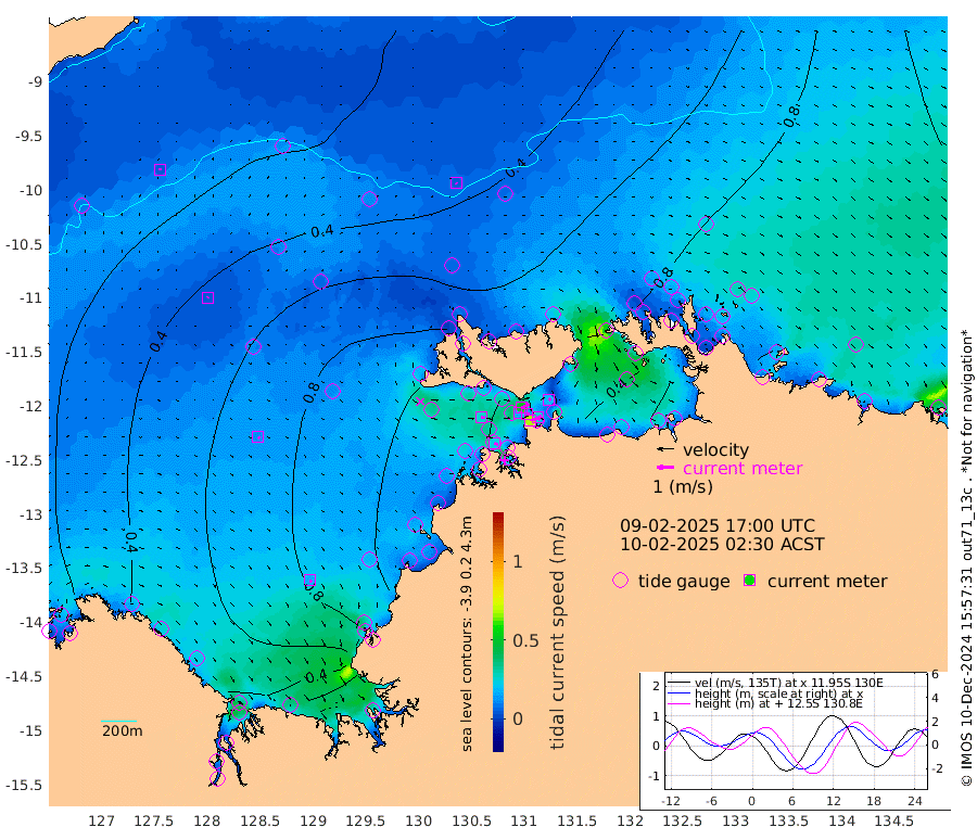 68cm/s 78T +4cm/s rms + 6cm/s 51T. Darwin_C1 52m 25cm/s 78T +4cm/s rms + 7cm/s -161T. Darwin_CW1 22m 15cm/s 81T +4cm/s rms + 8cm/s 61T. Darwin_CW2 34m 18cm/s 57T +3cm/s rms + 9cm/s 98T. Darwin_CW3 22m 12cm/s 90T +5cm/s rms + 7cm/s 88T. Darwin_C3 56m 48cm/s 62T +2cm/s rms + 9cm/s -126T. Darwin_CTbW 22m 5cm/s 140T +9cm/s rms + 2cm/s -110T. NWSLYN 196m 25cm/s 93T +1cm/s rms + 1cm/s -47T. DARBGF 30m 6cm/s 1T +7cm/s rms + 2cm/s -137T. ITFTIS 464m 5cm/s 31T +9cm/s rms + 1cm/s 74T. ITFMHB 146m 16cm/s 144T +4cm/s rms + 1cm/s -134T. ITFJBG 61m 13cm/s 120T +6cm/s rms + 4cm/s 121T. ITFFTB 108m 23cm/s 121T +4cm/s rms + 3cm/s 80T. NRSDAR 19m -17cm Carronade Island -27cm Guy Point -15cm Napier Broome Bay 8cm Lesueur Island 8cm Reveley Island -10cm Rocky Island 1cm Cape Domett 6cm Lacrosse Island -20cm Adolphus Island -58cm Pender Point -61cm Wyndham 36cm The Boxers 66cm Unnamed Shoal 5cm Loxton Shoal 18cm Pelican Island 26cm Calder Shoal 19cm Evans Shoal -26cm Quoin Island 37cm Port Keats 45cm Jones Point 46cm Catfish Island 55cm Cape Scott Offshore 58cm Cape Ford 69cm Anson Bay 34cm Goodrich Bank 70cm Peron Island North 67cm Point Jenny 66cm Native Point 74cm Fish Reef 67cm Tapa Bay 61cm Point Fawcett (Offshore) 66cm Burge Point 58cm Munkunuwa 63cm Beagle A 73cm Parsons Bank 65cm Fenton Patches 29cm Lynedoch Bank 64cm Hancox Shoal Area 63cm Nightcliff 72cm Darwin 74cm Charles Point Patches 51cm Glyde Point 22cm Chambers Bay 26cm Point Stuart 44cm Cape Hotham 19cm Christine Reef 19cm West Alligator Head 5cm East Field Island 40cm Two Hills Bay 57cm Newby Shoal 29cm Camp Point 68cm Medina Inlet South 56cm South Barlow Point 44cm St. Asaph Bay 40cm Cape Van Dieman 45cm Snake Bay 43cm Cache Point -4cm Echo Shoal 43cm Point Jahleel (Off) 57cm Cape Don 59cm Port Essington 59cm Smith Point - West 61cm NW Peacock Island 52cm North Of Jones Shoal 21cm Peacock Island 75cm Point David 66cm D'urville Point 61cm Money Shoal 75cm Copeland Island 100cm Cape Cockburn 74cm One Tree Point 91cm Hogmany Shoal 75cm New Year Island - West 76cm Grant Island 84cm Aurari Bay 90cm Cuthbert Point 83cm North Goulburn Island 83cm Paxie Shoal 84cm Entrance Island 87cm Yabooma Island