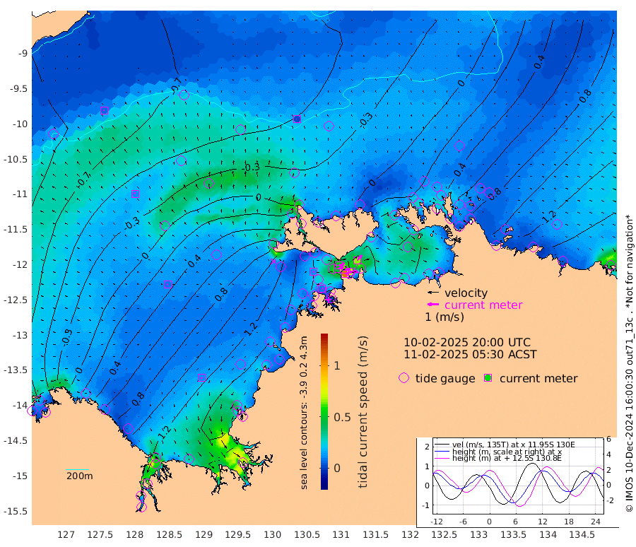 107cm/s 78T +4cm/s rms + 6cm/s 51T. Darwin_C1 52m 75cm/s 92T +4cm/s rms + 7cm/s -161T. Darwin_CW1 22m 46cm/s 71T +4cm/s rms + 8cm/s 61T. Darwin_CW2 34m 65cm/s 41T +3cm/s rms + 9cm/s 98T. Darwin_CW3 22m 63cm/s 90T +5cm/s rms + 7cm/s 88T. Darwin_C3 56m 50cm/s 65T +2cm/s rms + 9cm/s -126T. Darwin_CTbW 22m 3cm/s -10T +9cm/s rms + 2cm/s -110T. NWSLYN 196m 11cm/s 78T +1cm/s rms + 1cm/s -47T. DARBGF 30m 7cm/s -61T +7cm/s rms + 2cm/s -137T. ITFTIS 464m 11cm/s -31T +9cm/s rms + 1cm/s 74T. ITFMHB 146m 12cm/s -171T +4cm/s rms + 1cm/s -134T. ITFJBG 61m 8cm/s -77T +6cm/s rms + 4cm/s 121T. ITFFTB 108m 9cm/s 103T +4cm/s rms + 3cm/s 80T. NRSDAR 19m -89cm Carronade Island -98cm Guy Point -98cm Napier Broome Bay -14cm Lesueur Island 59cm Reveley Island -9cm Rocky Island 105cm Cape Domett 94cm Lacrosse Island 101cm Adolphus Island 49cm Pender Point 37cm Wyndham -27cm The Boxers 8cm Unnamed Shoal -84cm Loxton Shoal 134cm Pelican Island -45cm Calder Shoal -58cm Evans Shoal 127cm Quoin Island 136cm Port Keats 148cm Jones Point 133cm Catfish Island 89cm Cape Scott Offshore 116cm Cape Ford 112cm Anson Bay -34cm Goodrich Bank 97cm Peron Island North 95cm Point Jenny 93cm Native Point 112cm Fish Reef 112cm Tapa Bay 28cm Point Fawcett (Offshore) 129cm Burge Point 101cm Munkunuwa 78cm Beagle A 131cm Parsons Bank 123cm Fenton Patches -40cm Lynedoch Bank 127cm Hancox Shoal Area 126cm Nightcliff 144cm Darwin 124cm Charles Point Patches 112cm Glyde Point 92cm Chambers Bay 101cm Point Stuart 103cm Cape Hotham 79cm Christine Reef 105cm West Alligator Head 99cm East Field Island 84cm Two Hills Bay 24cm Newby Shoal 81cm Camp Point 109cm Medina Inlet South 17cm South Barlow Point -8cm St. Asaph Bay -28cm Cape Van Dieman -24cm Snake Bay -22cm Cache Point -97cm Echo Shoal -6cm Point Jahleel (Off) 41cm Cape Don 14cm Port Essington 11cm Smith Point - West 13cm NW Peacock Island -8cm North Of Jones Shoal 1cm Peacock Island 49cm Point David 21cm D'urville Point 17cm Money Shoal 54cm Copeland Island 69cm Cape Cockburn 42cm One Tree Point 65cm Hogmany Shoal 44cm New Year Island - West 49cm Grant Island 78cm Aurari Bay 96cm Cuthbert Point 73cm North Goulburn Island 102cm Paxie Shoal 120cm Entrance Island 152cm Yabooma Island