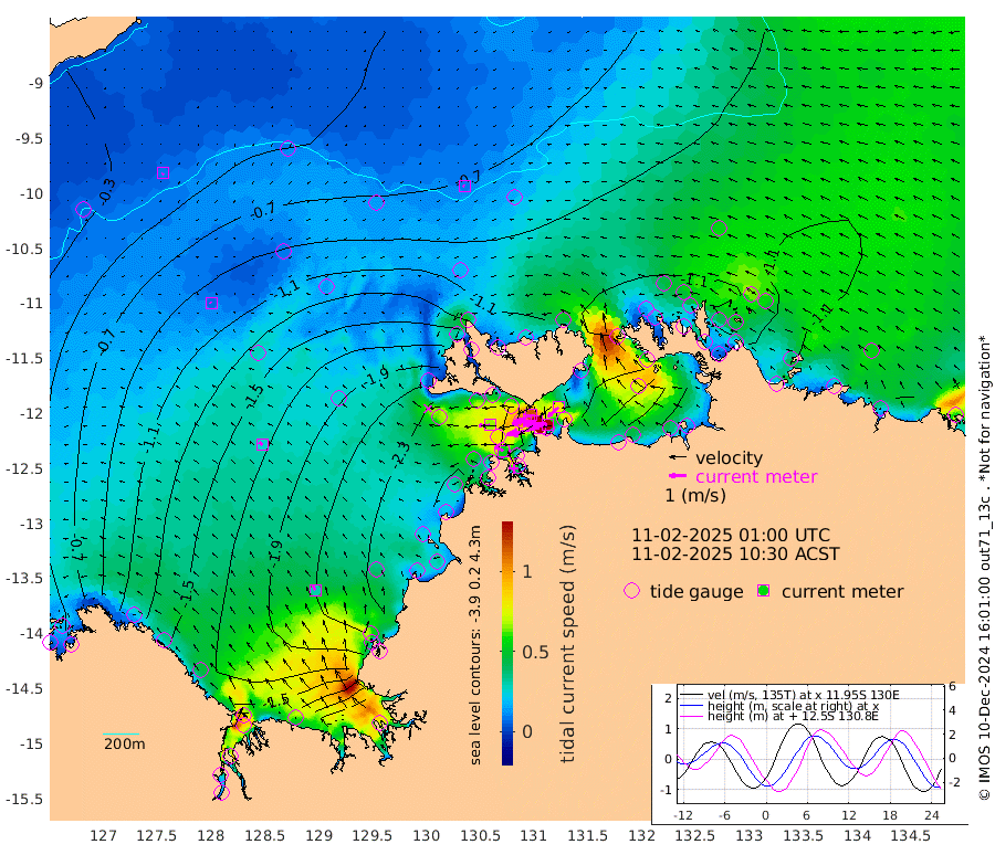 194cm/s -102T +4cm/s rms + 6cm/s 51T. Darwin_C1 52m 142cm/s -89T +4cm/s rms + 7cm/s -161T. Darwin_CW1 22m 98cm/s -107T +4cm/s rms + 8cm/s 61T. Darwin_CW2 34m 81cm/s -131T +3cm/s rms + 9cm/s 98T. Darwin_CW3 22m 133cm/s -90T +5cm/s rms + 7cm/s 88T. Darwin_C3 56m 114cm/s -115T +2cm/s rms + 9cm/s -126T. Darwin_CTbW 22m 9cm/s -61T +9cm/s rms + 2cm/s -110T. NWSLYN 196m 66cm/s -92T +1cm/s rms + 1cm/s -47T. DARBGF 30m 10cm/s -161T +7cm/s rms + 2cm/s -137T. ITFTIS 464m 7cm/s -48T +9cm/s rms + 1cm/s 74T. ITFMHB 146m 30cm/s -26T +4cm/s rms + 1cm/s -134T. ITFJBG 61m 25cm/s -53T +6cm/s rms + 4cm/s 121T. ITFFTB 108m 55cm/s -62T +4cm/s rms + 3cm/s 80T. NRSDAR 19m -20cm Carronade Island -16cm Guy Point -28cm Napier Broome Bay -100cm Lesueur Island -141cm Reveley Island -67cm Rocky Island -170cm Cape Domett -170cm Lacrosse Island -123cm Adolphus Island -54cm Pender Point -27cm Wyndham -116cm The Boxers -138cm Unnamed Shoal -50cm Loxton Shoal -187cm Pelican Island -105cm Calder Shoal -62cm Evans Shoal -127cm Quoin Island -225cm Port Keats -219cm Jones Point -143cm Catfish Island -217cm Cape Scott Offshore -274cm Cape Ford -242cm Anson Bay -80cm Goodrich Bank -226cm Peron Island North -232cm Point Jenny -230cm Native Point -242cm Fish Reef -244cm Tapa Bay -181cm Point Fawcett (Offshore) -250cm Burge Point -228cm Munkunuwa -216cm Beagle A -232cm Parsons Bank -240cm Fenton Patches -62cm Lynedoch Bank -220cm Hancox Shoal Area -242cm Nightcliff -252cm Darwin -250cm Charles Point Patches -169cm Glyde Point -97cm Chambers Bay -85cm Point Stuart -135cm Cape Hotham -91cm Christine Reef -81cm West Alligator Head -50cm East Field Island -104cm Two Hills Bay -182cm Newby Shoal -102cm Camp Point -241cm Medina Inlet South -153cm South Barlow Point -131cm St. Asaph Bay -88cm Cape Van Dieman -94cm Snake Bay -92cm Cache Point -28cm Echo Shoal -92cm Point Jahleel (Off) -115cm Cape Don -96cm Port Essington -94cm Smith Point - West -87cm NW Peacock Island -85cm North Of Jones Shoal -31cm Peacock Island -87cm Point David -92cm D'urville Point -80cm Money Shoal -83cm Copeland Island -116cm Cape Cockburn -92cm One Tree Point -103cm Hogmany Shoal -91cm New Year Island - West -91cm Grant Island -88cm Aurari Bay -89cm Cuthbert Point -94cm North Goulburn Island -92cm Paxie Shoal -78cm Entrance Island -62cm Yabooma Island