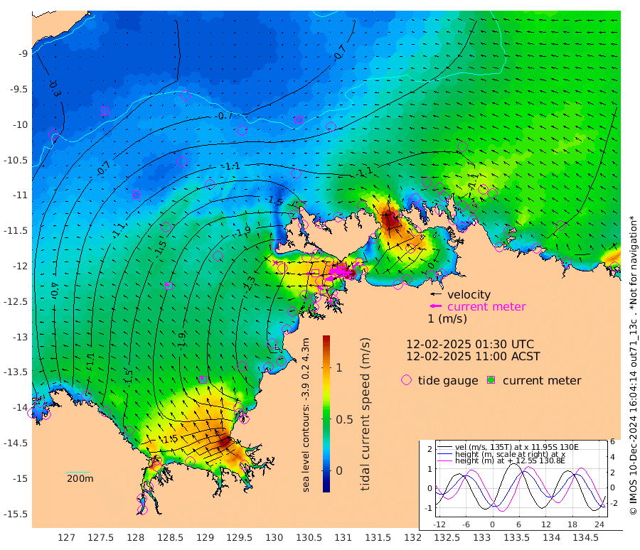 198cm/s -102T +4cm/s rms + 6cm/s 51T. Darwin_C1 52m 148cm/s -89T +4cm/s rms + 7cm/s -161T. Darwin_CW1 22m 108cm/s -107T +4cm/s rms + 8cm/s 61T. Darwin_CW2 34m 79cm/s -129T +3cm/s rms + 9cm/s 98T. Darwin_CW3 22m 143cm/s -91T +5cm/s rms + 7cm/s 88T. Darwin_C3 56m 115cm/s -115T +2cm/s rms + 9cm/s -126T. Darwin_CTbW 22m 9cm/s -55T +9cm/s rms + 2cm/s -110T. NWSLYN 196m 77cm/s -92T +1cm/s rms + 1cm/s -47T. DARBGF 30m 10cm/s -153T +7cm/s rms + 2cm/s -137T. ITFTIS 464m 9cm/s -43T +9cm/s rms + 1cm/s 74T. ITFMHB 146m 37cm/s -27T +4cm/s rms + 1cm/s -134T. ITFJBG 61m 32cm/s -52T +6cm/s rms + 4cm/s 121T. ITFFTB 108m 66cm/s -62T +4cm/s rms + 3cm/s 80T. NRSDAR 19m 5cm Carronade Island 10cm Guy Point -3cm Napier Broome Bay -81cm Lesueur Island -126cm Reveley Island -62cm Rocky Island -145cm Cape Domett -147cm Lacrosse Island -88cm Adolphus Island -7cm Pender Point 31cm Wyndham -119cm The Boxers -146cm Unnamed Shoal -55cm Loxton Shoal -168cm Pelican Island -112cm Calder Shoal -67cm Evans Shoal -85cm Quoin Island -218cm Port Keats -211cm Jones Point -85cm Catfish Island -221cm Cape Scott Offshore -281cm Cape Ford -249cm Anson Bay -88cm Goodrich Bank -230cm Peron Island North -237cm Point Jenny -237cm Native Point -247cm Fish Reef -251cm Tapa Bay -191cm Point Fawcett (Offshore) -253cm Burge Point -241cm Munkunuwa -222cm Beagle A -236cm Parsons Bank -242cm Fenton Patches -68cm Lynedoch Bank -221cm Hancox Shoal Area -245cm Nightcliff -254cm Darwin -255cm Charles Point Patches -157cm Glyde Point -68cm Chambers Bay -50cm Point Stuart -117cm Cape Hotham -62cm Christine Reef -42cm West Alligator Head -4cm East Field Island -80cm Two Hills Bay -182cm Newby Shoal -82cm Camp Point -249cm Medina Inlet South -166cm South Barlow Point -142cm St. Asaph Bay -97cm Cape Van Dieman -104cm Snake Bay -97cm Cache Point -29cm Echo Shoal -95cm Point Jahleel (Off) -109cm Cape Don -97cm Port Essington -96cm Smith Point - West -87cm NW Peacock Island -87cm North Of Jones Shoal -31cm Peacock Island -84cm Point David -93cm D'urville Point -78cm Money Shoal -79cm Copeland Island -107cm Cape Cockburn -88cm One Tree Point -94cm Hogmany Shoal -86cm New Year Island - West -85cm Grant Island -79cm Aurari Bay -73cm Cuthbert Point -84cm North Goulburn Island -74cm Paxie Shoal -55cm Entrance Island -31cm Yabooma Island