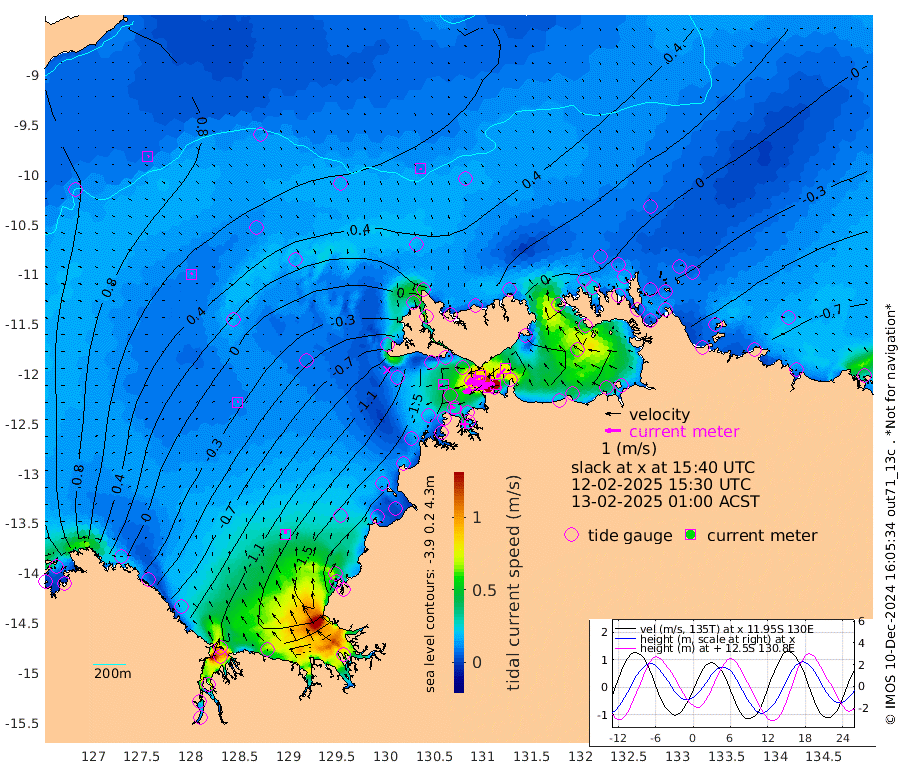 165cm/s -101T +4cm/s rms + 6cm/s 51T. Darwin_C1 52m 132cm/s -90T +4cm/s rms + 7cm/s -161T. Darwin_CW1 22m 82cm/s -107T +4cm/s rms + 8cm/s 61T. Darwin_CW2 34m 78cm/s -135T +3cm/s rms + 9cm/s 98T. Darwin_CW3 22m 117cm/s -91T +5cm/s rms + 7cm/s 88T. Darwin_C3 56m 88cm/s -116T +2cm/s rms + 9cm/s -126T. Darwin_CTbW 22m 9cm/s 150T +9cm/s rms + 2cm/s -110T. NWSLYN 196m 33cm/s -96T +1cm/s rms + 1cm/s -47T. DARBGF 30m 7cm/s 48T +7cm/s rms + 2cm/s -137T. ITFTIS 464m 11cm/s 40T +9cm/s rms + 1cm/s 74T. ITFMHB 146m 26cm/s -1T +4cm/s rms + 1cm/s -134T. ITFJBG 61m 12cm/s 22T +6cm/s rms + 4cm/s 121T. ITFFTB 108m 30cm/s -72T +4cm/s rms + 3cm/s 80T. NRSDAR 19m 126cm Carronade Island 133cm Guy Point 138cm Napier Broome Bay 23cm Lesueur Island -89cm Reveley Island -49cm Rocky Island -152cm Cape Domett -134cm Lacrosse Island -149cm Adolphus Island -58cm Pender Point -26cm Wyndham 25cm The Boxers 8cm Unnamed Shoal 85cm Loxton Shoal -187cm Pelican Island 34cm Calder Shoal 56cm Evans Shoal -173cm Quoin Island -196cm Port Keats -199cm Jones Point -121cm Catfish Island -137cm Cape Scott Offshore -178cm Cape Ford -161cm Anson Bay 35cm Goodrich Bank -146cm Peron Island North -144cm Point Jenny -141cm Native Point -166cm Fish Reef -165cm Tapa Bay -56cm Point Fawcett (Offshore) -184cm Burge Point -168cm Munkunuwa -126cm Beagle A -183cm Parsons Bank -181cm Fenton Patches 48cm Lynedoch Bank -173cm Hancox Shoal Area -184cm Nightcliff -197cm Darwin -172cm Charles Point Patches -133cm Glyde Point -90cm Chambers Bay -87cm Point Stuart -109cm Cape Hotham -78cm Christine Reef -93cm West Alligator Head -76cm East Field Island -78cm Two Hills Bay -47cm Newby Shoal -71cm Camp Point -165cm Medina Inlet South -43cm South Barlow Point -13cm St. Asaph Bay 30cm Cape Van Dieman 27cm Snake Bay 27cm Cache Point 104cm Echo Shoal 8cm Point Jahleel (Off) -34cm Cape Don 0cm Port Essington -3cm Smith Point - West 4cm NW Peacock Island 22cm North Of Jones Shoal 5cm Peacock Island -10cm Point David -4cm D'urville Point 15cm Money Shoal -15cm Copeland Island -22cm Cape Cockburn -8cm One Tree Point -9cm Hogmany Shoal -5cm New Year Island - West -10cm Grant Island -35cm Aurari Bay -44cm Cuthbert Point -29cm North Goulburn Island -39cm Paxie Shoal -60cm Entrance Island -75cm Yabooma Island