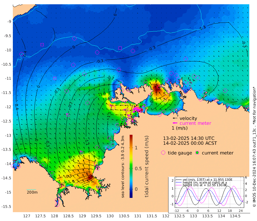 158cm/s -102T +4cm/s rms + 6cm/s 51T. Darwin_C1 52m 119cm/s -89T +4cm/s rms + 7cm/s -161T. Darwin_CW1 22m 89cm/s -108T +4cm/s rms + 8cm/s 61T. Darwin_CW2 34m 54cm/s -127T +3cm/s rms + 9cm/s 98T. Darwin_CW3 22m 99cm/s -92T +5cm/s rms + 7cm/s 88T. Darwin_C3 56m 91cm/s -115T +2cm/s rms + 9cm/s -126T. Darwin_CTbW 22m 0cm/s -30T +9cm/s rms + 2cm/s -110T. NWSLYN 196m 74cm/s -89T +1cm/s rms + 1cm/s -47T. DARBGF 30m 3cm/s -33T +7cm/s rms + 2cm/s -137T. ITFTIS 464m 16cm/s -5T +9cm/s rms + 1cm/s 74T. ITFMHB 146m 48cm/s -25T +4cm/s rms + 1cm/s -134T. ITFJBG 61m 37cm/s -40T +6cm/s rms + 4cm/s 121T. ITFFTB 108m 68cm/s -61T +4cm/s rms + 3cm/s 80T. NRSDAR 19m 131cm Carronade Island 140cm Guy Point 144cm Napier Broome Bay 50cm Lesueur Island -11cm Reveley Island 10cm Rocky Island -14cm Cape Domett -18cm Lacrosse Island 27cm Adolphus Island 153cm Pender Point 195cm Wyndham -21cm The Boxers -48cm Unnamed Shoal 25cm Loxton Shoal -58cm Pelican Island -25cm Calder Shoal -4cm Evans Shoal 48cm Quoin Island -115cm Port Keats -111cm Jones Point 70cm Catfish Island -127cm Cape Scott Offshore -175cm Cape Ford -157cm Anson Bay -29cm Goodrich Bank -146cm Peron Island North -151cm Point Jenny -150cm Native Point -165cm Fish Reef -161cm Tapa Bay -110cm Point Fawcett (Offshore) -162cm Burge Point -169cm Munkunuwa -144cm Beagle A -162cm Parsons Bank -162cm Fenton Patches -9cm Lynedoch Bank -144cm Hancox Shoal Area -165cm Nightcliff -162cm Darwin -160cm Charles Point Patches -74cm Glyde Point 12cm Chambers Bay 30cm Point Stuart -43cm Cape Hotham 13cm Christine Reef 42cm West Alligator Head 82cm East Field Island -6cm Two Hills Bay -80cm Newby Shoal -2cm Camp Point -163cm Medina Inlet South -102cm South Barlow Point -78cm St. Asaph Bay -38cm Cape Van Dieman -42cm Snake Bay -35cm Cache Point 46cm Echo Shoal -37cm Point Jahleel (Off) -45cm Cape Don -45cm Port Essington -50cm Smith Point - West -42cm NW Peacock Island -37cm North Of Jones Shoal -15cm Peacock Island -40cm Point David -51cm D'urville Point -30cm Money Shoal -41cm Copeland Island -56cm Cape Cockburn -41cm One Tree Point -32cm Hogmany Shoal -35cm New Year Island - West -36cm Grant Island -47cm Aurari Bay -34cm Cuthbert Point -41cm North Goulburn Island -19cm Paxie Shoal -17cm Entrance Island -9cm Yabooma Island