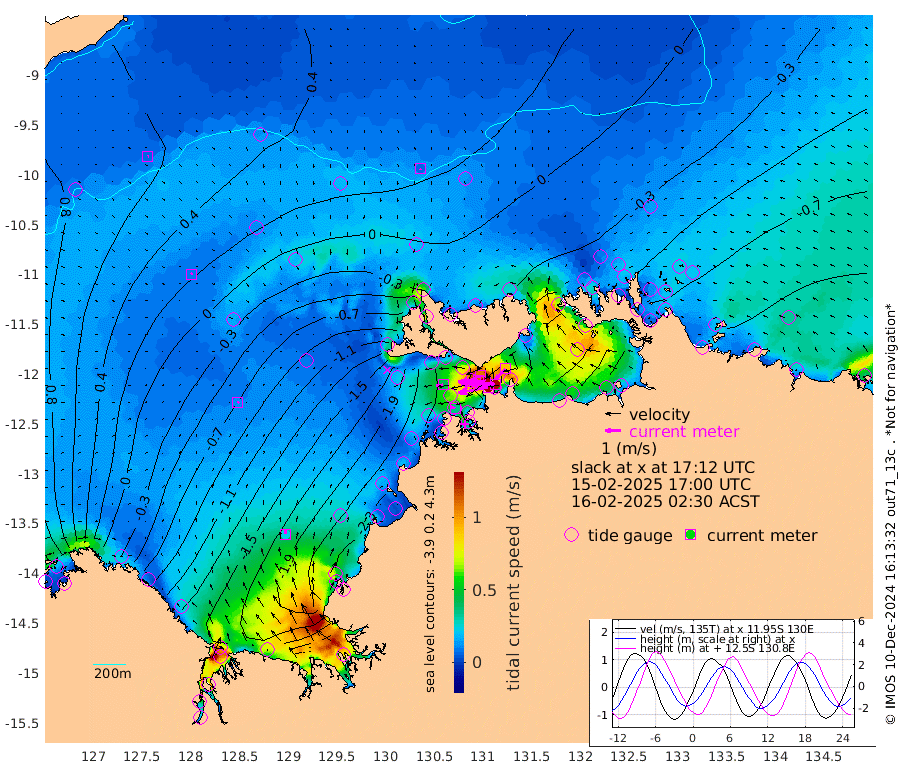 197cm/s -101T +4cm/s rms + 6cm/s 51T. Darwin_C1 52m 164cm/s -91T +4cm/s rms + 7cm/s -161T. Darwin_CW1 22m 113cm/s -106T +4cm/s rms + 8cm/s 61T. Darwin_CW2 34m 91cm/s -135T +3cm/s rms + 9cm/s 98T. Darwin_CW3 22m 176cm/s -91T +5cm/s rms + 7cm/s 88T. Darwin_C3 56m 108cm/s -115T +2cm/s rms + 9cm/s -126T. Darwin_CTbW 22m 8cm/s 173T +9cm/s rms + 2cm/s -110T. NWSLYN 196m 43cm/s -97T +1cm/s rms + 1cm/s -47T. DARBGF 30m 6cm/s 70T +7cm/s rms + 2cm/s -137T. ITFTIS 464m 10cm/s 49T +9cm/s rms + 1cm/s 74T. ITFMHB 146m 24cm/s 5T +4cm/s rms + 1cm/s -134T. ITFJBG 61m 11cm/s 38T +6cm/s rms + 4cm/s 121T. ITFFTB 108m 34cm/s -74T +4cm/s rms + 3cm/s 80T. NRSDAR 19m 109cm Carronade Island 112cm Guy Point 117cm Napier Broome Bay -20cm Lesueur Island -135cm Reveley Island -60cm Rocky Island -216cm Cape Domett -195cm Lacrosse Island -218cm Adolphus Island -109cm Pender Point -78cm Wyndham -11cm The Boxers -29cm Unnamed Shoal 52cm Loxton Shoal -251cm Pelican Island -4cm Calder Shoal 25cm Evans Shoal -262cm Quoin Island -260cm Port Keats -249cm Jones Point -193cm Catfish Island -199cm Cape Scott Offshore -199cm Cape Ford -228cm Anson Bay 5cm Goodrich Bank -207cm Peron Island North -191cm Point Jenny -188cm Native Point -216cm Fish Reef -220cm Tapa Bay -102cm Point Fawcett (Offshore) -238cm Burge Point -216cm Munkunuwa -167cm Beagle A -240cm Parsons Bank -228cm Fenton Patches 16cm Lynedoch Bank -232cm Hancox Shoal Area -249cm Nightcliff -265cm Darwin -238cm Charles Point Patches -179cm Glyde Point -128cm Chambers Bay -117cm Point Stuart -151cm Cape Hotham -111cm Christine Reef -123cm West Alligator Head -99cm East Field Island -116cm Two Hills Bay -94cm Newby Shoal -107cm Camp Point -225cm Medina Inlet South -87cm South Barlow Point -51cm St. Asaph Bay -1cm Cape Van Dieman -11cm Snake Bay -6cm Cache Point 77cm Echo Shoal -26cm Point Jahleel (Off) -75cm Cape Don -37cm Port Essington -40cm Smith Point - West -33cm NW Peacock Island -21cm North Of Jones Shoal -10cm Peacock Island -50cm Point David -42cm D'urville Point -24cm Money Shoal -54cm Copeland Island -77cm Cape Cockburn -52cm One Tree Point -55cm Hogmany Shoal -48cm New Year Island - West -53cm Grant Island -76cm Aurari Bay -84cm Cuthbert Point -75cm North Goulburn Island -85cm Paxie Shoal -100cm Entrance Island -118cm Yabooma Island
