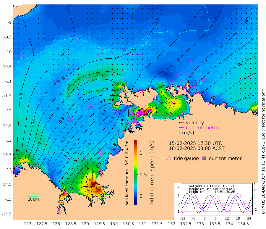 181cm/s -101T +4cm/s rms + 6cm/s 51T. Darwin_C1 52m 152cm/s -91T +4cm/s rms + 7cm/s -161T. Darwin_CW1 22m 99cm/s -106T +4cm/s rms + 8cm/s 61T. Darwin_CW2 34m 92cm/s -136T +3cm/s rms + 9cm/s 98T. Darwin_CW3 22m 168cm/s -91T +5cm/s rms + 7cm/s 88T. Darwin_C3 56m 96cm/s -115T +2cm/s rms + 9cm/s -126T. Darwin_CTbW 22m 10cm/s 167T +9cm/s rms + 2cm/s -110T. NWSLYN 196m 23cm/s -107T +1cm/s rms + 1cm/s -47T. DARBGF 30m 9cm/s 70T +7cm/s rms + 2cm/s -137T. ITFTIS 464m 10cm/s 75T +9cm/s rms + 1cm/s 74T. ITFMHB 146m 17cm/s 36T +4cm/s rms + 1cm/s -134T. ITFJBG 61m 17cm/s 88T +6cm/s rms + 4cm/s 121T. ITFFTB 108m 16cm/s -99T +4cm/s rms + 3cm/s 80T. NRSDAR 19m 92cm Carronade Island 95cm Guy Point 99cm Napier Broome Bay -31cm Lesueur Island -149cm Reveley Island -74cm Rocky Island -244cm Cape Domett -218cm Lacrosse Island -262cm Adolphus Island -175cm Pender Point -155cm Wyndham 4cm The Boxers -9cm Unnamed Shoal 65cm Loxton Shoal -272cm Pelican Island 15cm Calder Shoal 41cm Evans Shoal -322cm Quoin Island -261cm Port Keats -252cm Jones Point -263cm Catfish Island -183cm Cape Scott Offshore -167cm Cape Ford -207cm Anson Bay 25cm Goodrich Bank -188cm Peron Island North -167cm Point Jenny -163cm Native Point -195cm Fish Reef -197cm Tapa Bay -75cm Point Fawcett (Offshore) -219cm Burge Point -191cm Munkunuwa -142cm Beagle A -223cm Parsons Bank -209cm Fenton Patches 32cm Lynedoch Bank -219cm Hancox Shoal Area -231cm Nightcliff -250cm Darwin -218cm Charles Point Patches -184cm Glyde Point -156cm Chambers Bay -152cm Point Stuart -163cm Cape Hotham -135cm Christine Reef -164cm West Alligator Head -152cm East Field Island -136cm Two Hills Bay -74cm Newby Shoal -124cm Camp Point -203cm Medina Inlet South -59cm South Barlow Point -25cm St. Asaph Bay 21cm Cape Van Dieman 11cm Snake Bay 13cm Cache Point 86cm Echo Shoal -11cm Point Jahleel (Off) -68cm Cape Don -23cm Port Essington -24cm Smith Point - West -19cm NW Peacock Island -5cm North Of Jones Shoal -4cm Peacock Island -41cm Point David -27cm D'urville Point -12cm Money Shoal -46cm Copeland Island -67cm Cape Cockburn -43cm One Tree Point -49cm Hogmany Shoal -40cm New Year Island - West -45cm Grant Island -73cm Aurari Bay -87cm Cuthbert Point -71cm North Goulburn Island -91cm Paxie Shoal -112cm Entrance Island -140cm Yabooma Island