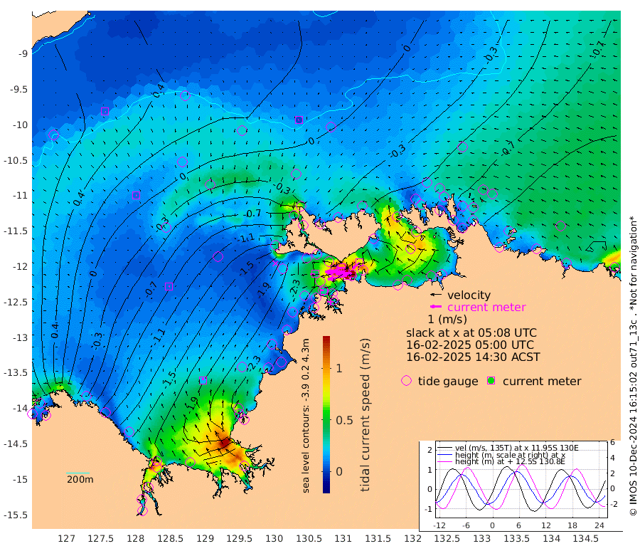 177cm/s -102T +4cm/s rms + 6cm/s 51T. Darwin_C1 52m 145cm/s -90T +4cm/s rms + 7cm/s -161T. Darwin_CW1 22m 118cm/s -107T +4cm/s rms + 8cm/s 61T. Darwin_CW2 34m 83cm/s -133T +3cm/s rms + 9cm/s 98T. Darwin_CW3 22m 181cm/s -91T +5cm/s rms + 7cm/s 88T. Darwin_C3 56m 97cm/s -115T +2cm/s rms + 9cm/s -126T. Darwin_CTbW 22m 2cm/s -120T +9cm/s rms + 2cm/s -110T. NWSLYN 196m 41cm/s -98T +1cm/s rms + 1cm/s -47T. DARBGF 30m 6cm/s 133T +7cm/s rms + 2cm/s -137T. ITFTIS 464m 6cm/s 115T +9cm/s rms + 1cm/s 74T. ITFMHB 146m 18cm/s 7T +4cm/s rms + 1cm/s -134T. ITFJBG 61m 8cm/s 60T +6cm/s rms + 4cm/s 121T. ITFFTB 108m 32cm/s -77T +4cm/s rms + 3cm/s 80T. NRSDAR 19m 110cm Carronade Island 111cm Guy Point 107cm Napier Broome Bay -16cm Lesueur Island -136cm Reveley Island -69cm Rocky Island -208cm Cape Domett -181cm Lacrosse Island -196cm Adolphus Island -118cm Pender Point -78cm Wyndham -25cm The Boxers -54cm Unnamed Shoal 41cm Loxton Shoal -245cm Pelican Island -8cm Calder Shoal 22cm Evans Shoal -242cm Quoin Island -250cm Port Keats -247cm Jones Point -170cm Catfish Island -195cm Cape Scott Offshore -196cm Cape Ford -227cm Anson Bay -5cm Goodrich Bank -194cm Peron Island North -186cm Point Jenny -188cm Native Point -203cm Fish Reef -221cm Tapa Bay -100cm Point Fawcett (Offshore) -227cm Burge Point -215cm Munkunuwa -152cm Beagle A -234cm Parsons Bank -213cm Fenton Patches 6cm Lynedoch Bank -226cm Hancox Shoal Area -234cm Nightcliff -261cm Darwin -239cm Charles Point Patches -170cm Glyde Point -113cm Chambers Bay -98cm Point Stuart -134cm Cape Hotham -93cm Christine Reef -101cm West Alligator Head -74cm East Field Island -100cm Two Hills Bay -84cm Newby Shoal -103cm Camp Point -221cm Medina Inlet South -89cm South Barlow Point -53cm St. Asaph Bay -11cm Cape Van Dieman -23cm Snake Bay -9cm Cache Point 73cm Echo Shoal -27cm Point Jahleel (Off) -73cm Cape Don -42cm Port Essington -38cm Smith Point - West -34cm NW Peacock Island -18cm North Of Jones Shoal -9cm Peacock Island -58cm Point David -42cm D'urville Point -29cm Money Shoal -58cm Copeland Island -70cm Cape Cockburn -55cm One Tree Point -68cm Hogmany Shoal -53cm New Year Island - West -59cm Grant Island -74cm Aurari Bay -84cm Cuthbert Point -75cm North Goulburn Island -95cm Paxie Shoal -101cm Entrance Island -109cm Yabooma Island