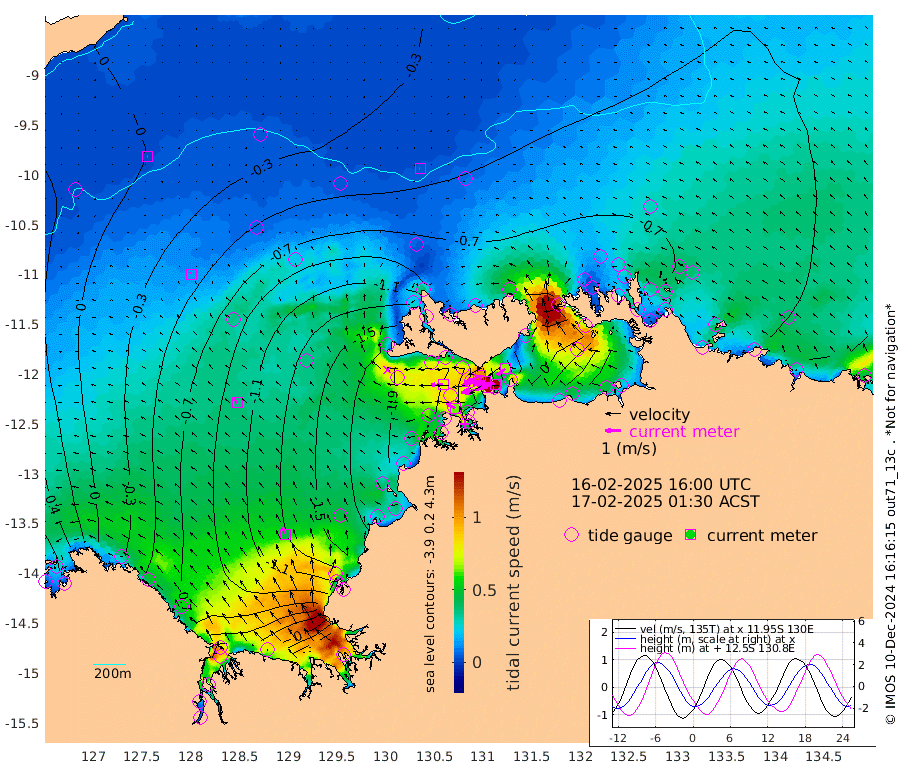 176cm/s -102T +4cm/s rms + 6cm/s 51T. Darwin_C1 52m 133cm/s -90T +4cm/s rms + 7cm/s -161T. Darwin_CW1 22m 112cm/s -108T +4cm/s rms + 8cm/s 61T. Darwin_CW2 34m 66cm/s -127T +3cm/s rms + 9cm/s 98T. Darwin_CW3 22m 135cm/s -92T +5cm/s rms + 7cm/s 88T. Darwin_C3 56m 102cm/s -115T +2cm/s rms + 9cm/s -126T. Darwin_CTbW 22m 4cm/s -84T +9cm/s rms + 2cm/s -110T. NWSLYN 196m 76cm/s -91T +1cm/s rms + 1cm/s -47T. DARBGF 30m 2cm/s -100T +7cm/s rms + 2cm/s -137T. ITFTIS 464m 15cm/s -7T +9cm/s rms + 1cm/s 74T. ITFMHB 146m 45cm/s -22T +4cm/s rms + 1cm/s -134T. ITFJBG 61m 34cm/s -41T +6cm/s rms + 4cm/s 121T. ITFFTB 108m 64cm/s -62T +4cm/s rms + 3cm/s 80T. NRSDAR 19m 103cm Carronade Island 104cm Guy Point 113cm Napier Broome Bay 4cm Lesueur Island -60cm Reveley Island 1cm Rocky Island -73cm Cape Domett -74cm Lacrosse Island -33cm Adolphus Island 95cm Pender Point 141cm Wyndham -54cm The Boxers -80cm Unnamed Shoal -11cm Loxton Shoal -112cm Pelican Island -64cm Calder Shoal -33cm Evans Shoal -17cm Quoin Island -171cm Port Keats -152cm Jones Point 73cm Catfish Island -175cm Cape Scott Offshore -217cm Cape Ford -206cm Anson Bay -57cm Goodrich Bank -188cm Peron Island North -190cm Point Jenny -190cm Native Point -198cm Fish Reef -208cm Tapa Bay -145cm Point Fawcett (Offshore) -206cm Burge Point -211cm Munkunuwa -178cm Beagle A -205cm Parsons Bank -201cm Fenton Patches -37cm Lynedoch Bank -191cm Hancox Shoal Area -217cm Nightcliff -213cm Darwin -210cm Charles Point Patches -105cm Glyde Point -11cm Chambers Bay 19cm Point Stuart -68cm Cape Hotham -10cm Christine Reef 31cm West Alligator Head 76cm East Field Island -23cm Two Hills Bay -120cm Newby Shoal -27cm Camp Point -208cm Medina Inlet South -137cm South Barlow Point -111cm St. Asaph Bay -66cm Cape Van Dieman -74cm Snake Bay -61cm Cache Point 16cm Echo Shoal -63cm Point Jahleel (Off) -68cm Cape Don -66cm Port Essington -71cm Smith Point - West -63cm NW Peacock Island -62cm North Of Jones Shoal -23cm Peacock Island -61cm Point David -71cm D'urville Point -51cm Money Shoal -59cm Copeland Island -78cm Cape Cockburn -62cm One Tree Point -56cm Hogmany Shoal -57cm New Year Island - West -58cm Grant Island -59cm Aurari Bay -43cm Cuthbert Point -60cm North Goulburn Island -37cm Paxie Shoal -29cm Entrance Island -16cm Yabooma Island