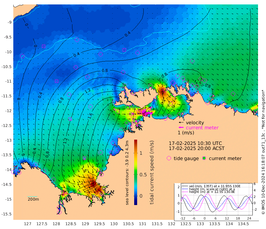 173cm/s 78T +4cm/s rms + 6cm/s 51T. Darwin_C1 52m 130cm/s 88T +4cm/s rms + 7cm/s -161T. Darwin_CW1 22m 103cm/s 74T +4cm/s rms + 8cm/s 61T. Darwin_CW2 34m 79cm/s 48T +3cm/s rms + 9cm/s 98T. Darwin_CW3 22m 143cm/s 88T +5cm/s rms + 7cm/s 88T. Darwin_C3 56m 99cm/s 64T +2cm/s rms + 9cm/s -126T. Darwin_CTbW 22m 4cm/s 37T +9cm/s rms + 2cm/s -110T. NWSLYN 196m 65cm/s 87T +1cm/s rms + 1cm/s -47T. DARBGF 30m 5cm/s 18T +7cm/s rms + 2cm/s -137T. ITFTIS 464m 6cm/s 163T +9cm/s rms + 1cm/s 74T. ITFMHB 146m 34cm/s 166T +4cm/s rms + 1cm/s -134T. ITFJBG 61m 22cm/s 140T +6cm/s rms + 4cm/s 121T. ITFFTB 108m 63cm/s 114T +4cm/s rms + 3cm/s 80T. NRSDAR 19m -78cm Carronade Island -83cm Guy Point -78cm Napier Broome Bay 24cm Lesueur Island 94cm Reveley Island 64cm Rocky Island 130cm Cape Domett 117cm Lacrosse Island 105cm Adolphus Island -12cm Pender Point -57cm Wyndham 72cm The Boxers 93cm Unnamed Shoal 22cm Loxton Shoal 155cm Pelican Island 73cm Calder Shoal 35cm Evans Shoal 89cm Quoin Island 211cm Port Keats 188cm Jones Point -25cm Catfish Island 187cm Cape Scott Offshore 230cm Cape Ford 217cm Anson Bay 61cm Goodrich Bank 199cm Peron Island North 204cm Point Jenny 206cm Native Point 214cm Fish Reef 222cm Tapa Bay 144cm Point Fawcett (Offshore) 235cm Burge Point 223cm Munkunuwa 195cm Beagle A 227cm Parsons Bank 229cm Fenton Patches 44cm Lynedoch Bank 210cm Hancox Shoal Area 236cm Nightcliff 242cm Darwin 233cm Charles Point Patches 135cm Glyde Point 43cm Chambers Bay 14cm Point Stuart 90cm Cape Hotham 43cm Christine Reef 5cm West Alligator Head -33cm East Field Island 49cm Two Hills Bay 151cm Newby Shoal 57cm Camp Point 227cm Medina Inlet South 144cm South Barlow Point 111cm St. Asaph Bay 67cm Cape Van Dieman 79cm Snake Bay 62cm Cache Point -11cm Echo Shoal 67cm Point Jahleel (Off) 81cm Cape Don 71cm Port Essington 74cm Smith Point - West 67cm NW Peacock Island 61cm North Of Jones Shoal 22cm Peacock Island 62cm Point David 74cm D'urville Point 57cm Money Shoal 60cm Copeland Island 82cm Cape Cockburn 65cm One Tree Point 56cm Hogmany Shoal 64cm New Year Island - West 65cm Grant Island 63cm Aurari Bay 55cm Cuthbert Point 65cm North Goulburn Island 45cm Paxie Shoal 45cm Entrance Island 25cm Yabooma Island