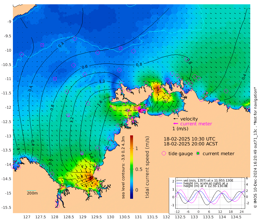 137cm/s 78T +4cm/s rms + 6cm/s 51T. Darwin_C1 52m 94cm/s 86T +4cm/s rms + 7cm/s -161T. Darwin_CW1 22m 80cm/s 74T +4cm/s rms + 8cm/s 61T. Darwin_CW2 34m 51cm/s 52T +3cm/s rms + 9cm/s 98T. Darwin_CW3 22m 99cm/s 88T +5cm/s rms + 7cm/s 88T. Darwin_C3 56m 86cm/s 63T +2cm/s rms + 9cm/s -126T. Darwin_CTbW 22m 4cm/s 68T +9cm/s rms + 2cm/s -110T. NWSLYN 196m 61cm/s 89T +1cm/s rms + 1cm/s -47T. DARBGF 30m 6cm/s 29T +7cm/s rms + 2cm/s -137T. ITFTIS 464m 6cm/s 138T +9cm/s rms + 1cm/s 74T. ITFMHB 146m 34cm/s 160T +4cm/s rms + 1cm/s -134T. ITFJBG 61m 25cm/s 132T +6cm/s rms + 4cm/s 121T. ITFFTB 108m 58cm/s 117T +4cm/s rms + 3cm/s 80T. NRSDAR 19m -58cm Carronade Island -61cm Guy Point -59cm Napier Broome Bay 23cm Lesueur Island 69cm Reveley Island 39cm Rocky Island 84cm Cape Domett 77cm Lacrosse Island 53cm Adolphus Island -50cm Pender Point -92cm Wyndham 76cm The Boxers 97cm Unnamed Shoal 39cm Loxton Shoal 101cm Pelican Island 82cm Calder Shoal 48cm Evans Shoal 21cm Quoin Island 164cm Port Keats 141cm Jones Point -106cm Catfish Island 154cm Cape Scott Offshore 216cm Cape Ford 180cm Anson Bay 71cm Goodrich Bank 168cm Peron Island North 176cm Point Jenny 179cm Native Point 180cm Fish Reef 189cm Tapa Bay 134cm Point Fawcett (Offshore) 200cm Burge Point 193cm Munkunuwa 173cm Beagle A 191cm Parsons Bank 194cm Fenton Patches 55cm Lynedoch Bank 173cm Hancox Shoal Area 198cm Nightcliff 199cm Darwin 196cm Charles Point Patches 102cm Glyde Point 11cm Chambers Bay -17cm Point Stuart 62cm Cape Hotham 17cm Christine Reef -30cm West Alligator Head -66cm East Field Island 23cm Two Hills Bay 143cm Newby Shoal 35cm Camp Point 193cm Medina Inlet South 139cm South Barlow Point 112cm St. Asaph Bay 78cm Cape Van Dieman 88cm Snake Bay 71cm Cache Point 10cm Echo Shoal 70cm Point Jahleel (Off) 72cm Cape Don 72cm Port Essington 75cm Smith Point - West 69cm NW Peacock Island 66cm North Of Jones Shoal 24cm Peacock Island 62cm Point David 75cm D'urville Point 60cm Money Shoal 59cm Copeland Island 80cm Cape Cockburn 64cm One Tree Point 56cm Hogmany Shoal 63cm New Year Island - West 64cm Grant Island 54cm Aurari Bay 43cm Cuthbert Point 59cm North Goulburn Island 33cm Paxie Shoal 30cm Entrance Island 5cm Yabooma Island