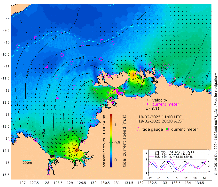 117cm/s 78T +4cm/s rms + 6cm/s 51T. Darwin_C1 52m 72cm/s 86T +4cm/s rms + 7cm/s -161T. Darwin_CW1 22m 69cm/s 74T +4cm/s rms + 8cm/s 61T. Darwin_CW2 34m 43cm/s 52T +3cm/s rms + 9cm/s 98T. Darwin_CW3 22m 86cm/s 88T +5cm/s rms + 7cm/s 88T. Darwin_C3 56m 74cm/s 63T +2cm/s rms + 9cm/s -126T. Darwin_CTbW 22m 4cm/s 70T +9cm/s rms + 2cm/s -110T. NWSLYN 196m 49cm/s 88T +1cm/s rms + 1cm/s -47T. DARBGF 30m 6cm/s 20T +7cm/s rms + 2cm/s -137T. ITFTIS 464m 4cm/s 110T +9cm/s rms + 1cm/s 74T. ITFMHB 146m 26cm/s 161T +4cm/s rms + 1cm/s -134T. ITFJBG 61m 18cm/s 130T +6cm/s rms + 4cm/s 121T. ITFFTB 108m 46cm/s 116T +4cm/s rms + 3cm/s 80T. NRSDAR 19m -46cm Carronade Island -48cm Guy Point -46cm Napier Broome Bay 29cm Lesueur Island 71cm Reveley Island 34cm Rocky Island 87cm Cape Domett 79cm Lacrosse Island 61cm Adolphus Island -25cm Pender Point -61cm Wyndham 69cm The Boxers 92cm Unnamed Shoal 38cm Loxton Shoal 100cm Pelican Island 75cm Calder Shoal 44cm Evans Shoal 34cm Quoin Island 151cm Port Keats 132cm Jones Point -97cm Catfish Island 138cm Cape Scott Offshore 198cm Cape Ford 160cm Anson Bay 66cm Goodrich Bank 152cm Peron Island North 156cm Point Jenny 159cm Native Point 159cm Fish Reef 170cm Tapa Bay 118cm Point Fawcett (Offshore) 180cm Burge Point 172cm Munkunuwa 152cm Beagle A 175cm Parsons Bank 172cm Fenton Patches 52cm Lynedoch Bank 159cm Hancox Shoal Area 177cm Nightcliff 182cm Darwin 177cm Charles Point Patches 96cm Glyde Point 18cm Chambers Bay -5cm Point Stuart 63cm Cape Hotham 23cm Christine Reef -16cm West Alligator Head -47cm East Field Island 29cm Two Hills Bay 128cm Newby Shoal 39cm Camp Point 172cm Medina Inlet South 124cm South Barlow Point 99cm St. Asaph Bay 71cm Cape Van Dieman 82cm Snake Bay 65cm Cache Point 9cm Echo Shoal 66cm Point Jahleel (Off) 68cm Cape Don 68cm Port Essington 70cm Smith Point - West 66cm NW Peacock Island 62cm North Of Jones Shoal 22cm Peacock Island 65cm Point David 71cm D'urville Point 59cm Money Shoal 61cm Copeland Island 82cm Cape Cockburn 65cm One Tree Point 63cm Hogmany Shoal 65cm New Year Island - West 67cm Grant Island 57cm Aurari Bay 48cm Cuthbert Point 63cm North Goulburn Island 42cm Paxie Shoal 42cm Entrance Island 21cm Yabooma Island