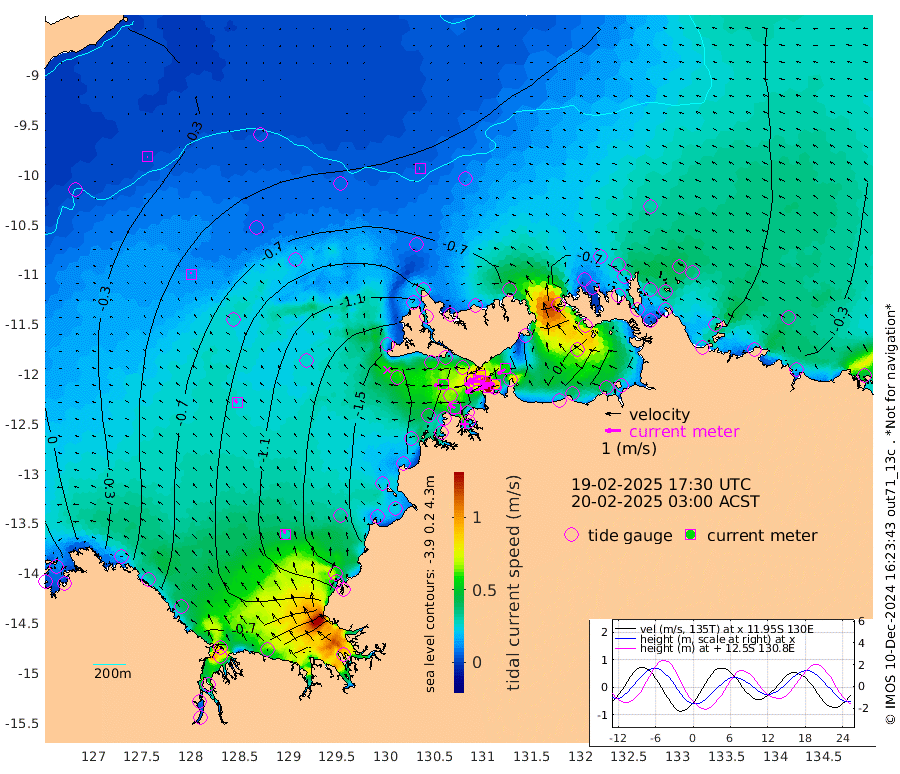 150cm/s -102T +4cm/s rms + 6cm/s 51T. Darwin_C1 52m 92cm/s -89T +4cm/s rms + 7cm/s -161T. Darwin_CW1 22m 94cm/s -108T +4cm/s rms + 8cm/s 61T. Darwin_CW2 34m 58cm/s -126T +3cm/s rms + 9cm/s 98T. Darwin_CW3 22m 116cm/s -92T +5cm/s rms + 7cm/s 88T. Darwin_C3 56m 88cm/s -116T +2cm/s rms + 9cm/s -126T. Darwin_CTbW 22m 5cm/s -80T +9cm/s rms + 2cm/s -110T. NWSLYN 196m 55cm/s -93T +1cm/s rms + 1cm/s -47T. DARBGF 30m 2cm/s -125T +7cm/s rms + 2cm/s -137T. ITFTIS 464m 12cm/s -6T +9cm/s rms + 1cm/s 74T. ITFMHB 146m 29cm/s -17T +4cm/s rms + 1cm/s -134T. ITFJBG 61m 23cm/s -40T +6cm/s rms + 4cm/s 121T. ITFFTB 108m 45cm/s -65T +4cm/s rms + 3cm/s 80T. NRSDAR 19m 46cm Carronade Island 41cm Guy Point 52cm Napier Broome Bay -37cm Lesueur Island -90cm Reveley Island -29cm Rocky Island -106cm Cape Domett -100cm Lacrosse Island -79cm Adolphus Island 14cm Pender Point 53cm Wyndham -68cm The Boxers -83cm Unnamed Shoal -37cm Loxton Shoal -131cm Pelican Island -76cm Calder Shoal -48cm Evans Shoal -60cm Quoin Island -169cm Port Keats -149cm Jones Point 64cm Catfish Island -161cm Cape Scott Offshore -219cm Cape Ford -181cm Anson Bay -66cm Goodrich Bank -168cm Peron Island North -173cm Point Jenny -176cm Native Point -171cm Fish Reef -192cm Tapa Bay -130cm Point Fawcett (Offshore) -187cm Burge Point -189cm Munkunuwa -160cm Beagle A -186cm Parsons Bank -182cm Fenton Patches -47cm Lynedoch Bank -178cm Hancox Shoal Area -194cm Nightcliff -194cm Darwin -192cm Charles Point Patches -104cm Glyde Point -28cm Chambers Bay -1cm Point Stuart -70cm Cape Hotham -31cm Christine Reef 7cm West Alligator Head 43cm East Field Island -34cm Two Hills Bay -122cm Newby Shoal -41cm Camp Point -185cm Medina Inlet South -126cm South Barlow Point -106cm St. Asaph Bay -71cm Cape Van Dieman -78cm Snake Bay -66cm Cache Point -10cm Echo Shoal -68cm Point Jahleel (Off) -67cm Cape Don -64cm Port Essington -71cm Smith Point - West -64cm NW Peacock Island -60cm North Of Jones Shoal -21cm Peacock Island -60cm Point David -69cm D'urville Point -51cm Money Shoal -57cm Copeland Island -70cm Cape Cockburn -57cm One Tree Point -65cm Hogmany Shoal -57cm New Year Island - West -60cm Grant Island -49cm Aurari Bay -40cm Cuthbert Point -55cm North Goulburn Island -35cm Paxie Shoal -33cm Entrance Island -12cm Yabooma Island