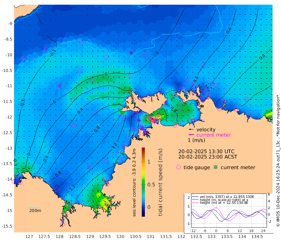102cm/s 78T +4cm/s rms + 6cm/s 51T. Darwin_C1 52m 49cm/s 90T +4cm/s rms + 7cm/s -161T. Darwin_CW1 22m 57cm/s 74T +4cm/s rms + 8cm/s 61T. Darwin_CW2 34m 60cm/s 44T +3cm/s rms + 9cm/s 98T. Darwin_CW3 22m 91cm/s 90T +5cm/s rms + 7cm/s 88T. Darwin_C3 56m 59cm/s 65T +2cm/s rms + 9cm/s -126T. Darwin_CTbW 22m 5cm/s -1T +9cm/s rms + 2cm/s -110T. NWSLYN 196m 6cm/s 37T +1cm/s rms + 1cm/s -47T. DARBGF 30m 6cm/s -65T +7cm/s rms + 2cm/s -137T. ITFTIS 464m 10cm/s -34T +9cm/s rms + 1cm/s 74T. ITFMHB 146m 11cm/s -80T +4cm/s rms + 1cm/s -134T. ITFJBG 61m 16cm/s -65T +6cm/s rms + 4cm/s 121T. ITFFTB 108m 7cm/s 15T +4cm/s rms + 3cm/s 80T. NRSDAR 19m -36cm Carronade Island -37cm Guy Point -31cm Napier Broome Bay 31cm Lesueur Island 92cm Reveley Island 44cm Rocky Island 144cm Cape Domett 126cm Lacrosse Island 160cm Adolphus Island 124cm Pender Point 120cm Wyndham 7cm The Boxers 31cm Unnamed Shoal -27cm Loxton Shoal 152cm Pelican Island -3cm Calder Shoal -20cm Evans Shoal 195cm Quoin Island 143cm Port Keats 132cm Jones Point 142cm Catfish Island 98cm Cape Scott Offshore 38cm Cape Ford 114cm Anson Bay -6cm Goodrich Bank 97cm Peron Island North 85cm Point Jenny 85cm Native Point 92cm Fish Reef 104cm Tapa Bay 32cm Point Fawcett (Offshore) 116cm Burge Point 95cm Munkunuwa 67cm Beagle A 127cm Parsons Bank 107cm Fenton Patches -4cm Lynedoch Bank 125cm Hancox Shoal Area 131cm Nightcliff 140cm Darwin 117cm Charles Point Patches 109cm Glyde Point 98cm Chambers Bay 96cm Point Stuart 99cm Cape Hotham 90cm Christine Reef 102cm West Alligator Head 96cm East Field Island 88cm Two Hills Bay 49cm Newby Shoal 84cm Camp Point 106cm Medina Inlet South 35cm South Barlow Point 11cm St. Asaph Bay -4cm Cape Van Dieman 10cm Snake Bay -1cm Cache Point -44cm Echo Shoal 15cm Point Jahleel (Off) 52cm Cape Don 26cm Port Essington 27cm Smith Point - West 29cm NW Peacock Island 17cm North Of Jones Shoal 8cm Peacock Island 55cm Point David 34cm D'urville Point 29cm Money Shoal 57cm Copeland Island 74cm Cape Cockburn 53cm One Tree Point 64cm Hogmany Shoal 56cm New Year Island - West 60cm Grant Island 75cm Aurari Bay 87cm Cuthbert Point 74cm North Goulburn Island 95cm Paxie Shoal 109cm Entrance Island 126cm Yabooma Island