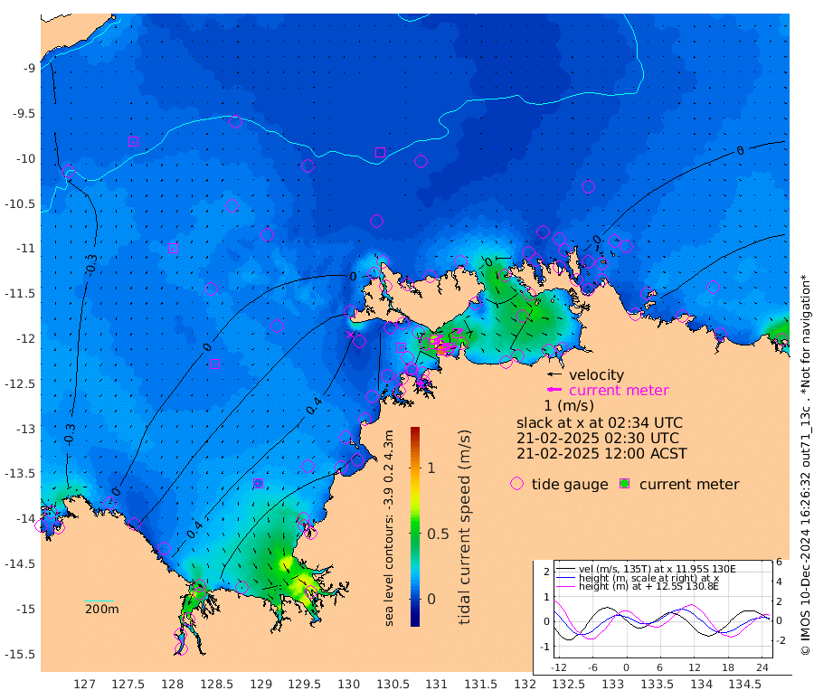 108cm/s 78T +4cm/s rms + 6cm/s 51T. Darwin_C1 52m 54cm/s 94T +4cm/s rms + 7cm/s -161T. Darwin_CW1 22m 53cm/s 72T +4cm/s rms + 8cm/s 61T. Darwin_CW2 34m 49cm/s 50T +3cm/s rms + 9cm/s 98T. Darwin_CW3 22m 75cm/s 89T +5cm/s rms + 7cm/s 88T. Darwin_C3 56m 66cm/s 66T +2cm/s rms + 9cm/s -126T. Darwin_CTbW 22m 1cm/s -59T +9cm/s rms + 2cm/s -110T. NWSLYN 196m 11cm/s 74T +1cm/s rms + 1cm/s -47T. DARBGF 30m 7cm/s -149T +7cm/s rms + 2cm/s -137T. ITFTIS 464m 14cm/s -155T +9cm/s rms + 1cm/s 74T. ITFMHB 146m 8cm/s -132T +4cm/s rms + 1cm/s -134T. ITFJBG 61m 9cm/s -139T +6cm/s rms + 4cm/s 121T. ITFFTB 108m 7cm/s 71T +4cm/s rms + 3cm/s 80T. NRSDAR 19m -24cm Carronade Island -17cm Guy Point -26cm Napier Broome Bay 10cm Lesueur Island 62cm Reveley Island 38cm Rocky Island 94cm Cape Domett 83cm Lacrosse Island 107cm Adolphus Island 76cm Pender Point 73cm Wyndham -5cm The Boxers -12cm Unnamed Shoal -25cm Loxton Shoal 112cm Pelican Island -12cm Calder Shoal -16cm Evans Shoal 134cm Quoin Island 93cm Port Keats 80cm Jones Point 128cm Catfish Island 72cm Cape Scott Offshore 15cm Cape Ford 79cm Anson Bay -14cm Goodrich Bank 61cm Peron Island North 64cm Point Jenny 62cm Native Point 58cm Fish Reef 75cm Tapa Bay 22cm Point Fawcett (Offshore) 64cm Burge Point 64cm Munkunuwa 42cm Beagle A 75cm Parsons Bank 66cm Fenton Patches -18cm Lynedoch Bank 84cm Hancox Shoal Area 87cm Nightcliff 80cm Darwin 70cm Charles Point Patches 61cm Glyde Point 64cm Chambers Bay 54cm Point Stuart 52cm Cape Hotham 63cm Christine Reef 62cm West Alligator Head 54cm East Field Island 49cm Two Hills Bay 16cm Newby Shoal 41cm Camp Point 65cm Medina Inlet South 13cm South Barlow Point 5cm St. Asaph Bay -14cm Cape Van Dieman -13cm Snake Bay -10cm Cache Point -32cm Echo Shoal 0cm Point Jahleel (Off) 21cm Cape Don 1cm Port Essington 8cm Smith Point - West 4cm NW Peacock Island -4cm North Of Jones Shoal -1cm Peacock Island 9cm Point David 7cm D'urville Point -5cm Money Shoal 12cm Copeland Island 11cm Cape Cockburn 7cm One Tree Point 17cm Hogmany Shoal 7cm New Year Island - West 11cm Grant Island 20cm Aurari Bay 31cm Cuthbert Point 18cm North Goulburn Island 30cm Paxie Shoal 39cm Entrance Island 48cm Yabooma Island