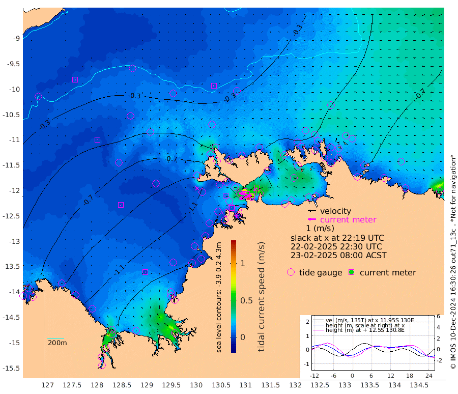 114cm/s -102T +4cm/s rms + 6cm/s 51T. Darwin_C1 52m 65cm/s -90T +4cm/s rms + 7cm/s -161T. Darwin_CW1 22m 39cm/s -106T +4cm/s rms + 8cm/s 61T. Darwin_CW2 34m 57cm/s -134T +3cm/s rms + 9cm/s 98T. Darwin_CW3 22m 57cm/s -89T +5cm/s rms + 7cm/s 88T. Darwin_C3 56m 76cm/s -116T +2cm/s rms + 9cm/s -126T. Darwin_CTbW 22m 4cm/s -105T +9cm/s rms + 2cm/s -110T. NWSLYN 196m 10cm/s -108T +1cm/s rms + 1cm/s -47T. DARBGF 30m 5cm/s 165T +7cm/s rms + 2cm/s -137T. ITFTIS 464m 3cm/s -173T +9cm/s rms + 1cm/s 74T. ITFMHB 146m 3cm/s 118T +4cm/s rms + 1cm/s -134T. ITFJBG 61m 3cm/s 153T +6cm/s rms + 4cm/s 121T. ITFFTB 108m 4cm/s -121T +4cm/s rms + 3cm/s 80T. NRSDAR 19m -71cm Carronade Island -73cm Guy Point -78cm Napier Broome Bay -109cm Lesueur Island -113cm Reveley Island -53cm Rocky Island -145cm Cape Domett -144cm Lacrosse Island -151cm Adolphus Island -138cm Pender Point -149cm Wyndham -63cm The Boxers -72cm Unnamed Shoal -26cm Loxton Shoal -149cm Pelican Island -48cm Calder Shoal -24cm Evans Shoal -172cm Quoin Island -135cm Port Keats -125cm Jones Point -208cm Catfish Island -113cm Cape Scott Offshore -69cm Cape Ford -120cm Anson Bay -31cm Goodrich Bank -102cm Peron Island North -107cm Point Jenny -106cm Native Point -101cm Fish Reef -116cm Tapa Bay -69cm Point Fawcett (Offshore) -111cm Burge Point -84cm Munkunuwa -96cm Beagle A -105cm Parsons Bank -115cm Fenton Patches -27cm Lynedoch Bank -117cm Hancox Shoal Area -127cm Nightcliff -121cm Darwin -115cm Charles Point Patches -111cm Glyde Point -113cm Chambers Bay -107cm Point Stuart -102cm Cape Hotham -109cm Christine Reef -115cm West Alligator Head -116cm East Field Island -98cm Two Hills Bay -94cm Newby Shoal -98cm Camp Point -102cm Medina Inlet South -53cm South Barlow Point -46cm St. Asaph Bay -32cm Cape Van Dieman -36cm Snake Bay -39cm Cache Point -24cm Echo Shoal -46cm Point Jahleel (Off) -67cm Cape Don -44cm Port Essington -48cm Smith Point - West -47cm NW Peacock Island -40cm North Of Jones Shoal -14cm Peacock Island -56cm Point David -49cm D'urville Point -44cm Money Shoal -55cm Copeland Island -71cm Cape Cockburn -54cm One Tree Point -74cm Hogmany Shoal -63cm New Year Island - West -62cm Grant Island -69cm Aurari Bay -78cm Cuthbert Point -67cm North Goulburn Island -83cm Paxie Shoal -84cm Entrance Island -87cm Yabooma Island