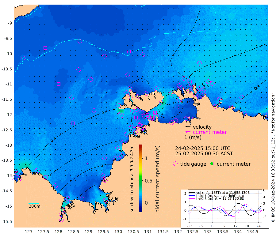 16cm/s -100T +4cm/s rms + 6cm/s 51T. Darwin_C1 52m 40cm/s -91T +4cm/s rms + 7cm/s -161T. Darwin_CW1 22m 15cm/s -110T +4cm/s rms + 8cm/s 61T. Darwin_CW2 34m 22cm/s -139T +3cm/s rms + 9cm/s 98T. Darwin_CW3 22m 24cm/s -94T +5cm/s rms + 7cm/s 88T. Darwin_C3 56m 1cm/s -50T +2cm/s rms + 9cm/s -126T. Darwin_CTbW 22m 6cm/s 140T +9cm/s rms + 2cm/s -110T. NWSLYN 196m 5cm/s 114T +1cm/s rms + 1cm/s -47T. DARBGF 30m 5cm/s 18T +7cm/s rms + 2cm/s -137T. ITFTIS 464m 7cm/s 33T +9cm/s rms + 1cm/s 74T. ITFMHB 146m 5cm/s 56T +4cm/s rms + 1cm/s -134T. ITFJBG 61m 6cm/s 83T +6cm/s rms + 4cm/s 121T. ITFFTB 108m 5cm/s 149T +4cm/s rms + 3cm/s 80T. NRSDAR 19m 36cm Carronade Island 36cm Guy Point 40cm Napier Broome Bay 20cm Lesueur Island -14cm Reveley Island -18cm Rocky Island -47cm Cape Domett -42cm Lacrosse Island -61cm Adolphus Island -54cm Pender Point -51cm Wyndham 39cm The Boxers 56cm Unnamed Shoal 44cm Loxton Shoal -49cm Pelican Island 38cm Calder Shoal 41cm Evans Shoal -91cm Quoin Island -41cm Port Keats -35cm Jones Point -77cm Catfish Island -13cm Cape Scott Offshore 12cm Cape Ford -15cm Anson Bay 46cm Goodrich Bank -2cm Peron Island North -1cm Point Jenny 1cm Native Point -11cm Fish Reef -6cm Tapa Bay 22cm Point Fawcett (Offshore) -16cm Burge Point -12cm Munkunuwa 1cm Beagle A -7cm Parsons Bank -16cm Fenton Patches 44cm Lynedoch Bank -10cm Hancox Shoal Area -22cm Nightcliff -18cm Darwin -8cm Charles Point Patches -12cm Glyde Point -23cm Chambers Bay -19cm Point Stuart -10cm Cape Hotham -15cm Christine Reef -27cm West Alligator Head -34cm East Field Island -3cm Two Hills Bay 27cm Newby Shoal -7cm Camp Point -11cm Medina Inlet South 29cm South Barlow Point 31cm St. Asaph Bay 48cm Cape Van Dieman 51cm Snake Bay 47cm Cache Point 38cm Echo Shoal 40cm Point Jahleel (Off) 28cm Cape Don 46cm Port Essington 47cm Smith Point - West 52cm NW Peacock Island 44cm North Of Jones Shoal 16cm Peacock Island 58cm Point David 52cm D'urville Point 51cm Money Shoal 55cm Copeland Island 67cm Cape Cockburn 52cm One Tree Point 76cm Hogmany Shoal 56cm New Year Island - West 59cm Grant Island 46cm Aurari Bay 50cm Cuthbert Point 52cm North Goulburn Island 43cm Paxie Shoal 43cm Entrance Island 30cm Yabooma Island