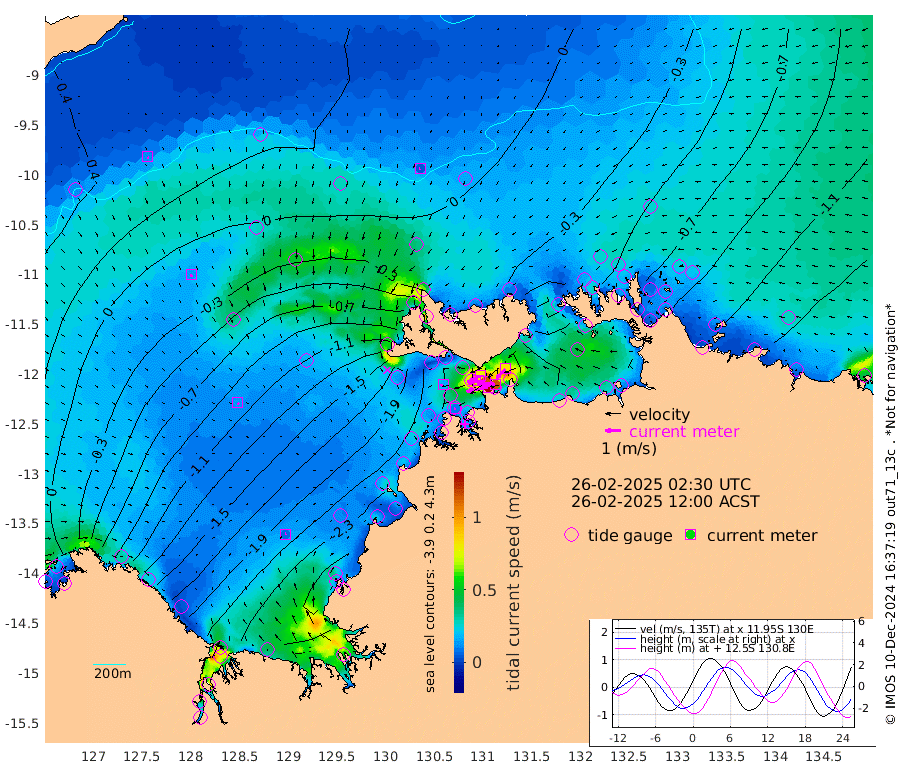 139cm/s -101T +4cm/s rms + 6cm/s 51T. Darwin_C1 52m 116cm/s -91T +4cm/s rms + 7cm/s -161T. Darwin_CW1 22m 71cm/s -106T +4cm/s rms + 8cm/s 61T. Darwin_CW2 34m 82cm/s -137T +3cm/s rms + 9cm/s 98T. Darwin_CW3 22m 114cm/s -90T +5cm/s rms + 7cm/s 88T. Darwin_C3 56m 77cm/s -116T +2cm/s rms + 9cm/s -126T. Darwin_CTbW 22m 5cm/s -121T +9cm/s rms + 2cm/s -110T. NWSLYN 196m 15cm/s -112T +1cm/s rms + 1cm/s -47T. DARBGF 30m 11cm/s 158T +7cm/s rms + 2cm/s -137T. ITFTIS 464m 14cm/s 169T +9cm/s rms + 1cm/s 74T. ITFMHB 146m 6cm/s 61T +4cm/s rms + 1cm/s -134T. ITFJBG 61m 13cm/s 133T +6cm/s rms + 4cm/s 121T. ITFFTB 108m 9cm/s -103T +4cm/s rms + 3cm/s 80T. NRSDAR 19m 8cm Carronade Island 6cm Guy Point 6cm Napier Broome Bay -93cm Lesueur Island -165cm Reveley Island -54cm Rocky Island -244cm Cape Domett -224cm Lacrosse Island -251cm Adolphus Island -207cm Pender Point -196cm Wyndham -45cm The Boxers -62cm Unnamed Shoal 23cm Loxton Shoal -264cm Pelican Island -20cm Calder Shoal 16cm Evans Shoal -292cm Quoin Island -255cm Port Keats -248cm Jones Point -250cm Catfish Island -184cm Cape Scott Offshore -190cm Cape Ford -208cm Anson Bay -8cm Goodrich Bank -171cm Peron Island North -178cm Point Jenny -177cm Native Point -183cm Fish Reef -205cm Tapa Bay -87cm Point Fawcett (Offshore) -216cm Burge Point -171cm Munkunuwa -153cm Beagle A -204cm Parsons Bank -210cm Fenton Patches 0cm Lynedoch Bank -214cm Hancox Shoal Area -224cm Nightcliff -239cm Darwin -222cm Charles Point Patches -186cm Glyde Point -166cm Chambers Bay -153cm Point Stuart -160cm Cape Hotham -149cm Christine Reef -161cm West Alligator Head -158cm East Field Island -133cm Two Hills Bay -106cm Newby Shoal -149cm Camp Point -192cm Medina Inlet South -69cm South Barlow Point -44cm St. Asaph Bay -11cm Cape Van Dieman -17cm Snake Bay -16cm Cache Point 39cm Echo Shoal -32cm Point Jahleel (Off) -81cm Cape Don -42cm Port Essington -38cm Smith Point - West -37cm NW Peacock Island -22cm North Of Jones Shoal -9cm Peacock Island -63cm Point David -42cm D'urville Point -42cm Money Shoal -65cm Copeland Island -80cm Cape Cockburn -59cm One Tree Point -84cm Hogmany Shoal -67cm New Year Island - West -68cm Grant Island -87cm Aurari Bay -104cm Cuthbert Point -86cm North Goulburn Island -123cm Paxie Shoal -131cm Entrance Island -151cm Yabooma Island