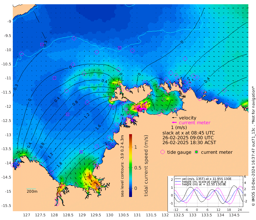 170cm/s 78T +4cm/s rms + 6cm/s 51T. Darwin_C1 52m 137cm/s 93T +4cm/s rms + 7cm/s -161T. Darwin_CW1 22m 103cm/s 72T +4cm/s rms + 8cm/s 61T. Darwin_CW2 34m 101cm/s 46T +3cm/s rms + 9cm/s 98T. Darwin_CW3 22m 155cm/s 89T +5cm/s rms + 7cm/s 88T. Darwin_C3 56m 87cm/s 66T +2cm/s rms + 9cm/s -126T. Darwin_CTbW 22m 6cm/s 9T +9cm/s rms + 2cm/s -110T. NWSLYN 196m 26cm/s 72T +1cm/s rms + 1cm/s -47T. DARBGF 30m 4cm/s -37T +7cm/s rms + 2cm/s -137T. ITFTIS 464m 4cm/s -109T +9cm/s rms + 1cm/s 74T. ITFMHB 146m 12cm/s -147T +4cm/s rms + 1cm/s -134T. ITFJBG 61m 7cm/s -87T +6cm/s rms + 4cm/s 121T. ITFFTB 108m 15cm/s 94T +4cm/s rms + 3cm/s 80T. NRSDAR 19m -6cm Carronade Island -3cm Guy Point -1cm Napier Broome Bay 86cm Lesueur Island 172cm Reveley Island 106cm Rocky Island 260cm Cape Domett 236cm Lacrosse Island 266cm Adolphus Island 214cm Pender Point 194cm Wyndham 47cm The Boxers 40cm Unnamed Shoal -13cm Loxton Shoal 269cm Pelican Island 32cm Calder Shoal -9cm Evans Shoal 305cm Quoin Island 272cm Port Keats 250cm Jones Point 229cm Catfish Island 196cm Cape Scott Offshore 202cm Cape Ford 216cm Anson Bay 4cm Goodrich Bank 182cm Peron Island North 192cm Point Jenny 190cm Native Point 199cm Fish Reef 214cm Tapa Bay 97cm Point Fawcett (Offshore) 234cm Burge Point 196cm Munkunuwa 170cm Beagle A 212cm Parsons Bank 227cm Fenton Patches -5cm Lynedoch Bank 216cm Hancox Shoal Area 240cm Nightcliff 245cm Darwin 224cm Charles Point Patches 179cm Glyde Point 150cm Chambers Bay 131cm Point Stuart 146cm Cape Hotham 140cm Christine Reef 142cm West Alligator Head 134cm East Field Island 116cm Two Hills Bay 123cm Newby Shoal 130cm Camp Point 209cm Medina Inlet South 78cm South Barlow Point 53cm St. Asaph Bay 6cm Cape Van Dieman 9cm Snake Bay 10cm Cache Point -31cm Echo Shoal 24cm Point Jahleel (Off) 67cm Cape Don 21cm Port Essington 21cm Smith Point - West 13cm NW Peacock Island 8cm North Of Jones Shoal 3cm Peacock Island 15cm Point David 16cm D'urville Point 10cm Money Shoal 16cm Copeland Island 26cm Cape Cockburn 20cm One Tree Point 16cm Hogmany Shoal 21cm New Year Island - West 21cm Grant Island 33cm Aurari Bay 42cm Cuthbert Point 33cm North Goulburn Island 55cm Paxie Shoal 58cm Entrance Island 65cm Yabooma Island