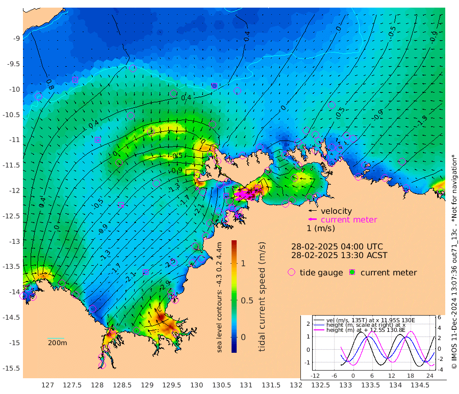 172cm/s -101T +4cm/s rms + 6cm/s 51T. Darwin_C1 52m 144cm/s -91T +4cm/s rms + 7cm/s -161T. Darwin_CW1 22m 99cm/s -106T +4cm/s rms + 8cm/s 61T. Darwin_CW2 34m 101cm/s -136T +3cm/s rms + 9cm/s 98T. Darwin_CW3 22m 168cm/s -90T +5cm/s rms + 7cm/s 88T. Darwin_C3 56m 89cm/s -116T +2cm/s rms + 9cm/s -126T. Darwin_CTbW 22m 5cm/s -148T +9cm/s rms + 2cm/s -110T. NWSLYN 196m 12cm/s -137T +1cm/s rms + 1cm/s -47T. DARBGF 30m 11cm/s 132T +7cm/s rms + 2cm/s -137T. ITFTIS 464m 16cm/s 147T +9cm/s rms + 1cm/s 74T. ITFMHB 146m 14cm/s 82T +4cm/s rms + 1cm/s -134T. ITFJBG 61m 25cm/s 119T +6cm/s rms + 4cm/s 121T. ITFFTB 108m 11cm/s -160T +4cm/s rms + 3cm/s 80T. NRSDAR 19m 55cm Carronade Island 50cm Guy Point 54cm Napier Broome Bay -72cm Lesueur Island -202cm Reveley Island -75cm Rocky Island -313cm Cape Domett -275cm Lacrosse Island -329cm Adolphus Island -275cm Pender Point -254cm Wyndham -17cm The Boxers -32cm Unnamed Shoal 61cm Loxton Shoal -338cm Pelican Island 9cm Calder Shoal 46cm Evans Shoal -392cm Quoin Island -319cm Port Keats -309cm Jones Point -293cm Catfish Island -215cm Cape Scott Offshore -222cm Cape Ford -245cm Anson Bay 19cm Goodrich Bank -202cm Peron Island North -205cm Point Jenny -204cm Native Point -213cm Fish Reef -241cm Tapa Bay -81cm Point Fawcett (Offshore) -263cm Burge Point -214cm Munkunuwa -164cm Beagle A -258cm Parsons Bank -247cm Fenton Patches 27cm Lynedoch Bank -264cm Hancox Shoal Area -271cm Nightcliff -295cm Darwin -264cm Charles Point Patches -225cm Glyde Point -204cm Chambers Bay -191cm Point Stuart -194cm Cape Hotham -185cm Christine Reef -204cm West Alligator Head -198cm East Field Island -162cm Two Hills Bay -97cm Newby Shoal -176cm Camp Point -232cm Medina Inlet South -64cm South Barlow Point -27cm St. Asaph Bay 16cm Cape Van Dieman 8cm Snake Bay 11cm Cache Point 87cm Echo Shoal -15cm Point Jahleel (Off) -86cm Cape Don -31cm Port Essington -26cm Smith Point - West -25cm NW Peacock Island -2cm North Of Jones Shoal -3cm Peacock Island -61cm Point David -32cm D'urville Point -29cm Money Shoal -65cm Copeland Island -81cm Cape Cockburn -56cm One Tree Point -85cm Hogmany Shoal -60cm New Year Island - West -68cm Grant Island -91cm Aurari Bay -121cm Cuthbert Point -94cm North Goulburn Island -145cm Paxie Shoal -164cm Entrance Island -197cm Yabooma Island
