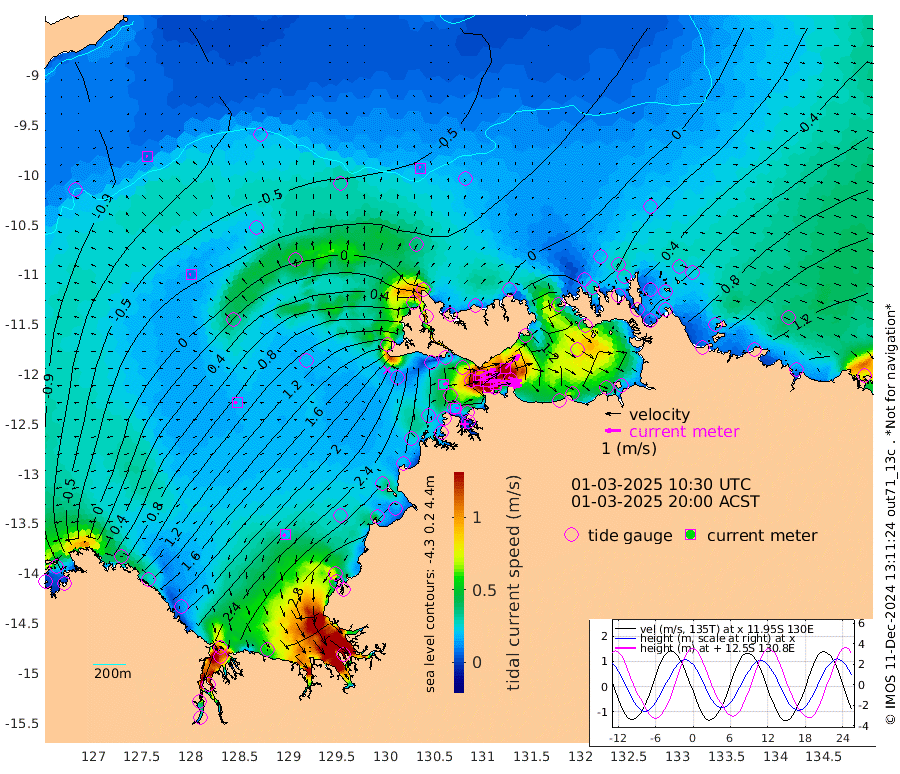 219cm/s 78T +4cm/s rms + 6cm/s 51T. Darwin_C1 52m 171cm/s 93T +4cm/s rms + 7cm/s -161T. Darwin_CW1 22m 140cm/s 72T +4cm/s rms + 8cm/s 61T. Darwin_CW2 34m 130cm/s 45T +3cm/s rms + 9cm/s 98T. Darwin_CW3 22m 221cm/s 89T +5cm/s rms + 7cm/s 88T. Darwin_C3 56m 106cm/s 66T +2cm/s rms + 9cm/s -126T. Darwin_CTbW 22m 11cm/s -12T +9cm/s rms + 2cm/s -110T. NWSLYN 196m 27cm/s 68T +1cm/s rms + 1cm/s -47T. DARBGF 30m 7cm/s -79T +7cm/s rms + 2cm/s -137T. ITFTIS 464m 10cm/s -80T +9cm/s rms + 1cm/s 74T. ITFMHB 146m 19cm/s -134T +4cm/s rms + 1cm/s -134T. ITFJBG 61m 19cm/s -84T +6cm/s rms + 4cm/s 121T. ITFFTB 108m 18cm/s 81T +4cm/s rms + 3cm/s 80T. NRSDAR 19m -87cm Carronade Island -88cm Guy Point -83cm Napier Broome Bay 55cm Lesueur Island 206cm Reveley Island 123cm Rocky Island 318cm Cape Domett 281cm Lacrosse Island 322cm Adolphus Island 243cm Pender Point 207cm Wyndham 15cm The Boxers 38cm Unnamed Shoal -67cm Loxton Shoal 338cm Pelican Island -2cm Calder Shoal -49cm Evans Shoal 374cm Quoin Island 339cm Port Keats 324cm Jones Point 228cm Catfish Island 232cm Cape Scott Offshore 246cm Cape Ford 263cm Anson Bay -23cm Goodrich Bank 227cm Peron Island North 228cm Point Jenny 228cm Native Point 244cm Fish Reef 264cm Tapa Bay 94cm Point Fawcett (Offshore) 296cm Burge Point 257cm Munkunuwa 194cm Beagle A 288cm Parsons Bank 280cm Fenton Patches -34cm Lynedoch Bank 281cm Hancox Shoal Area 301cm Nightcliff 319cm Darwin 277cm Charles Point Patches 229cm Glyde Point 182cm Chambers Bay 171cm Point Stuart 192cm Cape Hotham 168cm Christine Reef 184cm West Alligator Head 167cm East Field Island 151cm Two Hills Bay 118cm Newby Shoal 156cm Camp Point 262cm Medina Inlet South 81cm South Barlow Point 37cm St. Asaph Bay -19cm Cape Van Dieman -7cm Snake Bay -16cm Cache Point -101cm Echo Shoal 12cm Point Jahleel (Off) 77cm Cape Don 17cm Port Essington 17cm Smith Point - West 11cm NW Peacock Island -10cm North Of Jones Shoal -2cm Peacock Island 36cm Point David 19cm D'urville Point 3cm Money Shoal 38cm Copeland Island 52cm Cape Cockburn 33cm One Tree Point 40cm Hogmany Shoal 35cm New Year Island - West 42cm Grant Island 63cm Aurari Bay 81cm Cuthbert Point 64cm North Goulburn Island 95cm Paxie Shoal 116cm Entrance Island 132cm Yabooma Island