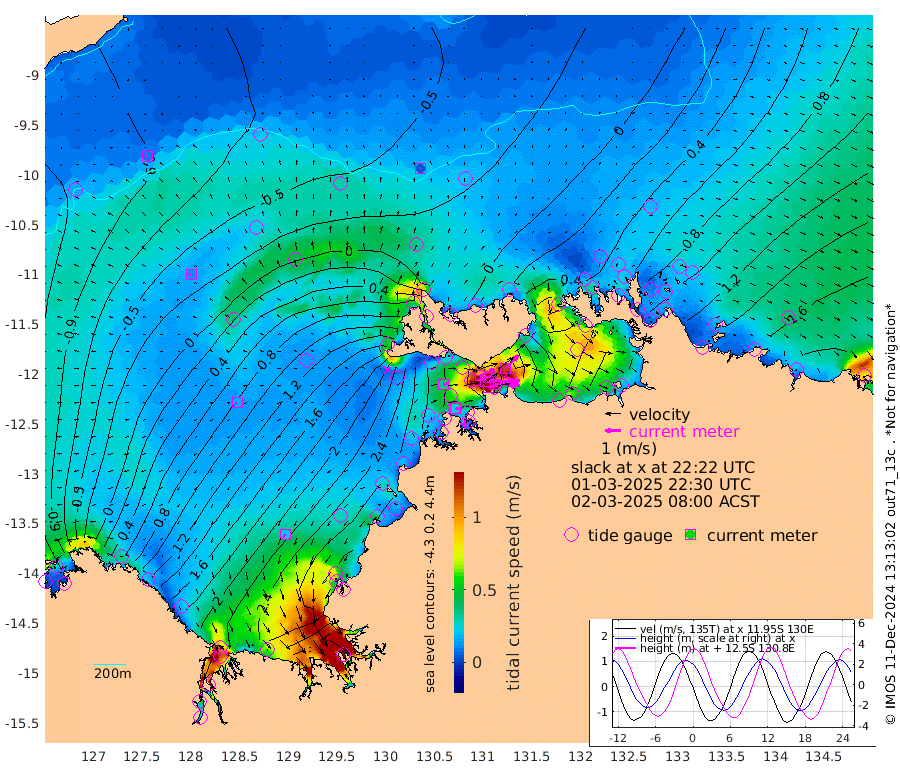 206cm/s 78T +4cm/s rms + 6cm/s 51T. Darwin_C1 52m 157cm/s 92T +4cm/s rms + 7cm/s -161T. Darwin_CW1 22m 129cm/s 73T +4cm/s rms + 8cm/s 61T. Darwin_CW2 34m 119cm/s 44T +3cm/s rms + 9cm/s 98T. Darwin_CW3 22m 200cm/s 89T +5cm/s rms + 7cm/s 88T. Darwin_C3 56m 98cm/s 65T +2cm/s rms + 9cm/s -126T. Darwin_CTbW 22m 4cm/s 28T +9cm/s rms + 2cm/s -110T. NWSLYN 196m 32cm/s 76T +1cm/s rms + 1cm/s -47T. DARBGF 30m 10cm/s -79T +7cm/s rms + 2cm/s -137T. ITFTIS 464m 11cm/s -85T +9cm/s rms + 1cm/s 74T. ITFMHB 146m 22cm/s -149T +4cm/s rms + 1cm/s -134T. ITFJBG 61m 15cm/s -96T +6cm/s rms + 4cm/s 121T. ITFFTB 108m 23cm/s 95T +4cm/s rms + 3cm/s 80T. NRSDAR 19m -119cm Carronade Island -115cm Guy Point -131cm Napier Broome Bay 28cm Lesueur Island 180cm Reveley Island 42cm Rocky Island 273cm Cape Domett 241cm Lacrosse Island 273cm Adolphus Island 170cm Pender Point 134cm Wyndham 2cm The Boxers 29cm Unnamed Shoal -81cm Loxton Shoal 319cm Pelican Island -16cm Calder Shoal -48cm Evans Shoal 318cm Quoin Island 317cm Port Keats 309cm Jones Point 204cm Catfish Island 228cm Cape Scott Offshore 274cm Cape Ford 264cm Anson Bay -15cm Goodrich Bank 230cm Peron Island North 230cm Point Jenny 228cm Native Point 242cm Fish Reef 268cm Tapa Bay 102cm Point Fawcett (Offshore) 285cm Burge Point 249cm Munkunuwa 188cm Beagle A 290cm Parsons Bank 270cm Fenton Patches -32cm Lynedoch Bank 289cm Hancox Shoal Area 294cm Nightcliff 316cm Darwin 285cm Charles Point Patches 224cm Glyde Point 174cm Chambers Bay 161cm Point Stuart 190cm Cape Hotham 160cm Christine Reef 169cm West Alligator Head 145cm East Field Island 148cm Two Hills Bay 96cm Newby Shoal 151cm Camp Point 257cm Medina Inlet South 84cm South Barlow Point 42cm St. Asaph Bay -8cm Cape Van Dieman -1cm Snake Bay -3cm Cache Point -114cm Echo Shoal 23cm Point Jahleel (Off) 89cm Cape Don 42cm Port Essington 43cm Smith Point - West 40cm NW Peacock Island 11cm North Of Jones Shoal 7cm Peacock Island 78cm Point David 51cm D'urville Point 35cm Money Shoal 84cm Copeland Island 103cm Cape Cockburn 69cm One Tree Point 106cm Hogmany Shoal 70cm New Year Island - West 82cm Grant Island 106cm Aurari Bay 134cm Cuthbert Point 109cm North Goulburn Island 145cm Paxie Shoal 172cm Entrance Island 204cm Yabooma Island