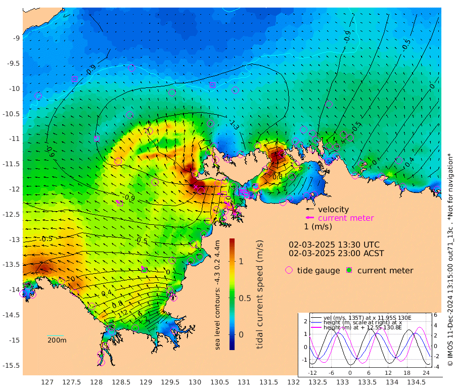 25cm/s -104T +4cm/s rms + 6cm/s 51T. Darwin_C1 52m 5cm/s -71T +4cm/s rms + 7cm/s -161T. Darwin_CW1 22m 12cm/s -104T +4cm/s rms + 8cm/s 61T. Darwin_CW2 34m 24cm/s 35T +3cm/s rms + 9cm/s 98T. Darwin_CW3 22m 20cm/s 100T +5cm/s rms + 7cm/s 88T. Darwin_C3 56m 22cm/s -119T +2cm/s rms + 9cm/s -126T. Darwin_CTbW 22m 14cm/s -30T +9cm/s rms + 2cm/s -110T. NWSLYN 196m 84cm/s -85T +1cm/s rms + 1cm/s -47T. DARBGF 30m 12cm/s -104T +7cm/s rms + 2cm/s -137T. ITFTIS 464m 25cm/s -36T +9cm/s rms + 1cm/s 74T. ITFMHB 146m 58cm/s -36T +4cm/s rms + 1cm/s -134T. ITFJBG 61m 64cm/s -54T +6cm/s rms + 4cm/s 121T. ITFFTB 108m 95cm/s -54T +4cm/s rms + 3cm/s 80T. NRSDAR 19m 34cm Carronade Island 40cm Guy Point 45cm Napier Broome Bay 38cm Lesueur Island 91cm Reveley Island 67cm Rocky Island 180cm Cape Domett 148cm Lacrosse Island 256cm Adolphus Island 345cm Pender Point 384cm Wyndham -87cm The Boxers -101cm Unnamed Shoal -89cm Loxton Shoal 153cm Pelican Island -108cm Calder Shoal -102cm Evans Shoal 354cm Quoin Island 63cm Port Keats 63cm Jones Point 343cm Catfish Island -33cm Cape Scott Offshore -172cm Cape Ford -44cm Anson Bay -114cm Goodrich Bank -63cm Peron Island North -82cm Point Jenny -84cm Native Point -77cm Fish Reef -66cm Tapa Bay -131cm Point Fawcett (Offshore) -46cm Burge Point -79cm Munkunuwa -102cm Beagle A -38cm Parsons Bank -53cm Fenton Patches -91cm Lynedoch Bank -16cm Hancox Shoal Area -27cm Nightcliff -16cm Darwin -53cm Charles Point Patches 51cm Glyde Point 151cm Chambers Bay 174cm Point Stuart 76cm Cape Hotham 134cm Christine Reef 205cm West Alligator Head 251cm East Field Island 101cm Two Hills Bay -94cm Newby Shoal 98cm Camp Point -65cm Medina Inlet South -131cm South Barlow Point -134cm St. Asaph Bay -123cm Cape Van Dieman -118cm Snake Bay -114cm Cache Point -78cm Echo Shoal -86cm Point Jahleel (Off) -32cm Cape Don -83cm Port Essington -89cm Smith Point - West -81cm NW Peacock Island -91cm North Of Jones Shoal -31cm Peacock Island -48cm Point David -85cm D'urville Point -69cm Money Shoal -42cm Copeland Island -54cm Cape Cockburn -50cm One Tree Point -42cm Hogmany Shoal -44cm New Year Island - West -40cm Grant Island -12cm Aurari Bay 18cm Cuthbert Point -17cm North Goulburn Island 49cm Paxie Shoal 73cm Entrance Island 122cm Yabooma Island