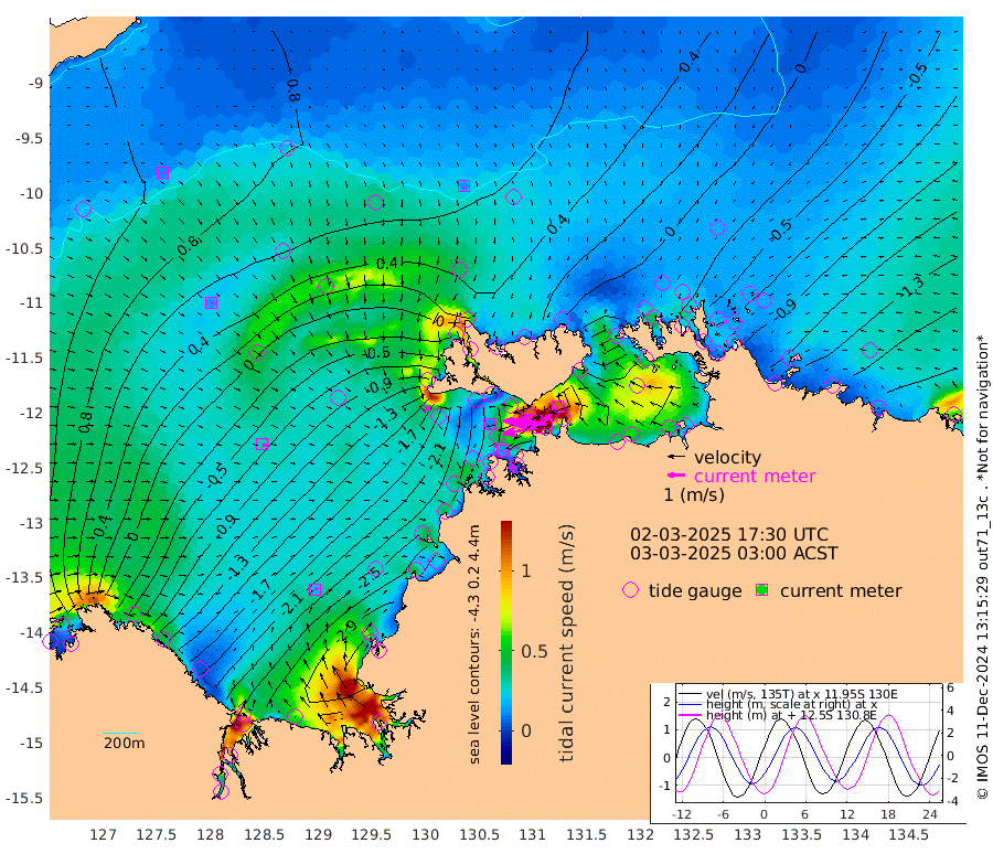 208cm/s -101T +4cm/s rms + 6cm/s 51T. Darwin_C1 52m 170cm/s -91T +4cm/s rms + 7cm/s -161T. Darwin_CW1 22m 111cm/s -106T +4cm/s rms + 8cm/s 61T. Darwin_CW2 34m 112cm/s -137T +3cm/s rms + 9cm/s 98T. Darwin_CW3 22m 187cm/s -91T +5cm/s rms + 7cm/s 88T. Darwin_C3 56m 113cm/s -115T +2cm/s rms + 9cm/s -126T. Darwin_CTbW 22m 14cm/s 168T +9cm/s rms + 2cm/s -110T. NWSLYN 196m 12cm/s -138T +1cm/s rms + 1cm/s -47T. DARBGF 30m 12cm/s 86T +7cm/s rms + 2cm/s -137T. ITFTIS 464m 14cm/s 110T +9cm/s rms + 1cm/s 74T. ITFMHB 146m 19cm/s 69T +4cm/s rms + 1cm/s -134T. ITFJBG 61m 29cm/s 106T +6cm/s rms + 4cm/s 121T. ITFFTB 108m 13cm/s -164T +4cm/s rms + 3cm/s 80T. NRSDAR 19m 85cm Carronade Island 84cm Guy Point 93cm Napier Broome Bay -66cm Lesueur Island -210cm Reveley Island -95cm Rocky Island -327cm Cape Domett -291cm Lacrosse Island -356cm Adolphus Island -271cm Pender Point -252cm Wyndham 7cm The Boxers -19cm Unnamed Shoal 87cm Loxton Shoal -356cm Pelican Island 27cm Calder Shoal 63cm Evans Shoal -417cm Quoin Island -331cm Port Keats -322cm Jones Point -297cm Catfish Island -214cm Cape Scott Offshore -221cm Cape Ford -241cm Anson Bay 36cm Goodrich Bank -214cm Peron Island North -203cm Point Jenny -201cm Native Point -222cm Fish Reef -242cm Tapa Bay -69cm Point Fawcett (Offshore) -270cm Burge Point -222cm Munkunuwa -170cm Beagle A -272cm Parsons Bank -261cm Fenton Patches 45cm Lynedoch Bank -275cm Hancox Shoal Area -283cm Nightcliff -304cm Darwin -260cm Charles Point Patches -238cm Glyde Point -214cm Chambers Bay -213cm Point Stuart -214cm Cape Hotham -197cm Christine Reef -231cm West Alligator Head -224cm East Field Island -181cm Two Hills Bay -93cm Newby Shoal -177cm Camp Point -235cm Medina Inlet South -55cm South Barlow Point -13cm St. Asaph Bay 33cm Cape Van Dieman 21cm Snake Bay 25cm Cache Point 114cm Echo Shoal -9cm Point Jahleel (Off) -81cm Cape Don -20cm Port Essington -23cm Smith Point - West -21cm NW Peacock Island 10cm North Of Jones Shoal 0cm Peacock Island -59cm Point David -30cm D'urville Point -12cm Money Shoal -65cm Copeland Island -84cm Cape Cockburn -51cm One Tree Point -81cm Hogmany Shoal -57cm New Year Island - West -67cm Grant Island -98cm Aurari Bay -125cm Cuthbert Point -95cm North Goulburn Island -133cm Paxie Shoal -169cm Entrance Island -203cm Yabooma Island