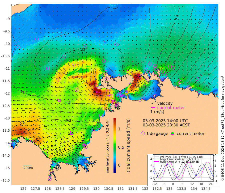 22cm/s -105T +4cm/s rms + 6cm/s 51T. Darwin_C1 52m 5cm/s -68T +4cm/s rms + 7cm/s -161T. Darwin_CW1 22m 15cm/s -101T +4cm/s rms + 8cm/s 61T. Darwin_CW2 34m 24cm/s 36T +3cm/s rms + 9cm/s 98T. Darwin_CW3 22m 14cm/s 105T +5cm/s rms + 7cm/s 88T. Darwin_C3 56m 19cm/s -118T +2cm/s rms + 9cm/s -126T. Darwin_CTbW 22m 15cm/s -33T +9cm/s rms + 2cm/s -110T. NWSLYN 196m 86cm/s -85T +1cm/s rms + 1cm/s -47T. DARBGF 30m 13cm/s -107T +7cm/s rms + 2cm/s -137T. ITFTIS 464m 26cm/s -37T +9cm/s rms + 1cm/s 74T. ITFMHB 146m 56cm/s -36T +4cm/s rms + 1cm/s -134T. ITFJBG 61m 64cm/s -55T +6cm/s rms + 4cm/s 121T. ITFFTB 108m 97cm/s -54T +4cm/s rms + 3cm/s 80T. NRSDAR 19m 21cm Carronade Island 25cm Guy Point 31cm Napier Broome Bay 26cm Lesueur Island 80cm Reveley Island 58cm Rocky Island 164cm Cape Domett 135cm Lacrosse Island 239cm Adolphus Island 326cm Pender Point 365cm Wyndham -99cm The Boxers -104cm Unnamed Shoal -106cm Loxton Shoal 142cm Pelican Island -122cm Calder Shoal -114cm Evans Shoal 332cm Quoin Island 51cm Port Keats 56cm Jones Point 332cm Catfish Island -44cm Cape Scott Offshore -182cm Cape Ford -55cm Anson Bay -124cm Goodrich Bank -72cm Peron Island North -89cm Point Jenny -91cm Native Point -85cm Fish Reef -74cm Tapa Bay -142cm Point Fawcett (Offshore) -54cm Burge Point -88cm Munkunuwa -109cm Beagle A -43cm Parsons Bank -59cm Fenton Patches -101cm Lynedoch Bank -22cm Hancox Shoal Area -36cm Nightcliff -26cm Darwin -65cm Charles Point Patches 47cm Glyde Point 148cm Chambers Bay 176cm Point Stuart 74cm Cape Hotham 132cm Christine Reef 207cm West Alligator Head 253cm East Field Island 101cm Two Hills Bay -105cm Newby Shoal 94cm Camp Point -76cm Medina Inlet South -141cm South Barlow Point -145cm St. Asaph Bay -132cm Cape Van Dieman -127cm Snake Bay -122cm Cache Point -94cm Echo Shoal -92cm Point Jahleel (Off) -36cm Cape Don -88cm Port Essington -93cm Smith Point - West -84cm NW Peacock Island -99cm North Of Jones Shoal -33cm Peacock Island -45cm Point David -86cm D'urville Point -73cm Money Shoal -38cm Copeland Island -51cm Cape Cockburn -50cm One Tree Point -38cm Hogmany Shoal -43cm New Year Island - West -38cm Grant Island -6cm Aurari Bay 26cm Cuthbert Point -13cm North Goulburn Island 54cm Paxie Shoal 84cm Entrance Island 136cm Yabooma Island