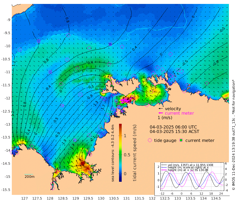 178cm/s -101T +4cm/s rms + 6cm/s 51T. Darwin_C1 52m 132cm/s -90T +4cm/s rms + 7cm/s -161T. Darwin_CW1 22m 114cm/s -107T +4cm/s rms + 8cm/s 61T. Darwin_CW2 34m 85cm/s -133T +3cm/s rms + 9cm/s 98T. Darwin_CW3 22m 177cm/s -91T +5cm/s rms + 7cm/s 88T. Darwin_C3 56m 98cm/s -115T +2cm/s rms + 9cm/s -126T. Darwin_CTbW 22m 5cm/s 156T +9cm/s rms + 2cm/s -110T. NWSLYN 196m 23cm/s -108T +1cm/s rms + 1cm/s -47T. DARBGF 30m 9cm/s 78T +7cm/s rms + 2cm/s -137T. ITFTIS 464m 12cm/s 85T +9cm/s rms + 1cm/s 74T. ITFMHB 146m 18cm/s 37T +4cm/s rms + 1cm/s -134T. ITFJBG 61m 20cm/s 84T +6cm/s rms + 4cm/s 121T. ITFFTB 108m 18cm/s -101T +4cm/s rms + 3cm/s 80T. NRSDAR 19m 134cm Carronade Island 133cm Guy Point 133cm Napier Broome Bay 20cm Lesueur Island -138cm Reveley Island -69cm Rocky Island -221cm Cape Domett -185cm Lacrosse Island -218cm Adolphus Island -157cm Pender Point -119cm Wyndham 31cm The Boxers 3cm Unnamed Shoal 94cm Loxton Shoal -251cm Pelican Island 44cm Calder Shoal 67cm Evans Shoal -273cm Quoin Island -241cm Port Keats -241cm Jones Point -169cm Catfish Island -164cm Cape Scott Offshore -166cm Cape Ford -192cm Anson Bay 45cm Goodrich Bank -165cm Peron Island North -158cm Point Jenny -157cm Native Point -172cm Fish Reef -191cm Tapa Bay -50cm Point Fawcett (Offshore) -211cm Burge Point -195cm Munkunuwa -115cm Beagle A -224cm Parsons Bank -189cm Fenton Patches 54cm Lynedoch Bank -213cm Hancox Shoal Area -215cm Nightcliff -239cm Darwin -201cm Charles Point Patches -166cm Glyde Point -130cm Chambers Bay -128cm Point Stuart -141cm Cape Hotham -116cm Christine Reef -139cm West Alligator Head -117cm East Field Island -113cm Two Hills Bay -38cm Newby Shoal -104cm Camp Point -191cm Medina Inlet South -41cm South Barlow Point 0cm St. Asaph Bay 39cm Cape Van Dieman 29cm Snake Bay 38cm Cache Point 127cm Echo Shoal 11cm Point Jahleel (Off) -51cm Cape Don -5cm Port Essington -3cm Smith Point - West 0cm NW Peacock Island 24cm North Of Jones Shoal 5cm Peacock Island -36cm Point David -9cm D'urville Point 7cm Money Shoal -39cm Copeland Island -49cm Cape Cockburn -30cm One Tree Point -47cm Hogmany Shoal -26cm New Year Island - West -38cm Grant Island -58cm Aurari Bay -83cm Cuthbert Point -62cm North Goulburn Island -96cm Paxie Shoal -120cm Entrance Island -144cm Yabooma Island