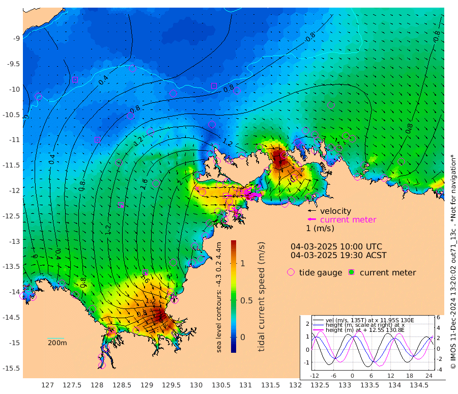 164cm/s 78T +4cm/s rms + 6cm/s 51T. Darwin_C1 52m 115cm/s 87T +4cm/s rms + 7cm/s -161T. Darwin_CW1 22m 96cm/s 74T +4cm/s rms + 8cm/s 61T. Darwin_CW2 34m 54cm/s 54T +3cm/s rms + 9cm/s 98T. Darwin_CW3 22m 120cm/s 88T +5cm/s rms + 7cm/s 88T. Darwin_C3 56m 101cm/s 63T +2cm/s rms + 9cm/s -126T. Darwin_CTbW 22m 4cm/s 82T +9cm/s rms + 2cm/s -110T. NWSLYN 196m 80cm/s 90T +1cm/s rms + 1cm/s -47T. DARBGF 30m 7cm/s 32T +7cm/s rms + 2cm/s -137T. ITFTIS 464m 9cm/s 145T +9cm/s rms + 1cm/s 74T. ITFMHB 146m 48cm/s 158T +4cm/s rms + 1cm/s -134T. ITFJBG 61m 36cm/s 133T +6cm/s rms + 4cm/s 121T. ITFFTB 108m 78cm/s 118T +4cm/s rms + 3cm/s 80T. NRSDAR 19m -99cm Carronade Island -110cm Guy Point -102cm Napier Broome Bay 8cm Lesueur Island 63cm Reveley Island 45cm Rocky Island 72cm Cape Domett 67cm Lacrosse Island 19cm Adolphus Island -109cm Pender Point -166cm Wyndham 87cm The Boxers 127cm Unnamed Shoal 36cm Loxton Shoal 104cm Pelican Island 91cm Calder Shoal 56cm Evans Shoal -23cm Quoin Island 175cm Port Keats 173cm Jones Point -126cm Catfish Island 178cm Cape Scott Offshore 300cm Cape Ford 209cm Anson Bay 88cm Goodrich Bank 208cm Peron Island North 209cm Point Jenny 213cm Native Point 226cm Fish Reef 226cm Tapa Bay 168cm Point Fawcett (Offshore) 234cm Burge Point 235cm Munkunuwa 207cm Beagle A 229cm Parsons Bank 228cm Fenton Patches 64cm Lynedoch Bank 200cm Hancox Shoal Area 217cm Nightcliff 236cm Darwin 235cm Charles Point Patches 119cm Glyde Point -2cm Chambers Bay -22cm Point Stuart 73cm Cape Hotham -2cm Christine Reef -40cm West Alligator Head -89cm East Field Island 27cm Two Hills Bay 158cm Newby Shoal 29cm Camp Point 232cm Medina Inlet South 169cm South Barlow Point 136cm St. Asaph Bay 97cm Cape Van Dieman 108cm Snake Bay 90cm Cache Point -2cm Echo Shoal 88cm Point Jahleel (Off) 87cm Cape Don 94cm Port Essington 96cm Smith Point - West 89cm NW Peacock Island 79cm North Of Jones Shoal 29cm Peacock Island 84cm Point David 98cm D'urville Point 74cm Money Shoal 79cm Copeland Island 106cm Cape Cockburn 83cm One Tree Point 83cm Hogmany Shoal 82cm New Year Island - West 84cm Grant Island 74cm Aurari Bay 61cm Cuthbert Point 78cm North Goulburn Island 41cm Paxie Shoal 39cm Entrance Island 5cm Yabooma Island