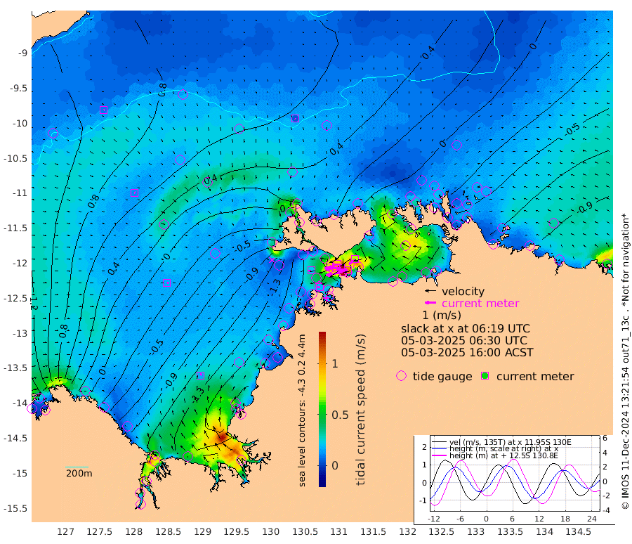 154cm/s -101T +4cm/s rms + 6cm/s 51T. Darwin_C1 52m 102cm/s -90T +4cm/s rms + 7cm/s -161T. Darwin_CW1 22m 97cm/s -107T +4cm/s rms + 8cm/s 61T. Darwin_CW2 34m 69cm/s -132T +3cm/s rms + 9cm/s 98T. Darwin_CW3 22m 145cm/s -91T +5cm/s rms + 7cm/s 88T. Darwin_C3 56m 87cm/s -115T +2cm/s rms + 9cm/s -126T. Darwin_CTbW 22m 5cm/s 140T +9cm/s rms + 2cm/s -110T. NWSLYN 196m 22cm/s -104T +1cm/s rms + 1cm/s -47T. DARBGF 30m 9cm/s 63T +7cm/s rms + 2cm/s -137T. ITFTIS 464m 12cm/s 71T +9cm/s rms + 1cm/s 74T. ITFMHB 146m 17cm/s 28T +4cm/s rms + 1cm/s -134T. ITFJBG 61m 17cm/s 72T +6cm/s rms + 4cm/s 121T. ITFFTB 108m 18cm/s -94T +4cm/s rms + 3cm/s 80T. NRSDAR 19m 141cm Carronade Island 142cm Guy Point 142cm Napier Broome Bay 45cm Lesueur Island -95cm Reveley Island -53cm Rocky Island -156cm Cape Domett -127cm Lacrosse Island -151cm Adolphus Island -95cm Pender Point -59cm Wyndham 42cm The Boxers 12cm Unnamed Shoal 93cm Loxton Shoal -186cm Pelican Island 52cm Calder Shoal 66cm Evans Shoal -196cm Quoin Island -177cm Port Keats -183cm Jones Point -117cm Catfish Island -121cm Cape Scott Offshore -114cm Cape Ford -145cm Anson Bay 47cm Goodrich Bank -126cm Peron Island North -115cm Point Jenny -115cm Native Point -131cm Fish Reef -143cm Tapa Bay -30cm Point Fawcett (Offshore) -158cm Burge Point -154cm Munkunuwa -79cm Beagle A -176cm Parsons Bank -139cm Fenton Patches 54cm Lynedoch Bank -163cm Hancox Shoal Area -162cm Nightcliff -183cm Darwin -150cm Charles Point Patches -123cm Glyde Point -89cm Chambers Bay -92cm Point Stuart -104cm Cape Hotham -77cm Christine Reef -100cm West Alligator Head -78cm East Field Island -82cm Two Hills Bay -11cm Newby Shoal -68cm Camp Point -146cm Medina Inlet South -25cm South Barlow Point 10cm St. Asaph Bay 41cm Cape Van Dieman 32cm Snake Bay 42cm Cache Point 122cm Echo Shoal 18cm Point Jahleel (Off) -33cm Cape Don 3cm Port Essington 3cm Smith Point - West 5cm NW Peacock Island 27cm North Of Jones Shoal 7cm Peacock Island -27cm Point David -3cm D'urville Point 14cm Money Shoal -30cm Copeland Island -36cm Cape Cockburn -20cm One Tree Point -34cm Hogmany Shoal -16cm New Year Island - West -27cm Grant Island -46cm Aurari Bay -66cm Cuthbert Point -48cm North Goulburn Island -73cm Paxie Shoal -95cm Entrance Island -115cm Yabooma Island