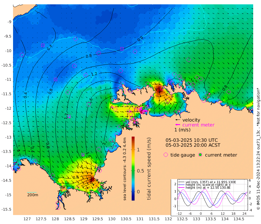 134cm/s 78T +4cm/s rms + 6cm/s 51T. Darwin_C1 52m 89cm/s 86T +4cm/s rms + 7cm/s -161T. Darwin_CW1 22m 80cm/s 75T +4cm/s rms + 8cm/s 61T. Darwin_CW2 34m 41cm/s 55T +3cm/s rms + 9cm/s 98T. Darwin_CW3 22m 100cm/s 88T +5cm/s rms + 7cm/s 88T. Darwin_C3 56m 84cm/s 63T +2cm/s rms + 9cm/s -126T. Darwin_CTbW 22m 4cm/s 96T +9cm/s rms + 2cm/s -110T. NWSLYN 196m 69cm/s 90T +1cm/s rms + 1cm/s -47T. DARBGF 30m 8cm/s 27T +7cm/s rms + 2cm/s -137T. ITFTIS 464m 6cm/s 122T +9cm/s rms + 1cm/s 74T. ITFMHB 146m 39cm/s 157T +4cm/s rms + 1cm/s -134T. ITFJBG 61m 29cm/s 130T +6cm/s rms + 4cm/s 121T. ITFFTB 108m 66cm/s 118T +4cm/s rms + 3cm/s 80T. NRSDAR 19m -80cm Carronade Island -89cm Guy Point -82cm Napier Broome Bay 14cm Lesueur Island 54cm Reveley Island 35cm Rocky Island 61cm Cape Domett 56cm Lacrosse Island 20cm Adolphus Island -93cm Pender Point -140cm Wyndham 86cm The Boxers 119cm Unnamed Shoal 45cm Loxton Shoal 89cm Pelican Island 90cm Calder Shoal 61cm Evans Shoal -15cm Quoin Island 150cm Port Keats 147cm Jones Point -106cm Catfish Island 155cm Cape Scott Offshore 260cm Cape Ford 182cm Anson Bay 89cm Goodrich Bank 184cm Peron Island North 180cm Point Jenny 183cm Native Point 195cm Fish Reef 194cm Tapa Bay 153cm Point Fawcett (Offshore) 200cm Burge Point 200cm Munkunuwa 179cm Beagle A 199cm Parsons Bank 193cm Fenton Patches 70cm Lynedoch Bank 174cm Hancox Shoal Area 185cm Nightcliff 207cm Darwin 209cm Charles Point Patches 104cm Glyde Point -3cm Chambers Bay -21cm Point Stuart 64cm Cape Hotham -4cm Christine Reef -38cm West Alligator Head -80cm East Field Island 25cm Two Hills Bay 143cm Newby Shoal 28cm Camp Point 202cm Medina Inlet South 155cm South Barlow Point 127cm St. Asaph Bay 97cm Cape Van Dieman 108cm Snake Bay 90cm Cache Point 12cm Echo Shoal 87cm Point Jahleel (Off) 85cm Cape Don 96cm Port Essington 97cm Smith Point - West 92cm NW Peacock Island 84cm North Of Jones Shoal 31cm Peacock Island 88cm Point David 99cm D'urville Point 80cm Money Shoal 83cm Copeland Island 111cm Cape Cockburn 88cm One Tree Point 91cm Hogmany Shoal 86cm New Year Island - West 88cm Grant Island 78cm Aurari Bay 67cm Cuthbert Point 82cm North Goulburn Island 48cm Paxie Shoal 45cm Entrance Island 15cm Yabooma Island