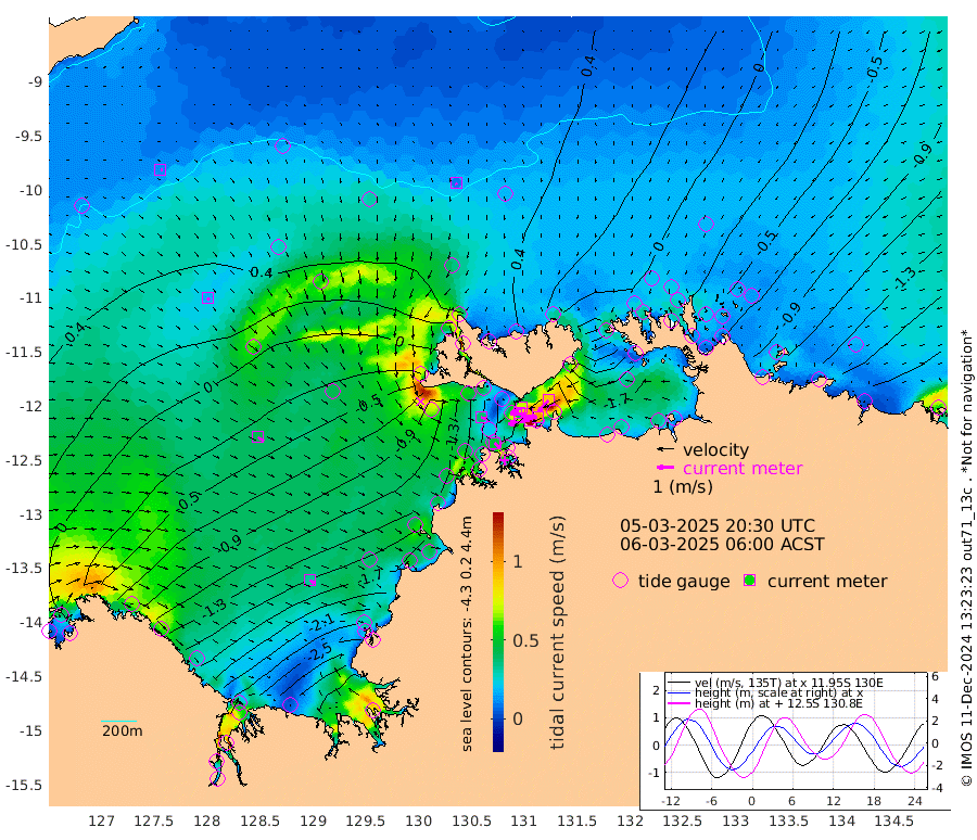 128cm/s -101T +4cm/s rms + 6cm/s 51T. Darwin_C1 52m 98cm/s -92T +4cm/s rms + 7cm/s -161T. Darwin_CW1 22m 42cm/s -104T +4cm/s rms + 8cm/s 61T. Darwin_CW2 34m 89cm/s -138T +3cm/s rms + 9cm/s 98T. Darwin_CW3 22m 97cm/s -89T +5cm/s rms + 7cm/s 88T. Darwin_C3 56m 71cm/s -116T +2cm/s rms + 9cm/s -126T. Darwin_CTbW 22m 10cm/s 175T +9cm/s rms + 2cm/s -110T. NWSLYN 196m 36cm/s 103T +1cm/s rms + 1cm/s -47T. DARBGF 30m 11cm/s 96T +7cm/s rms + 2cm/s -137T. ITFTIS 464m 17cm/s 138T +9cm/s rms + 1cm/s 74T. ITFMHB 146m 32cm/s 129T +4cm/s rms + 1cm/s -134T. ITFJBG 61m 41cm/s 123T +6cm/s rms + 4cm/s 121T. ITFFTB 108m 48cm/s 132T +4cm/s rms + 3cm/s 80T. NRSDAR 19m -49cm Carronade Island -51cm Guy Point -52cm Napier Broome Bay -116cm Lesueur Island -179cm Reveley Island -91cm Rocky Island -278cm Cape Domett -250cm Lacrosse Island -330cm Adolphus Island -330cm Pender Point -355cm Wyndham -4cm The Boxers -7cm Unnamed Shoal 48cm Loxton Shoal -277cm Pelican Island 24cm Calder Shoal 41cm Evans Shoal -398cm Quoin Island -219cm Port Keats -214cm Jones Point -404cm Catfish Island -121cm Cape Scott Offshore -76cm Cape Ford -125cm Anson Bay 35cm Goodrich Bank -113cm Peron Island North -100cm Point Jenny -95cm Native Point -110cm Fish Reef -119cm Tapa Bay -15cm Point Fawcett (Offshore) -142cm Burge Point -85cm Munkunuwa -76cm Beagle A -143cm Parsons Bank -136cm Fenton Patches 31cm Lynedoch Bank -157cm Hancox Shoal Area -152cm Nightcliff -169cm Darwin -137cm Charles Point Patches -181cm Glyde Point -222cm Chambers Bay -239cm Point Stuart -184cm Cape Hotham -209cm Christine Reef -264cm West Alligator Head -285cm East Field Island -187cm Two Hills Bay -59cm Newby Shoal -174cm Camp Point -111cm Medina Inlet South 2cm South Barlow Point 22cm St. Asaph Bay 37cm Cape Van Dieman 31cm Snake Bay 20cm Cache Point 54cm Echo Shoal -6cm Point Jahleel (Off) -73cm Cape Don -17cm Port Essington -18cm Smith Point - West -22cm NW Peacock Island 2cm North Of Jones Shoal -2cm Peacock Island -56cm Point David -25cm D'urville Point -23cm Money Shoal -62cm Copeland Island -85cm Cape Cockburn -53cm One Tree Point -90cm Hogmany Shoal -61cm New Year Island - West -68cm Grant Island -95cm Aurari Bay -134cm Cuthbert Point -95cm North Goulburn Island -144cm Paxie Shoal -174cm Entrance Island -215cm Yabooma Island