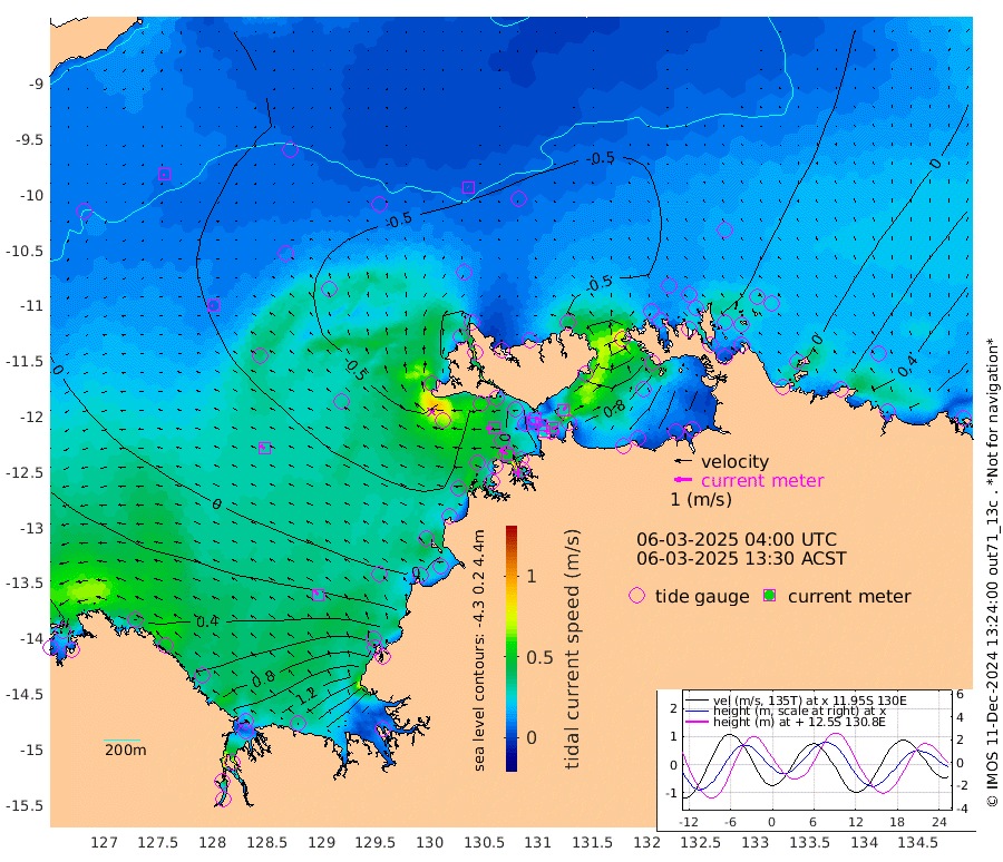 26cm/s 80T +4cm/s rms + 6cm/s 51T. Darwin_C1 52m 36cm/s 88T +4cm/s rms + 7cm/s -161T. Darwin_CW1 22m 10cm/s -113T +4cm/s rms + 8cm/s 61T. Darwin_CW2 34m 31cm/s 37T +3cm/s rms + 9cm/s 98T. Darwin_CW3 22m 10cm/s 106T +5cm/s rms + 7cm/s 88T. Darwin_C3 56m 16cm/s 71T +2cm/s rms + 9cm/s -126T. Darwin_CTbW 22m 4cm/s -5T +9cm/s rms + 2cm/s -110T. NWSLYN 196m 44cm/s -85T +1cm/s rms + 1cm/s -47T. DARBGF 30m 7cm/s -112T +7cm/s rms + 2cm/s -137T. ITFTIS 464m 7cm/s -68T +9cm/s rms + 1cm/s 74T. ITFMHB 146m 31cm/s -34T +4cm/s rms + 1cm/s -134T. ITFJBG 61m 30cm/s -54T +6cm/s rms + 4cm/s 121T. ITFFTB 108m 51cm/s -55T +4cm/s rms + 3cm/s 80T. NRSDAR 19m 109cm Carronade Island 118cm Guy Point 112cm Napier Broome Bay 93cm Lesueur Island 97cm Reveley Island 43cm Rocky Island 147cm Cape Domett 139cm Lacrosse Island 190cm Adolphus Island 246cm Pender Point 286cm Wyndham -12cm The Boxers -40cm Unnamed Shoal -22cm Loxton Shoal 129cm Pelican Island -28cm Calder Shoal -29cm Evans Shoal 242cm Quoin Island 72cm Port Keats 62cm Jones Point 301cm Catfish Island 18cm Cape Scott Offshore -44cm Cape Ford 5cm Anson Bay -44cm Goodrich Bank -3cm Peron Island North -2cm Point Jenny -8cm Native Point -9cm Fish Reef -3cm Tapa Bay -36cm Point Fawcett (Offshore) 6cm Burge Point -30cm Munkunuwa -15cm Beagle A -3cm Parsons Bank 6cm Fenton Patches -35cm Lynedoch Bank 21cm Hancox Shoal Area 18cm Nightcliff 10cm Darwin -4cm Charles Point Patches 63cm Glyde Point 138cm Chambers Bay 152cm Point Stuart 83cm Cape Hotham 134cm Christine Reef 174cm West Alligator Head 206cm East Field Island 102cm Two Hills Bay -3cm Newby Shoal 95cm Camp Point -15cm Medina Inlet South -56cm South Barlow Point -48cm St. Asaph Bay -49cm Cape Van Dieman -55cm Snake Bay -34cm Cache Point -7cm Echo Shoal -22cm Point Jahleel (Off) 13cm Cape Don -26cm Port Essington -24cm Smith Point - West -23cm NW Peacock Island -27cm North Of Jones Shoal -9cm Peacock Island -12cm Point David -26cm D'urville Point -18cm Money Shoal -7cm Copeland Island -5cm Cape Cockburn -11cm One Tree Point 8cm Hogmany Shoal -6cm New Year Island - West -4cm Grant Island 10cm Aurari Bay 35cm Cuthbert Point 11cm North Goulburn Island 51cm Paxie Shoal 62cm Entrance Island 95cm Yabooma Island