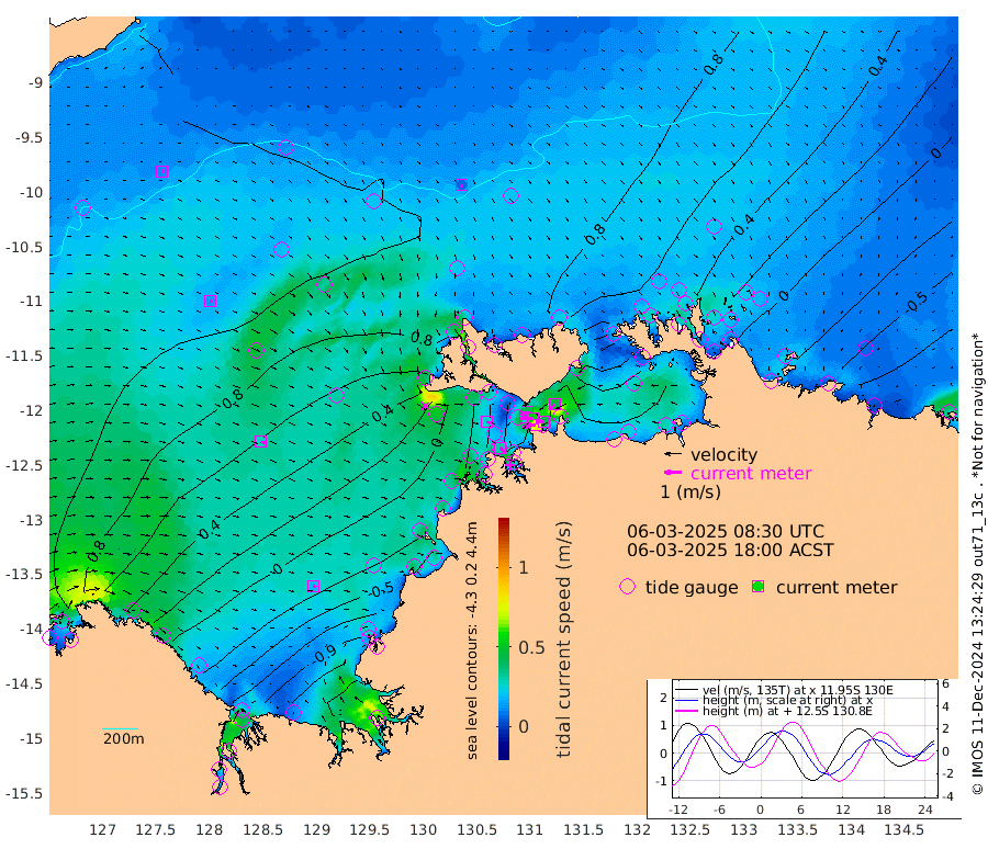 74cm/s -101T +4cm/s rms + 6cm/s 51T. Darwin_C1 52m 42cm/s -91T +4cm/s rms + 7cm/s -161T. Darwin_CW1 22m 28cm/s -108T +4cm/s rms + 8cm/s 61T. Darwin_CW2 34m 44cm/s -134T +3cm/s rms + 9cm/s 98T. Darwin_CW3 22m 55cm/s -91T +5cm/s rms + 7cm/s 88T. Darwin_C3 56m 42cm/s -116T +2cm/s rms + 9cm/s -126T. Darwin_CTbW 22m 8cm/s 129T +9cm/s rms + 2cm/s -110T. NWSLYN 196m 26cm/s 100T +1cm/s rms + 1cm/s -47T. DARBGF 30m 13cm/s 50T +7cm/s rms + 2cm/s -137T. ITFTIS 464m 13cm/s 81T +9cm/s rms + 1cm/s 74T. ITFMHB 146m 18cm/s 109T +4cm/s rms + 1cm/s -134T. ITFJBG 61m 28cm/s 101T +6cm/s rms + 4cm/s 121T. ITFFTB 108m 30cm/s 135T +4cm/s rms + 3cm/s 80T. NRSDAR 19m 71cm Carronade Island 71cm Guy Point 72cm Napier Broome Bay 41cm Lesueur Island -52cm Reveley Island -32cm Rocky Island -101cm Cape Domett -81cm Lacrosse Island -123cm Adolphus Island -135cm Pender Point -137cm Wyndham 86cm The Boxers 74cm Unnamed Shoal 112cm Loxton Shoal -112cm Pelican Island 99cm Calder Shoal 95cm Evans Shoal -181cm Quoin Island -66cm Port Keats -76cm Jones Point -191cm Catfish Island -14cm Cape Scott Offshore 57cm Cape Ford -18cm Anson Bay 93cm Goodrich Bank -5cm Peron Island North 4cm Point Jenny 6cm Native Point -3cm Fish Reef -11cm Tapa Bay 63cm Point Fawcett (Offshore) -20cm Burge Point -13cm Munkunuwa 32cm Beagle A -38cm Parsons Bank -11cm Fenton Patches 88cm Lynedoch Bank -41cm Hancox Shoal Area -32cm Nightcliff -38cm Darwin -6cm Charles Point Patches -53cm Glyde Point -89cm Chambers Bay -107cm Point Stuart -63cm Cape Hotham -79cm Christine Reef -125cm West Alligator Head -132cm East Field Island -69cm Two Hills Bay 70cm Newby Shoal -50cm Camp Point -8cm Medina Inlet South 70cm South Barlow Point 85cm St. Asaph Bay 93cm Cape Van Dieman 90cm Snake Bay 87cm Cache Point 116cm Echo Shoal 63cm Point Jahleel (Off) 15cm Cape Don 54cm Port Essington 53cm Smith Point - West 52cm NW Peacock Island 70cm North Of Jones Shoal 22cm Peacock Island 19cm Point David 47cm D'urville Point 55cm Money Shoal 13cm Copeland Island 20cm Cape Cockburn 26cm One Tree Point 11cm Hogmany Shoal 27cm New Year Island - West 18cm Grant Island -8cm Aurari Bay -33cm Cuthbert Point -4cm North Goulburn Island -44cm Paxie Shoal -70cm Entrance Island -106cm Yabooma Island