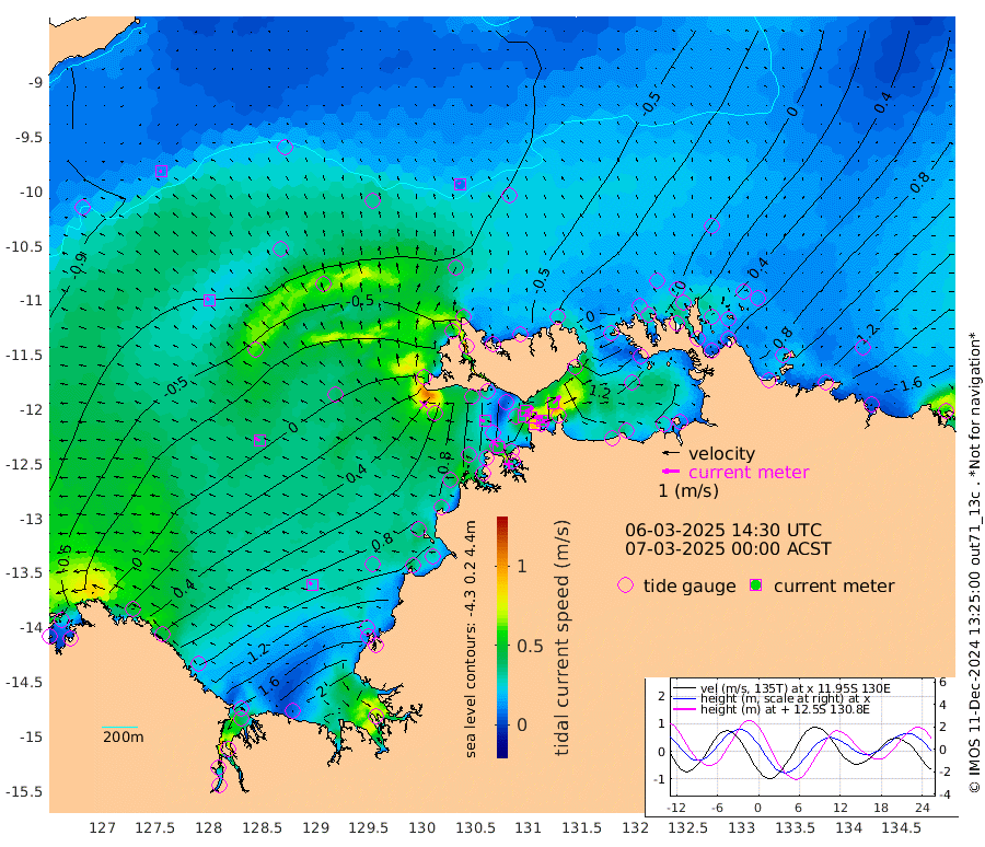 88cm/s 79T +4cm/s rms + 6cm/s 51T. Darwin_C1 52m 48cm/s 90T +4cm/s rms + 7cm/s -161T. Darwin_CW1 22m 36cm/s 70T +4cm/s rms + 8cm/s 61T. Darwin_CW2 34m 60cm/s 44T +3cm/s rms + 9cm/s 98T. Darwin_CW3 22m 65cm/s 91T +5cm/s rms + 7cm/s 88T. Darwin_C3 56m 48cm/s 64T +2cm/s rms + 9cm/s -126T. Darwin_CTbW 22m 10cm/s -28T +9cm/s rms + 2cm/s -110T. NWSLYN 196m 33cm/s -80T +1cm/s rms + 1cm/s -47T. DARBGF 30m 11cm/s -96T +7cm/s rms + 2cm/s -137T. ITFTIS 464m 18cm/s -42T +9cm/s rms + 1cm/s 74T. ITFMHB 146m 23cm/s -53T +4cm/s rms + 1cm/s -134T. ITFJBG 61m 36cm/s -62T +6cm/s rms + 4cm/s 121T. ITFFTB 108m 44cm/s -50T +4cm/s rms + 3cm/s 80T. NRSDAR 19m -41cm Carronade Island -47cm Guy Point -39cm Napier Broome Bay 16cm Lesueur Island 91cm Reveley Island 50cm Rocky Island 160cm Cape Domett 135cm Lacrosse Island 197cm Adolphus Island 196cm Pender Point 208cm Wyndham -50cm The Boxers -23cm Unnamed Shoal -93cm Loxton Shoal 169cm Pelican Island -74cm Calder Shoal -79cm Evans Shoal 252cm Quoin Island 121cm Port Keats 134cm Jones Point 267cm Catfish Island 48cm Cape Scott Offshore -8cm Cape Ford 56cm Anson Bay -66cm Goodrich Bank 47cm Peron Island North 32cm Point Jenny 29cm Native Point 45cm Fish Reef 50cm Tapa Bay -37cm Point Fawcett (Offshore) 68cm Burge Point 35cm Munkunuwa 10cm Beagle A 84cm Parsons Bank 63cm Fenton Patches -60cm Lynedoch Bank 88cm Hancox Shoal Area 75cm Nightcliff 96cm Darwin 62cm Charles Point Patches 111cm Glyde Point 143cm Chambers Bay 166cm Point Stuart 118cm Cape Hotham 128cm Christine Reef 184cm West Alligator Head 197cm East Field Island 123cm Two Hills Bay -16cm Newby Shoal 106cm Camp Point 48cm Medina Inlet South -40cm South Barlow Point -63cm St. Asaph Bay -66cm Cape Van Dieman -57cm Snake Bay -55cm Cache Point -101cm Echo Shoal -30cm Point Jahleel (Off) 29cm Cape Don -11cm Port Essington -13cm Smith Point - West -6cm NW Peacock Island -35cm North Of Jones Shoal -8cm Peacock Island 37cm Point David -1cm D'urville Point -5cm Money Shoal 43cm Copeland Island 55cm Cape Cockburn 29cm One Tree Point 59cm Hogmany Shoal 35cm New Year Island - West 44cm Grant Island 75cm Aurari Bay 108cm Cuthbert Point 70cm North Goulburn Island 114cm Paxie Shoal 148cm Entrance Island 187cm Yabooma Island