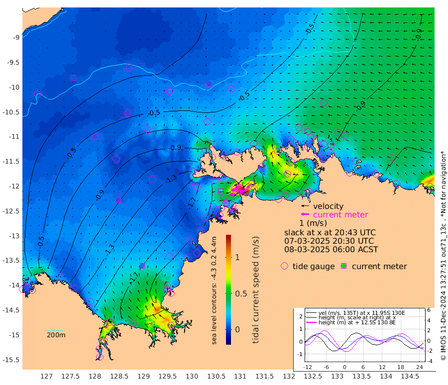 182cm/s -101T +4cm/s rms + 6cm/s 51T. Darwin_C1 52m 115cm/s -90T +4cm/s rms + 7cm/s -161T. Darwin_CW1 22m 77cm/s -105T +4cm/s rms + 8cm/s 61T. Darwin_CW2 34m 81cm/s -133T +3cm/s rms + 9cm/s 98T. Darwin_CW3 22m 123cm/s -90T +5cm/s rms + 7cm/s 88T. Darwin_C3 56m 110cm/s -115T +2cm/s rms + 9cm/s -126T. Darwin_CTbW 22m 5cm/s -87T +9cm/s rms + 2cm/s -110T. NWSLYN 196m 27cm/s -100T +1cm/s rms + 1cm/s -47T. DARBGF 30m 4cm/s 134T +7cm/s rms + 2cm/s -137T. ITFTIS 464m 4cm/s 32T +9cm/s rms + 1cm/s 74T. ITFMHB 146m 8cm/s 27T +4cm/s rms + 1cm/s -134T. ITFJBG 61m 4cm/s 46T +6cm/s rms + 4cm/s 121T. ITFFTB 108m 17cm/s -80T +4cm/s rms + 3cm/s 80T. NRSDAR 19m -38cm Carronade Island -40cm Guy Point -46cm Napier Broome Bay -102cm Lesueur Island -148cm Reveley Island -84cm Rocky Island -202cm Cape Domett -187cm Lacrosse Island -200cm Adolphus Island -158cm Pender Point -153cm Wyndham -76cm The Boxers -81cm Unnamed Shoal -29cm Loxton Shoal -210cm Pelican Island -63cm Calder Shoal -39cm Evans Shoal -231cm Quoin Island -206cm Port Keats -195cm Jones Point -246cm Catfish Island -172cm Cape Scott Offshore -173cm Cape Ford -184cm Anson Bay -46cm Goodrich Bank -178cm Peron Island North -168cm Point Jenny -164cm Native Point -177cm Fish Reef -180cm Tapa Bay -118cm Point Fawcett (Offshore) -189cm Burge Point -162cm Munkunuwa -146cm Beagle A -188cm Parsons Bank -177cm Fenton Patches -38cm Lynedoch Bank -184cm Hancox Shoal Area -190cm Nightcliff -205cm Darwin -193cm Charles Point Patches -161cm Glyde Point -137cm Chambers Bay -137cm Point Stuart -146cm Cape Hotham -131cm Christine Reef -144cm West Alligator Head -130cm East Field Island -135cm Two Hills Bay -131cm Newby Shoal -119cm Camp Point -180cm Medina Inlet South -97cm South Barlow Point -77cm St. Asaph Bay -49cm Cape Van Dieman -56cm Snake Bay -60cm Cache Point -10cm Echo Shoal -68cm Point Jahleel (Off) -105cm Cape Don -77cm Port Essington -78cm Smith Point - West -75cm NW Peacock Island -67cm North Of Jones Shoal -25cm Peacock Island -84cm Point David -80cm D'urville Point -68cm Money Shoal -84cm Copeland Island -119cm Cape Cockburn -88cm One Tree Point -111cm Hogmany Shoal -87cm New Year Island - West -93cm Grant Island -95cm Aurari Bay -114cm Cuthbert Point -104cm North Goulburn Island -114cm Paxie Shoal -116cm Entrance Island -120cm Yabooma Island