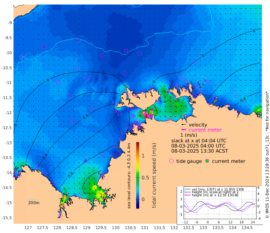 138cm/s 78T +4cm/s rms + 6cm/s 51T. Darwin_C1 52m 91cm/s 91T +4cm/s rms + 7cm/s -161T. Darwin_CW1 22m 54cm/s 72T +4cm/s rms + 8cm/s 61T. Darwin_CW2 34m 62cm/s 51T +3cm/s rms + 9cm/s 98T. Darwin_CW3 22m 78cm/s 90T +5cm/s rms + 7cm/s 88T. Darwin_C3 56m 82cm/s 65T +2cm/s rms + 9cm/s -126T. Darwin_CTbW 22m 0cm/s 58T +9cm/s rms + 2cm/s -110T. NWSLYN 196m 14cm/s 76T +1cm/s rms + 1cm/s -47T. DARBGF 30m 5cm/s -153T +7cm/s rms + 2cm/s -137T. ITFTIS 464m 15cm/s -165T +9cm/s rms + 1cm/s 74T. ITFMHB 146m 8cm/s -167T +4cm/s rms + 1cm/s -134T. ITFJBG 61m 8cm/s -170T +6cm/s rms + 4cm/s 121T. ITFFTB 108m 7cm/s 77T +4cm/s rms + 3cm/s 80T. NRSDAR 19m 34cm Carronade Island 37cm Guy Point 38cm Napier Broome Bay 57cm Lesueur Island 99cm Reveley Island 68cm Rocky Island 132cm Cape Domett 127cm Lacrosse Island 125cm Adolphus Island 117cm Pender Point 117cm Wyndham 24cm The Boxers 17cm Unnamed Shoal -8cm Loxton Shoal 135cm Pelican Island 16cm Calder Shoal 0cm Evans Shoal 154cm Quoin Island 123cm Port Keats 116cm Jones Point 198cm Catfish Island 99cm Cape Scott Offshore 82cm Cape Ford 102cm Anson Bay -4cm Goodrich Bank 94cm Peron Island North 96cm Point Jenny 92cm Native Point 98cm Fish Reef 100cm Tapa Bay 54cm Point Fawcett (Offshore) 104cm Burge Point 92cm Munkunuwa 79cm Beagle A 98cm Parsons Bank 99cm Fenton Patches -10cm Lynedoch Bank 100cm Hancox Shoal Area 109cm Nightcliff 103cm Darwin 91cm Charles Point Patches 91cm Glyde Point 94cm Chambers Bay 98cm Point Stuart 87cm Cape Hotham 92cm Christine Reef 110cm West Alligator Head 105cm East Field Island 84cm Two Hills Bay 58cm Newby Shoal 67cm Camp Point 94cm Medina Inlet South 29cm South Barlow Point 23cm St. Asaph Bay -2cm Cape Van Dieman -4cm Snake Bay 6cm Cache Point -13cm Echo Shoal 15cm Point Jahleel (Off) 41cm Cape Don 10cm Port Essington 14cm Smith Point - West 8cm NW Peacock Island 5cm North Of Jones Shoal 2cm Peacock Island 8cm Point David 10cm D'urville Point -2cm Money Shoal 9cm Copeland Island 18cm Cape Cockburn 11cm One Tree Point 18cm Hogmany Shoal 9cm New Year Island - West 12cm Grant Island 17cm Aurari Bay 29cm Cuthbert Point 20cm North Goulburn Island 32cm Paxie Shoal 34cm Entrance Island 39cm Yabooma Island