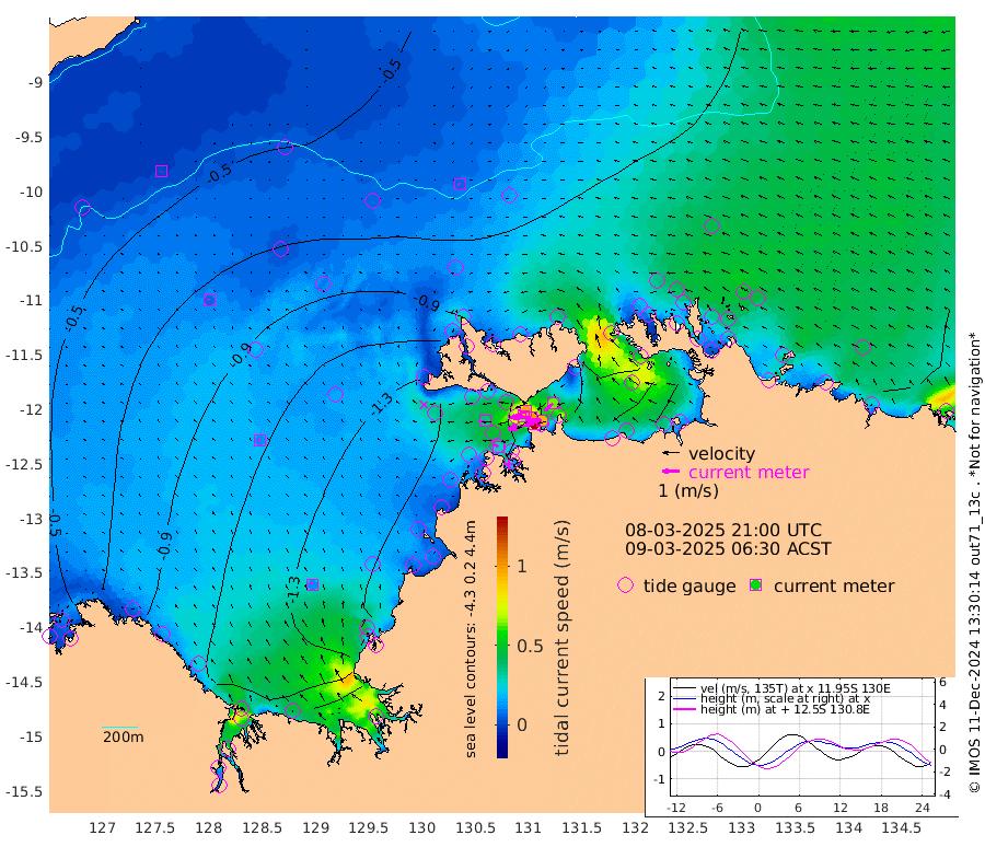 158cm/s -102T +4cm/s rms + 6cm/s 51T. Darwin_C1 52m 93cm/s -89T +4cm/s rms + 7cm/s -161T. Darwin_CW1 22m 64cm/s -105T +4cm/s rms + 8cm/s 61T. Darwin_CW2 34m 64cm/s -130T +3cm/s rms + 9cm/s 98T. Darwin_CW3 22m 98cm/s -90T +5cm/s rms + 7cm/s 88T. Darwin_C3 56m 97cm/s -115T +2cm/s rms + 9cm/s -126T. Darwin_CTbW 22m 7cm/s -59T +9cm/s rms + 2cm/s -110T. NWSLYN 196m 36cm/s -94T +1cm/s rms + 1cm/s -47T. DARBGF 30m 3cm/s -170T +7cm/s rms + 2cm/s -137T. ITFTIS 464m 7cm/s -12T +9cm/s rms + 1cm/s 74T. ITFMHB 146m 12cm/s -15T +4cm/s rms + 1cm/s -134T. ITFJBG 61m 11cm/s -43T +6cm/s rms + 4cm/s 121T. ITFFTB 108m 27cm/s -67T +4cm/s rms + 3cm/s 80T. NRSDAR 19m -50cm Carronade Island -51cm Guy Point -61cm Napier Broome Bay -90cm Lesueur Island -107cm Reveley Island -68cm Rocky Island -133cm Cape Domett -128cm Lacrosse Island -115cm Adolphus Island -82cm Pender Point -75cm Wyndham -88cm The Boxers -92cm Unnamed Shoal -55cm Loxton Shoal -138cm Pelican Island -81cm Calder Shoal -60cm Evans Shoal -131cm Quoin Island -147cm Port Keats -136cm Jones Point -169cm Catfish Island -144cm Cape Scott Offshore -142cm Cape Ford -153cm Anson Bay -63cm Goodrich Bank -151cm Peron Island North -143cm Point Jenny -141cm Native Point -148cm Fish Reef -149cm Tapa Bay -122cm Point Fawcett (Offshore) -148cm Burge Point -136cm Munkunuwa -128cm Beagle A -147cm Parsons Bank -139cm Fenton Patches -54cm Lynedoch Bank -141cm Hancox Shoal Area -149cm Nightcliff -157cm Darwin -155cm Charles Point Patches -116cm Glyde Point -85cm Chambers Bay -82cm Point Stuart -101cm Cape Hotham -82cm Christine Reef -83cm West Alligator Head -65cm East Field Island -93cm Two Hills Bay -125cm Newby Shoal -78cm Camp Point -150cm Medina Inlet South -102cm South Barlow Point -89cm St. Asaph Bay -66cm Cape Van Dieman -72cm Snake Bay -73cm Cache Point -39cm Echo Shoal -74cm Point Jahleel (Off) -92cm Cape Don -78cm Port Essington -80cm Smith Point - West -76cm NW Peacock Island -75cm North Of Jones Shoal -27cm Peacock Island -74cm Point David -79cm D'urville Point -68cm Money Shoal -71cm Copeland Island -102cm Cape Cockburn -80cm One Tree Point -93cm Hogmany Shoal -78cm New Year Island - West -80cm Grant Island -74cm Aurari Bay -83cm Cuthbert Point -83cm North Goulburn Island -81cm Paxie Shoal -71cm Entrance Island -62cm Yabooma Island