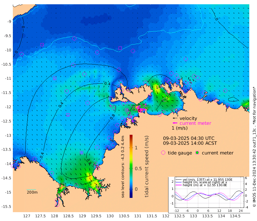 141cm/s 78T +4cm/s rms + 6cm/s 51T. Darwin_C1 52m 89cm/s 91T +4cm/s rms + 7cm/s -161T. Darwin_CW1 22m 56cm/s 73T +4cm/s rms + 8cm/s 61T. Darwin_CW2 34m 57cm/s 53T +3cm/s rms + 9cm/s 98T. Darwin_CW3 22m 72cm/s 89T +5cm/s rms + 7cm/s 88T. Darwin_C3 56m 85cm/s 65T +2cm/s rms + 9cm/s -126T. Darwin_CTbW 22m 2cm/s 159T +9cm/s rms + 2cm/s -110T. NWSLYN 196m 32cm/s 87T +1cm/s rms + 1cm/s -47T. DARBGF 30m 4cm/s 170T +7cm/s rms + 2cm/s -137T. ITFTIS 464m 18cm/s -179T +9cm/s rms + 1cm/s 74T. ITFMHB 146m 19cm/s 162T +4cm/s rms + 1cm/s -134T. ITFJBG 61m 19cm/s 149T +6cm/s rms + 4cm/s 121T. ITFFTB 108m 27cm/s 114T +4cm/s rms + 3cm/s 80T. NRSDAR 19m 20cm Carronade Island 19cm Guy Point 24cm Napier Broome Bay 42cm Lesueur Island 73cm Reveley Island 65cm Rocky Island 87cm Cape Domett 89cm Lacrosse Island 63cm Adolphus Island 38cm Pender Point 28cm Wyndham 39cm The Boxers 38cm Unnamed Shoal 7cm Loxton Shoal 94cm Pelican Island 35cm Calder Shoal 16cm Evans Shoal 72cm Quoin Island 101cm Port Keats 97cm Jones Point 122cm Catfish Island 100cm Cape Scott Offshore 99cm Cape Ford 105cm Anson Bay 15cm Goodrich Bank 99cm Peron Island North 105cm Point Jenny 103cm Native Point 108cm Fish Reef 106cm Tapa Bay 75cm Point Fawcett (Offshore) 105cm Burge Point 104cm Munkunuwa 94cm Beagle A 97cm Parsons Bank 103cm Fenton Patches 5cm Lynedoch Bank 93cm Hancox Shoal Area 107cm Nightcliff 99cm Darwin 93cm Charles Point Patches 73cm Glyde Point 53cm Chambers Bay 53cm Point Stuart 62cm Cape Hotham 53cm Christine Reef 58cm West Alligator Head 44cm East Field Island 54cm Two Hills Bay 72cm Newby Shoal 39cm Camp Point 102cm Medina Inlet South 52cm South Barlow Point 46cm St. Asaph Bay 19cm Cape Van Dieman 17cm Snake Bay 24cm Cache Point 1cm Echo Shoal 26cm Point Jahleel (Off) 39cm Cape Don 19cm Port Essington 24cm Smith Point - West 16cm NW Peacock Island 16cm North Of Jones Shoal 5cm Peacock Island 7cm Point David 18cm D'urville Point 2cm Money Shoal 6cm Copeland Island 15cm Cape Cockburn 11cm One Tree Point 10cm Hogmany Shoal 8cm New Year Island - West 9cm Grant Island 10cm Aurari Bay 11cm Cuthbert Point 11cm North Goulburn Island 8cm Paxie Shoal 3cm Entrance Island -7cm Yabooma Island