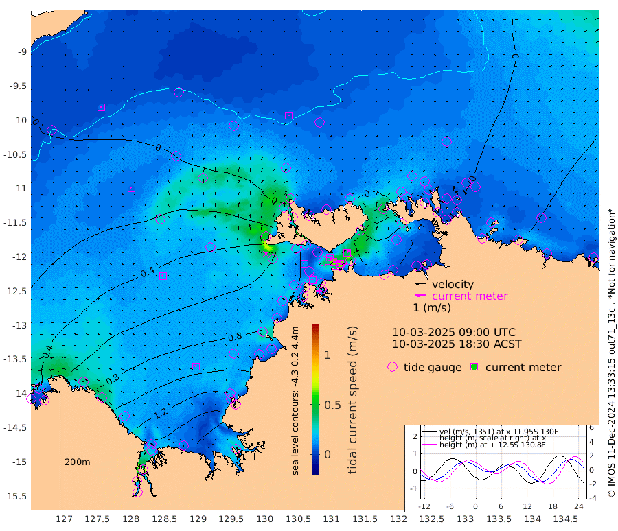 37cm/s 78T +4cm/s rms + 6cm/s 51T. Darwin_C1 52m 63cm/s 90T +4cm/s rms + 7cm/s -161T. Darwin_CW1 22m 35cm/s 72T +4cm/s rms + 8cm/s 61T. Darwin_CW2 34m 39cm/s 40T +3cm/s rms + 9cm/s 98T. Darwin_CW3 22m 64cm/s 90T +5cm/s rms + 7cm/s 88T. Darwin_C3 56m 16cm/s 68T +2cm/s rms + 9cm/s -126T. Darwin_CTbW 22m 5cm/s 27T +9cm/s rms + 2cm/s -110T. NWSLYN 196m 11cm/s -60T +1cm/s rms + 1cm/s -47T. DARBGF 30m 6cm/s -14T +7cm/s rms + 2cm/s -137T. ITFTIS 464m 8cm/s -12T +9cm/s rms + 1cm/s 74T. ITFMHB 146m 14cm/s -46T +4cm/s rms + 1cm/s -134T. ITFJBG 61m 17cm/s -43T +6cm/s rms + 4cm/s 121T. ITFFTB 108m 16cm/s -48T +4cm/s rms + 3cm/s 80T. NRSDAR 19m 57cm Carronade Island 63cm Guy Point 63cm Napier Broome Bay 96cm Lesueur Island 127cm Reveley Island 64cm Rocky Island 185cm Cape Domett 170cm Lacrosse Island 193cm Adolphus Island 209cm Pender Point 207cm Wyndham 36cm The Boxers 25cm Unnamed Shoal 10cm Loxton Shoal 171cm Pelican Island 27cm Calder Shoal 1cm Evans Shoal 219cm Quoin Island 158cm Port Keats 150cm Jones Point 145cm Catfish Island 97cm Cape Scott Offshore 143cm Cape Ford 99cm Anson Bay 3cm Goodrich Bank 84cm Peron Island North 90cm Point Jenny 90cm Native Point 92cm Fish Reef 103cm Tapa Bay 41cm Point Fawcett (Offshore) 122cm Burge Point 89cm Munkunuwa 81cm Beagle A 98cm Parsons Bank 113cm Fenton Patches 0cm Lynedoch Bank 105cm Hancox Shoal Area 113cm Nightcliff 122cm Darwin 111cm Charles Point Patches 105cm Glyde Point 108cm Chambers Bay 104cm Point Stuart 93cm Cape Hotham 100cm Christine Reef 115cm West Alligator Head 125cm East Field Island 80cm Two Hills Bay 69cm Newby Shoal 96cm Camp Point 98cm Medina Inlet South 27cm South Barlow Point 20cm St. Asaph Bay 1cm Cape Van Dieman 0cm Snake Bay 4cm Cache Point 5cm Echo Shoal 11cm Point Jahleel (Off) 33cm Cape Don 4cm Port Essington -2cm Smith Point - West -4cm NW Peacock Island -5cm North Of Jones Shoal -3cm Peacock Island -1cm Point David -6cm D'urville Point -1cm Money Shoal -2cm Copeland Island -1cm Cape Cockburn 0cm One Tree Point 5cm Hogmany Shoal 4cm New Year Island - West 3cm Grant Island 2cm Aurari Bay 11cm Cuthbert Point 8cm North Goulburn Island 30cm Paxie Shoal 30cm Entrance Island 35cm Yabooma Island