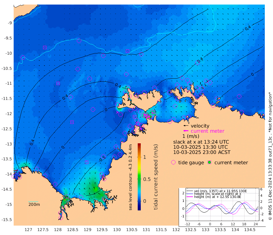 60cm/s -101T +4cm/s rms + 6cm/s 51T. Darwin_C1 52m 53cm/s -89T +4cm/s rms + 7cm/s -161T. Darwin_CW1 22m 31cm/s -109T +4cm/s rms + 8cm/s 61T. Darwin_CW2 34m 34cm/s -137T +3cm/s rms + 9cm/s 98T. Darwin_CW3 22m 35cm/s -92T +5cm/s rms + 7cm/s 88T. Darwin_C3 56m 31cm/s -115T +2cm/s rms + 9cm/s -126T. Darwin_CTbW 22m 8cm/s 137T +9cm/s rms + 2cm/s -110T. NWSLYN 196m 10cm/s -97T +1cm/s rms + 1cm/s -47T. DARBGF 30m 5cm/s 30T +7cm/s rms + 2cm/s -137T. ITFTIS 464m 9cm/s 29T +9cm/s rms + 1cm/s 74T. ITFMHB 146m 14cm/s -4T +4cm/s rms + 1cm/s -134T. ITFJBG 61m 8cm/s 14T +6cm/s rms + 4cm/s 121T. ITFFTB 108m 12cm/s -67T +4cm/s rms + 3cm/s 80T. NRSDAR 19m 59cm Carronade Island 65cm Guy Point 68cm Napier Broome Bay 19cm Lesueur Island -39cm Reveley Island -29cm Rocky Island -68cm Cape Domett -62cm Lacrosse Island -63cm Adolphus Island -31cm Pender Point -18cm Wyndham 34cm The Boxers 28cm Unnamed Shoal 69cm Loxton Shoal -82cm Pelican Island 41cm Calder Shoal 54cm Evans Shoal -69cm Quoin Island -83cm Port Keats -90cm Jones Point -57cm Catfish Island -46cm Cape Scott Offshore -84cm Cape Ford -55cm Anson Bay 45cm Goodrich Bank -46cm Peron Island North -57cm Point Jenny -55cm Native Point -66cm Fish Reef -64cm Tapa Bay -2cm Point Fawcett (Offshore) -77cm Burge Point -65cm Munkunuwa -52cm Beagle A -67cm Parsons Bank -81cm Fenton Patches 52cm Lynedoch Bank -65cm Hancox Shoal Area -73cm Nightcliff -71cm Darwin -55cm Charles Point Patches -54cm Glyde Point -45cm Chambers Bay -47cm Point Stuart -45cm Cape Hotham -40cm Christine Reef -54cm West Alligator Head -53cm East Field Island -30cm Two Hills Bay -4cm Newby Shoal -30cm Camp Point -58cm Medina Inlet South 9cm South Barlow Point 20cm St. Asaph Bay 42cm Cape Van Dieman 47cm Snake Bay 40cm Cache Point 71cm Echo Shoal 30cm Point Jahleel (Off) 9cm Cape Don 33cm Port Essington 31cm Smith Point - West 36cm NW Peacock Island 47cm North Of Jones Shoal 16cm Peacock Island 32cm Point David 33cm D'urville Point 43cm Money Shoal 28cm Copeland Island 36cm Cape Cockburn 35cm One Tree Point 37cm Hogmany Shoal 33cm New Year Island - West 32cm Grant Island 16cm Aurari Bay 12cm Cuthbert Point 23cm North Goulburn Island 14cm Paxie Shoal -3cm Entrance Island -12cm Yabooma Island