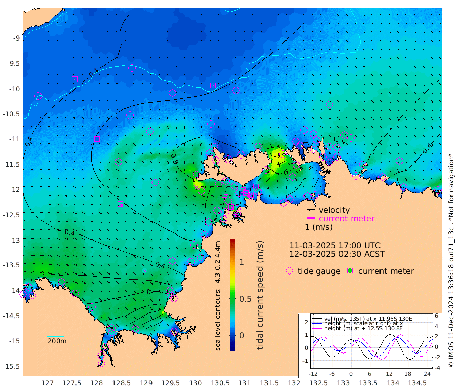 39cm/s 79T +4cm/s rms + 6cm/s 51T. Darwin_C1 52m 13cm/s 65T +4cm/s rms + 7cm/s -161T. Darwin_CW1 22m 2cm/s 127T +4cm/s rms + 8cm/s 61T. Darwin_CW2 34m 7cm/s 174T +3cm/s rms + 9cm/s 98T. Darwin_CW3 22m 12cm/s -88T +5cm/s rms + 7cm/s 88T. Darwin_C3 56m 33cm/s 62T +2cm/s rms + 9cm/s -126T. Darwin_CTbW 22m 10cm/s 149T +9cm/s rms + 2cm/s -110T. NWSLYN 196m 38cm/s 96T +1cm/s rms + 1cm/s -47T. DARBGF 30m 6cm/s 45T +7cm/s rms + 2cm/s -137T. ITFTIS 464m 8cm/s 115T +9cm/s rms + 1cm/s 74T. ITFMHB 146m 27cm/s 137T +4cm/s rms + 1cm/s -134T. ITFJBG 61m 29cm/s 123T +6cm/s rms + 4cm/s 121T. ITFFTB 108m 39cm/s 126T +4cm/s rms + 3cm/s 80T. NRSDAR 19m -9cm Carronade Island -15cm Guy Point -9cm Napier Broome Bay -13cm Lesueur Island -42cm Reveley Island -54cm Rocky Island -84cm Cape Domett -65cm Lacrosse Island -122cm Adolphus Island -157cm Pender Point -165cm Wyndham 42cm The Boxers 65cm Unnamed Shoal 32cm Loxton Shoal -66cm Pelican Island 45cm Calder Shoal 43cm Evans Shoal -146cm Quoin Island -32cm Port Keats -27cm Jones Point -56cm Catfish Island 27cm Cape Scott Offshore 17cm Cape Ford 38cm Anson Bay 51cm Goodrich Bank 38cm Peron Island North 40cm Point Jenny 38cm Native Point 38cm Fish Reef 33cm Tapa Bay 66cm Point Fawcett (Offshore) 17cm Burge Point 29cm Munkunuwa 40cm Beagle A 23cm Parsons Bank 17cm Fenton Patches 44cm Lynedoch Bank 15cm Hancox Shoal Area 20cm Nightcliff 14cm Darwin 29cm Charles Point Patches -8cm Glyde Point -40cm Chambers Bay -48cm Point Stuart -13cm Cape Hotham -41cm Christine Reef -62cm West Alligator Head -83cm East Field Island -17cm Two Hills Bay 40cm Newby Shoal -25cm Camp Point 32cm Medina Inlet South 59cm South Barlow Point 59cm St. Asaph Bay 57cm Cape Van Dieman 59cm Snake Bay 57cm Cache Point 29cm Echo Shoal 47cm Point Jahleel (Off) 37cm Cape Don 56cm Port Essington 57cm Smith Point - West 57cm NW Peacock Island 62cm North Of Jones Shoal 23cm Peacock Island 59cm Point David 61cm D'urville Point 58cm Money Shoal 57cm Copeland Island 75cm Cape Cockburn 60cm One Tree Point 65cm Hogmany Shoal 57cm New Year Island - West 56cm Grant Island 54cm Aurari Bay 46cm Cuthbert Point 55cm North Goulburn Island 41cm Paxie Shoal 26cm Entrance Island 18cm Yabooma Island