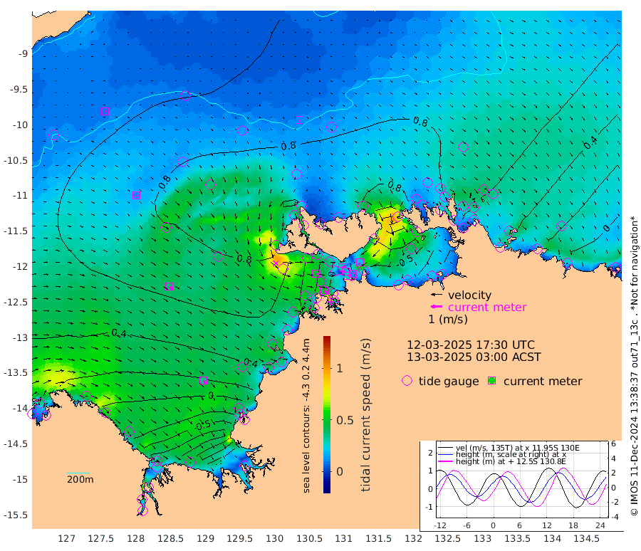 28cm/s 79T +4cm/s rms + 6cm/s 51T. Darwin_C1 52m 12cm/s 59T +4cm/s rms + 7cm/s -161T. Darwin_CW1 22m 2cm/s 122T +4cm/s rms + 8cm/s 61T. Darwin_CW2 34m 19cm/s -157T +3cm/s rms + 9cm/s 98T. Darwin_CW3 22m 17cm/s -87T +5cm/s rms + 7cm/s 88T. Darwin_C3 56m 30cm/s 61T +2cm/s rms + 9cm/s -126T. Darwin_CTbW 22m 13cm/s 149T +9cm/s rms + 2cm/s -110T. NWSLYN 196m 50cm/s 96T +1cm/s rms + 1cm/s -47T. DARBGF 30m 8cm/s 55T +7cm/s rms + 2cm/s -137T. ITFTIS 464m 12cm/s 125T +9cm/s rms + 1cm/s 74T. ITFMHB 146m 36cm/s 138T +4cm/s rms + 1cm/s -134T. ITFJBG 61m 39cm/s 123T +6cm/s rms + 4cm/s 121T. ITFFTB 108m 52cm/s 126T +4cm/s rms + 3cm/s 80T. NRSDAR 19m -13cm Carronade Island -17cm Guy Point -13cm Napier Broome Bay -22cm Lesueur Island -60cm Reveley Island -67cm Rocky Island -119cm Cape Domett -94cm Lacrosse Island -171cm Adolphus Island -210cm Pender Point -226cm Wyndham 53cm The Boxers 75cm Unnamed Shoal 48cm Loxton Shoal -99cm Pelican Island 61cm Calder Shoal 57cm Evans Shoal -209cm Quoin Island -52cm Port Keats -49cm Jones Point -132cm Catfish Island 24cm Cape Scott Offshore 26cm Cape Ford 36cm Anson Bay 65cm Goodrich Bank 34cm Peron Island North 42cm Point Jenny 42cm Native Point 36cm Fish Reef 33cm Tapa Bay 78cm Point Fawcett (Offshore) 11cm Burge Point 34cm Munkunuwa 44cm Beagle A 15cm Parsons Bank 13cm Fenton Patches 55cm Lynedoch Bank 6cm Hancox Shoal Area 15cm Nightcliff 2cm Darwin 24cm Charles Point Patches -30cm Glyde Point -75cm Chambers Bay -90cm Point Stuart -39cm Cape Hotham -73cm Christine Reef -109cm West Alligator Head -137cm East Field Island -47cm Two Hills Bay 44cm Newby Shoal -50cm Camp Point 31cm Medina Inlet South 73cm South Barlow Point 75cm St. Asaph Bay 72cm Cape Van Dieman 73cm Snake Bay 68cm Cache Point 45cm Echo Shoal 53cm Point Jahleel (Off) 30cm Cape Don 58cm Port Essington 60cm Smith Point - West 58cm NW Peacock Island 67cm North Of Jones Shoal 24cm Peacock Island 52cm Point David 61cm D'urville Point 57cm Money Shoal 49cm Copeland Island 61cm Cape Cockburn 53cm One Tree Point 52cm Hogmany Shoal 50cm New Year Island - West 46cm Grant Island 38cm Aurari Bay 21cm Cuthbert Point 40cm North Goulburn Island 15cm Paxie Shoal -7cm Entrance Island -25cm Yabooma Island